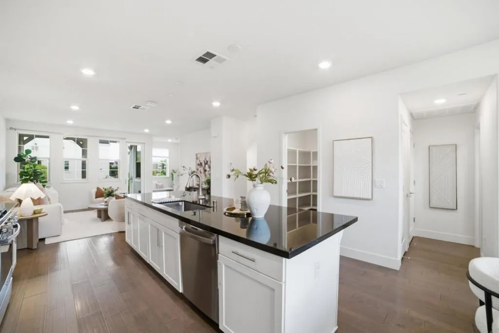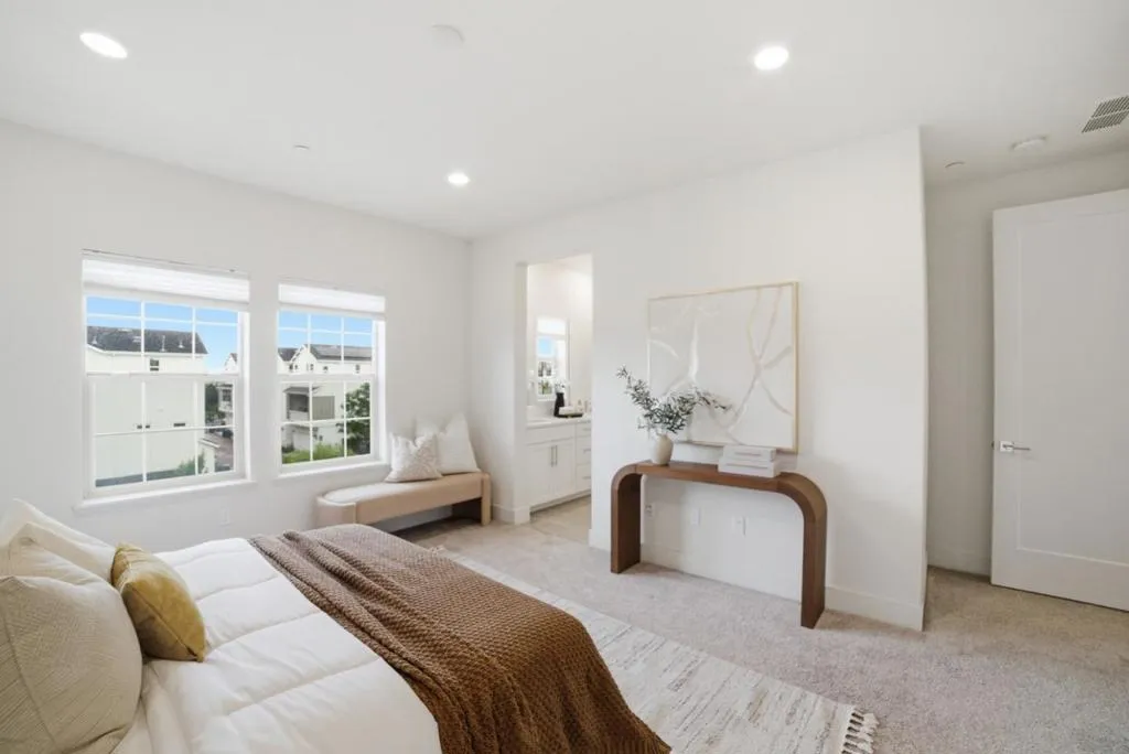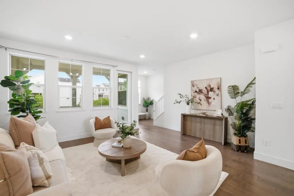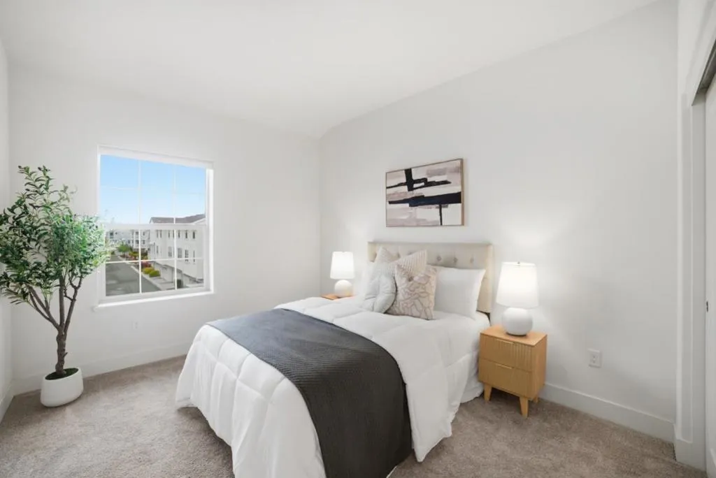 Gorgeous, bright & clean 4 bedroom, 3.5 bath three story condo with no upstairs or downstairs neighbors. A full bedroom suite and a two-car side-by-side garage on the ground floor. The middle level boasts a chef's kitchen with a giant island for both cooking prep and dining. There is plenty of shelf space and a walk-in pantry plus a private balcony for your enjoyment. Upstairs has the primary suite plus two other bedrooms, another full bath, and the washer & dryer. Quality built by Lennar in 2020, this home sits on one of the most desireable lots in the development. Instead of peering into your neighbor's windows, both the front and back windows face the street allowing you to keep the blinds open and enjoy the sunlight. Ample street parking in front for your guests and easy access to commute routes. Also close by to Don Edwards San Francisco National Bay Refuge.