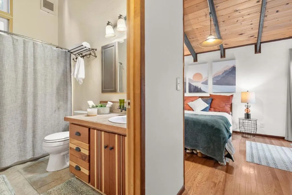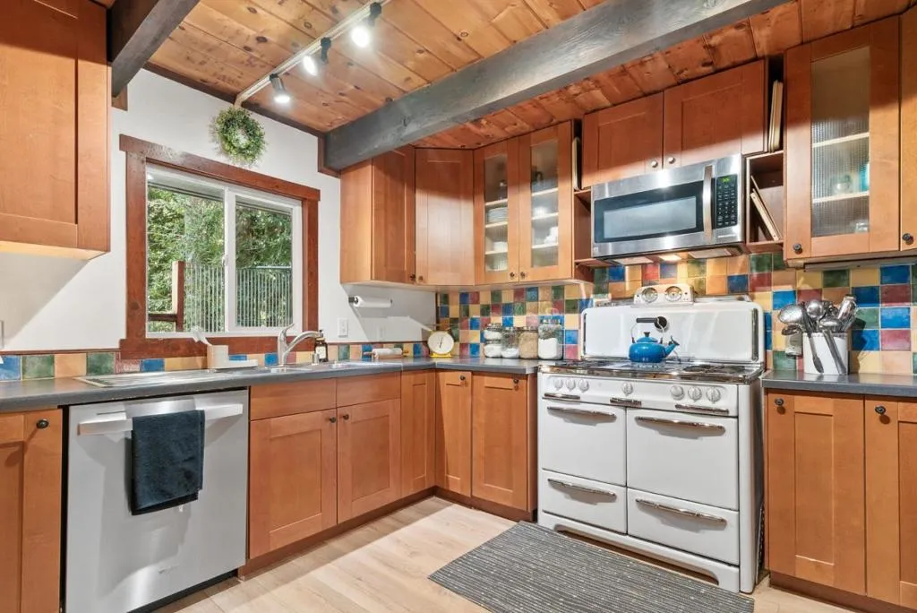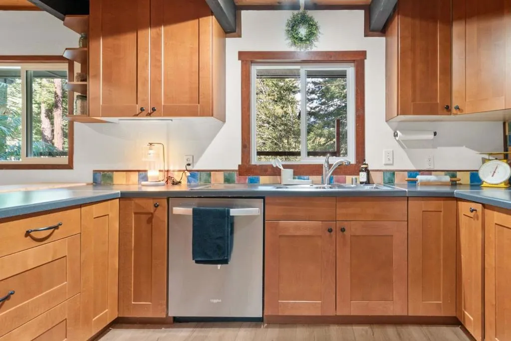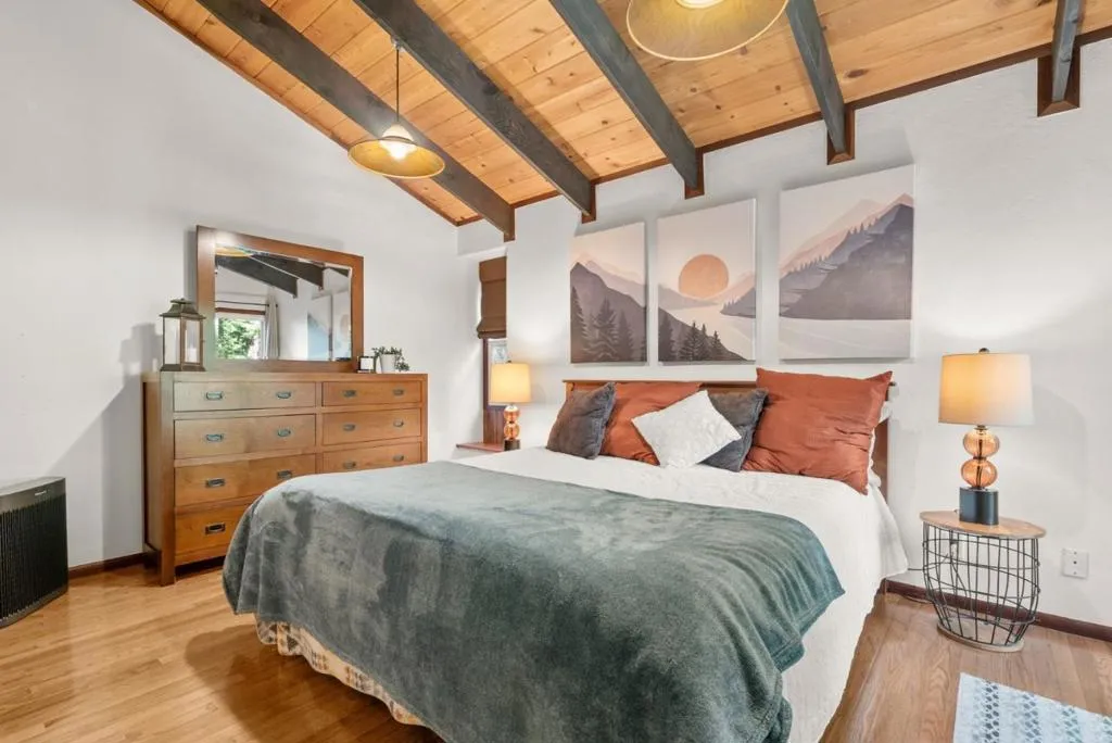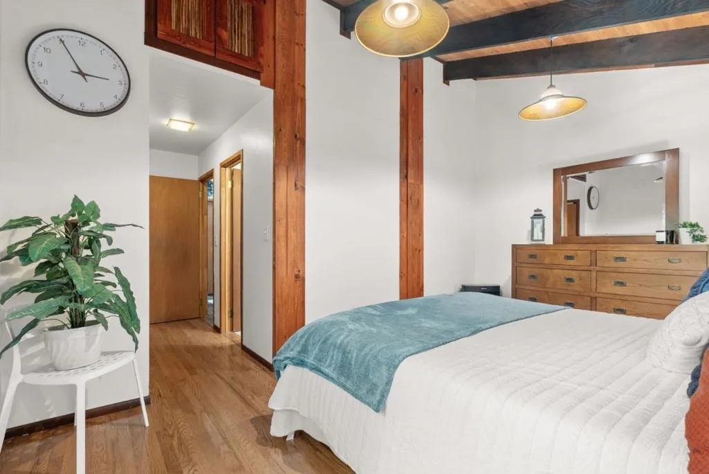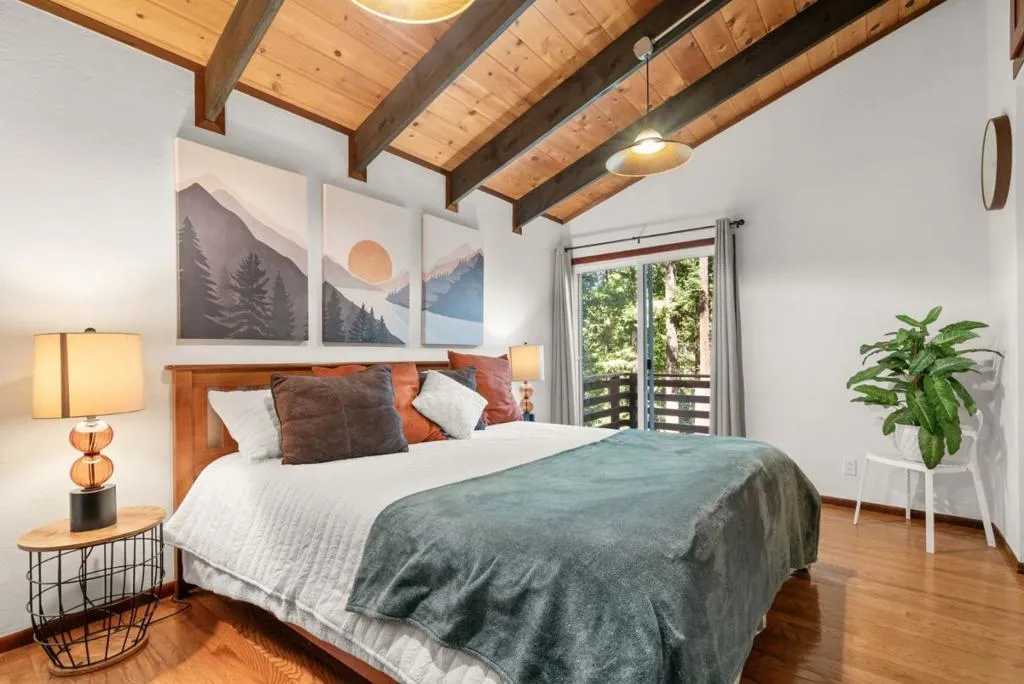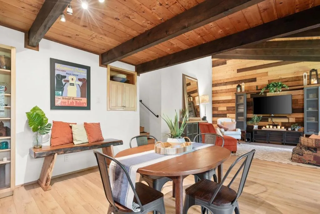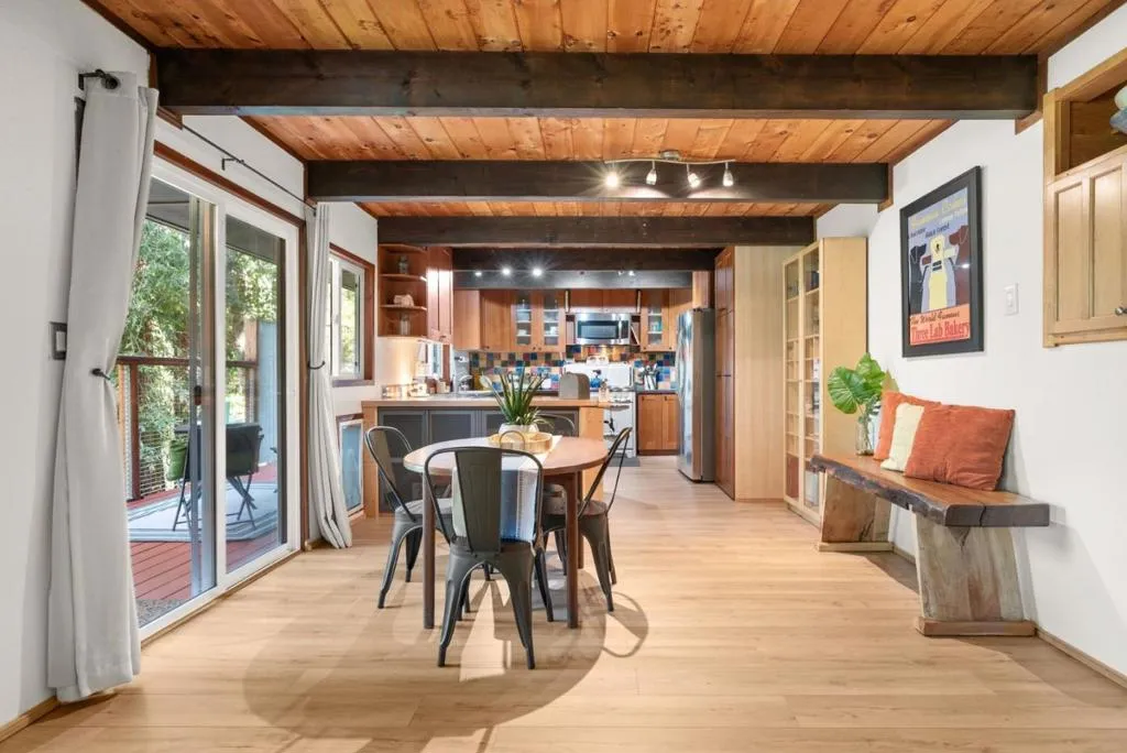 Nestled on a quiet cul-de-sac on a court above the Boulder Creek Golf Course, this charming and unique 3-bedroom, 2-bath home offers well-appointed living spaces designed for both privacy and views through a plethora of windows, open beam ceilings, a cozy fireplace and a stunning wood accent wall in the living room. The attached two-car garage keeps daily life convenient, while the open concept living area flows to a deck that extends outdoor space and overlooks a large lot framed by lush greenery and serene views. The versatile floor plan provides comfortable and flexible spaces with good separation that can function as a home office, guest room, or hobby area. There is a public sewer, no HOA dues and a generator, each simplifying maintenance and ongoing costs. Located close to the course, trails, and local amenities, this property blends character and nature into an inviting and easy-to-love home.