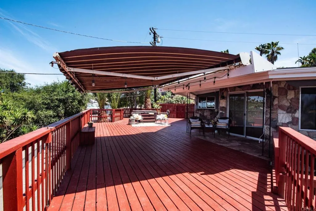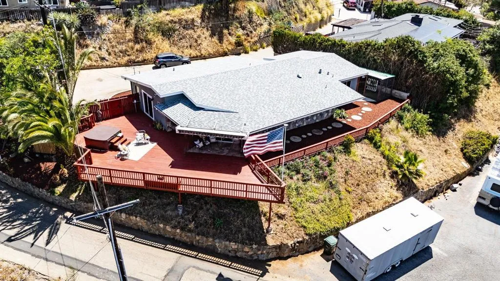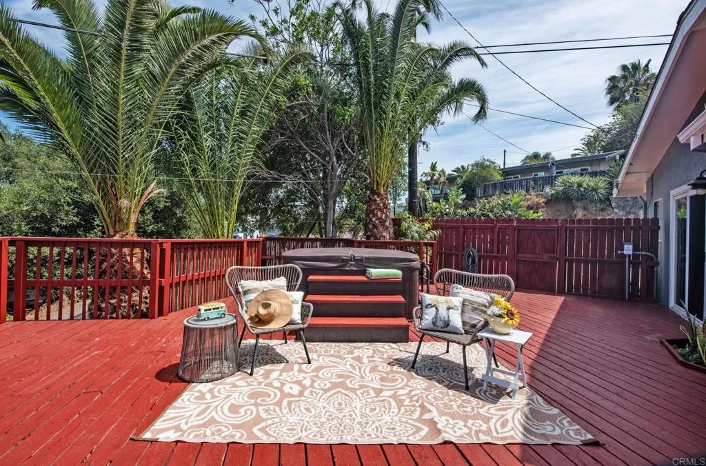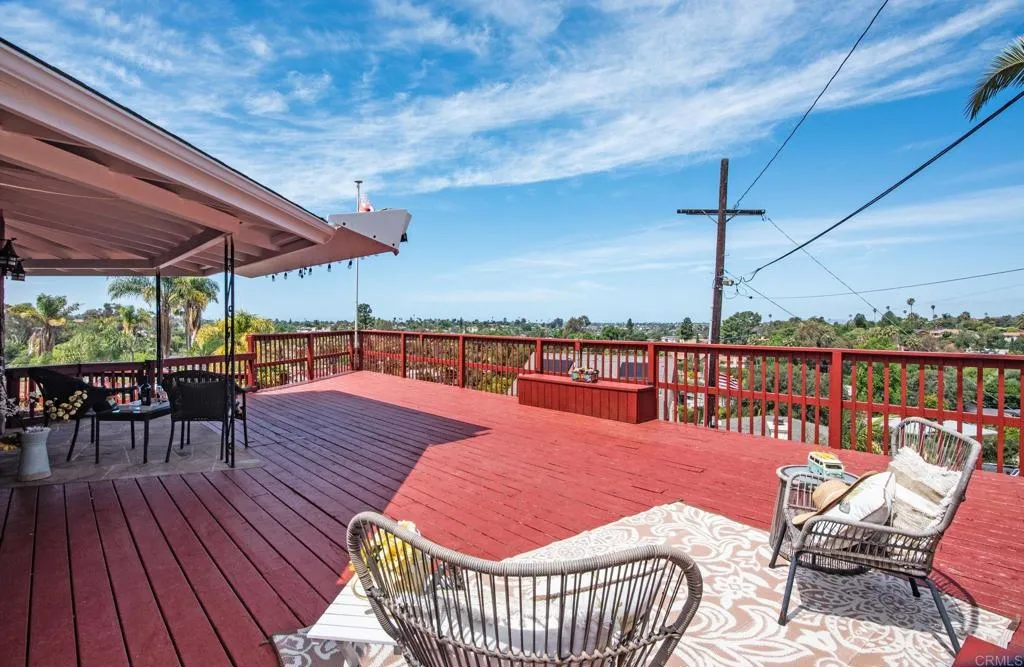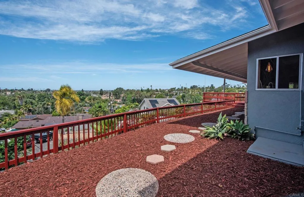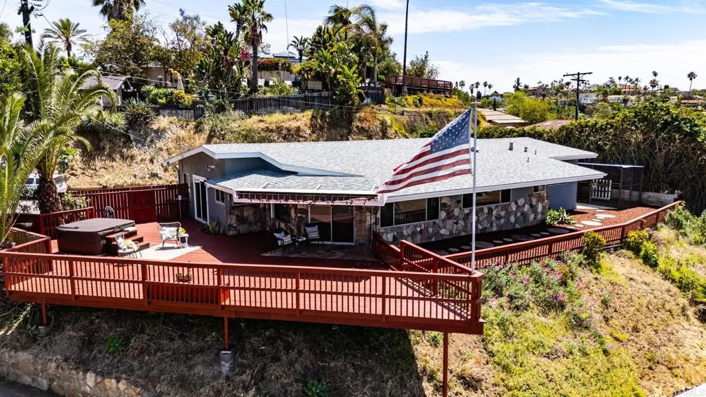 Beautiful Panoramic Views, Views, Views...and an amazing spacious redwood deck to enjoy the beautiful westerly sunsets, July 4th fireworks and plenty of room to entertain many guests! This darling home has just been tastefully updated with new kitchen cabinets, quartz counter tops and tile floors. Kitchen has wonderful natural light and sliding doors to front patio. New roof was installed in October 2025. The outside was just updated with fresh new paint on stucco and all eaves. New paint inside the living and bedrooms and beautifully refinished wood floors. The large living/family room has amazing view windows and sliders for patio. Master bedroom is a spacious 15X14, has the refinished wood flooring, sliders to rear patio and spa, and a newly remolded master bath. The front bedroom is a roomy 13X13 and has large sliding door to front private patio. Tastefully remodeled 2nd bath with new vanity and shower. The spacious entertainers deck has a wonderful spa, (just 2 years old), room for BBQ area, ample room for many patio table options, wonderful retractable cover for the great sun this deck gets and amazing breezes. On the side of the home is a well build chicken coup, with watering station, a feeding station and a hen laying station. Short walk to local elementary school. 1 car garage with parking in front for 3 move vehicles. Truly a sweet home!