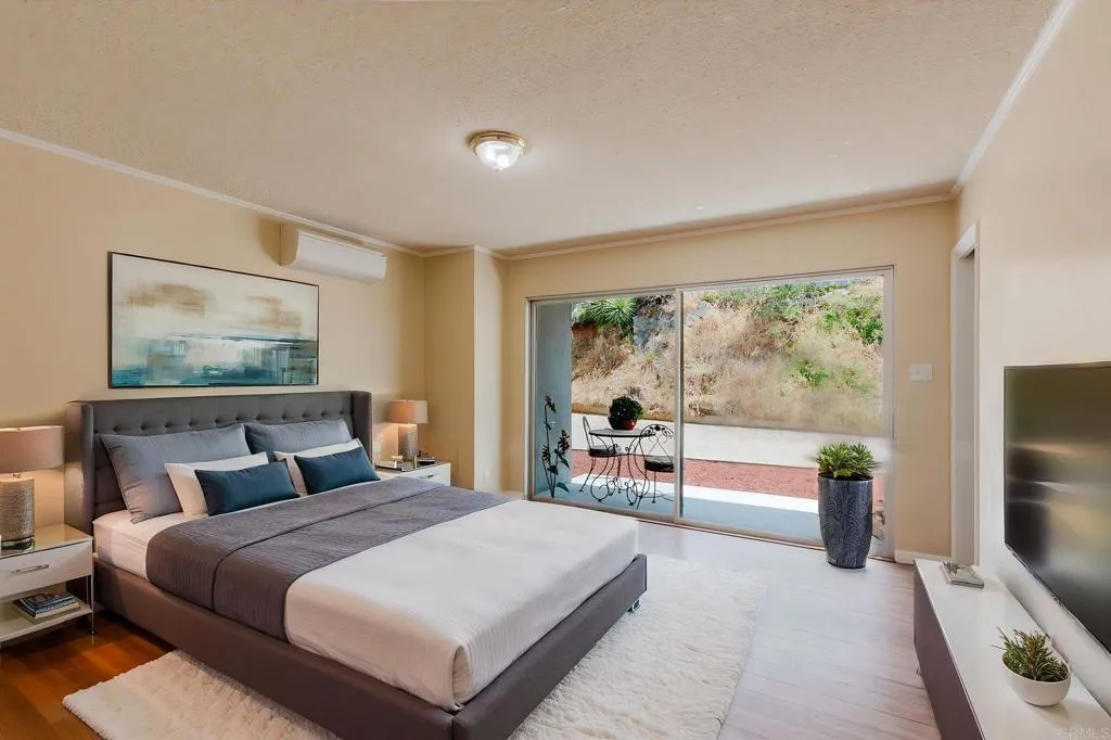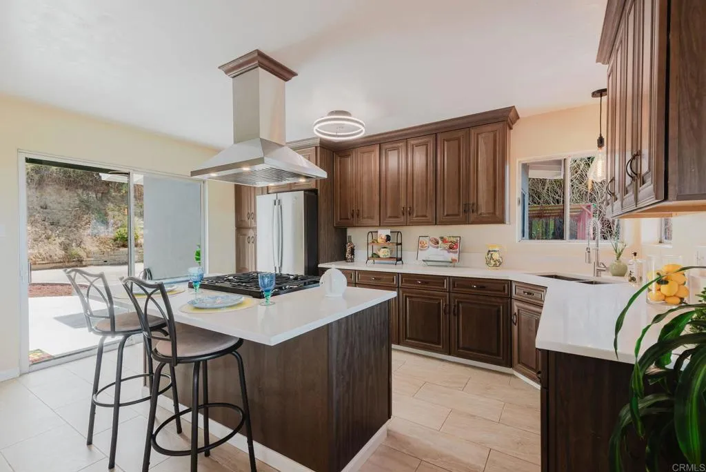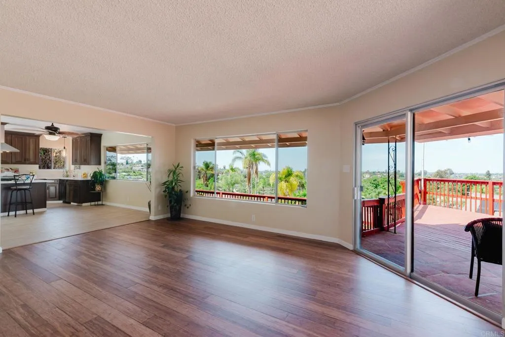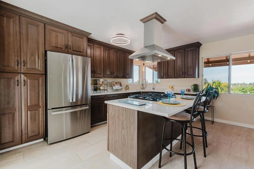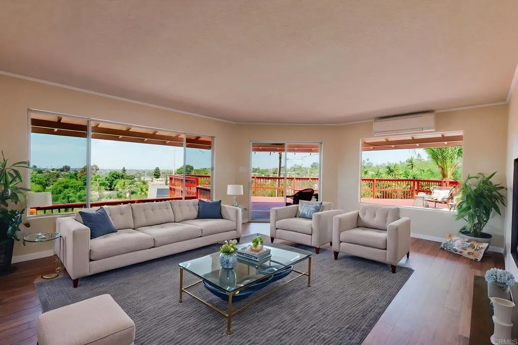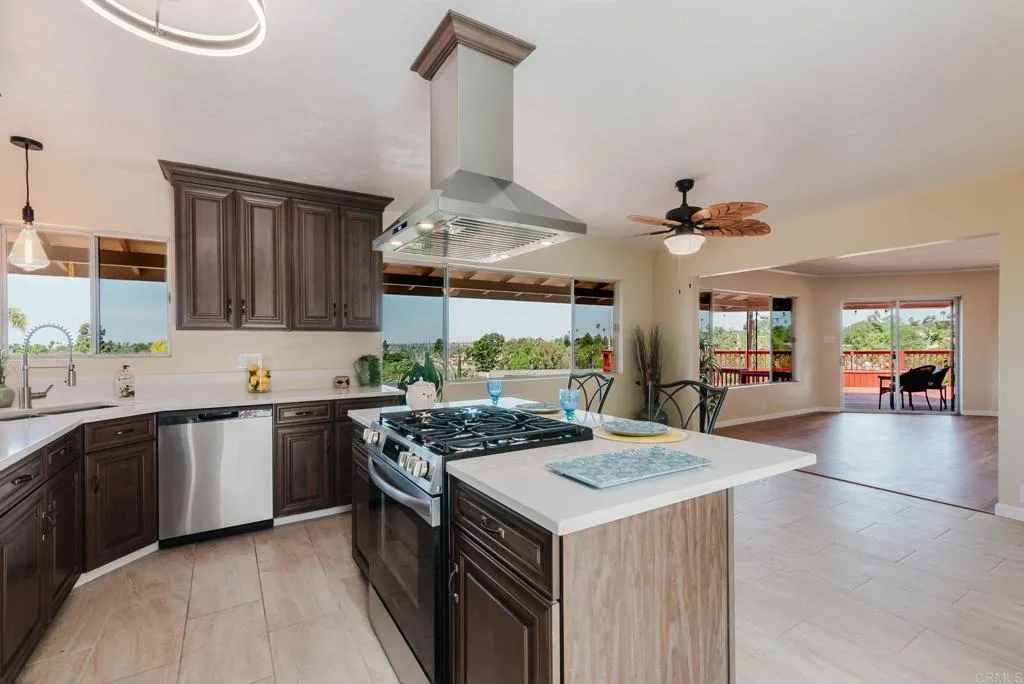 Beautiful Panoramic Views, Views, Views...and an amazing spacious redwood deck to enjoy the beautiful westerly sunsets, July 4th fireworks and plenty of room to entertain many guests! This darling home has just been tastefully updated with new kitchen cabinets, quartz counter tops and tile floors. Kitchen has wonderful natural light and sliding doors to front patio. New roof was installed in October 2025. The outside was just updated with fresh new paint on stucco and all eaves. New paint inside the living and bedrooms and beautifully refinished wood floors. The large living/family room has amazing view windows and sliders for patio. Master bedroom is a spacious 15X14, has the refinished wood flooring, sliders to rear patio and spa, and a newly remolded master bath. The front bedroom is a roomy 13X13 and has large sliding door to front private patio. Tastefully remodeled 2nd bath with new vanity and shower. The spacious entertainers deck has a wonderful spa, (just 2 years old), room for BBQ area, ample room for many patio table options, wonderful retractable cover for the great sun this deck gets and amazing breezes. On the side of the home is a well build chicken coup, with watering station, a feeding station and a hen laying station. Short walk to local elementary school. 1 car garage with parking in front for 3 move vehicles. Truly a sweet home!