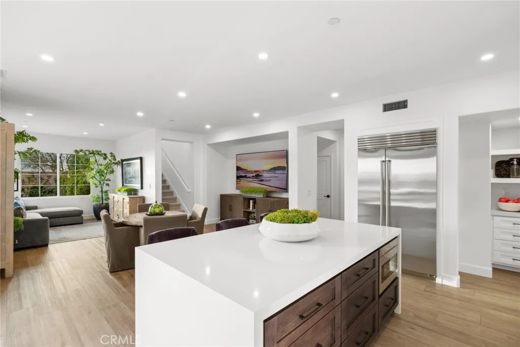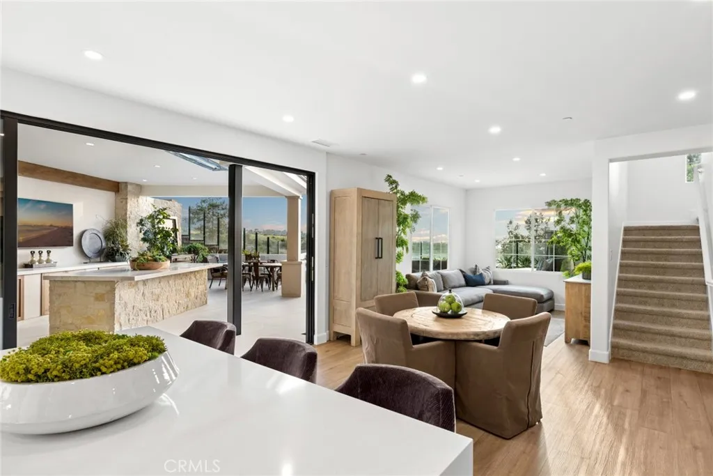 Located in the prestigious gated enclave of Arborel in Turtle Ridge, this exceptional residence offers one of the largest yards in the community, showcasing sweeping views of the ocean, city lights, and Palos Verdes. This elegant home feeds into the preferred Vista Verde Elementary School in the highly regarded Irvine Unified School District. Extensively upgraded within the past year with approximately $750,000 in enhancements, every detail of this home reflects quality and thoughtful design. The chef’s kitchen is appointed with premium Sub-Zero refrigeration, a Thermador dishwasher, self-closing custom cabinetry, a spacious walk-in pantry, and a dedicated Kangen water filtration faucet. The home also features whole-house filtered water, a tankless water heater, and has been fully re-piped for added efficiency and peace of mind. An additional 249 square feet has been seamlessly incorporated to create an expansive great room on the main level, along with a private sitting area off the primary suite—both designed to capture the home’s stunning, unobstructed views. Beautifully remodeled bathrooms and a custom-designed walk-in closet further elevate the home’s appeal. The outdoor living space is an entertainer’s dream, featuring exquisite stonework, an oversized BBQ, a bar with a dramatic waterfall feature, and a generous patio ideal for hosting while enjoying the spectacular surroundings. Additional highlights include an epoxied garage floor with custom built-in cabinetry. Residents enjoy access to resort-style amenities, including an elegant clubhouse, pool, spa, and private cabanas—offering a lifestyle of comfort and relaxation.