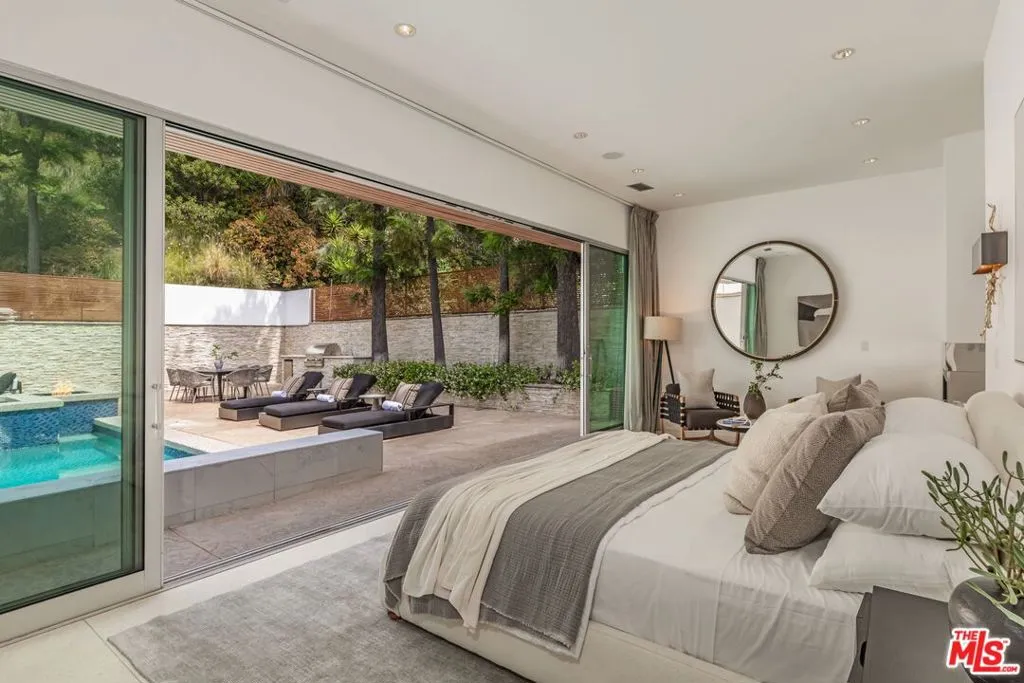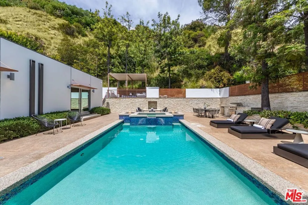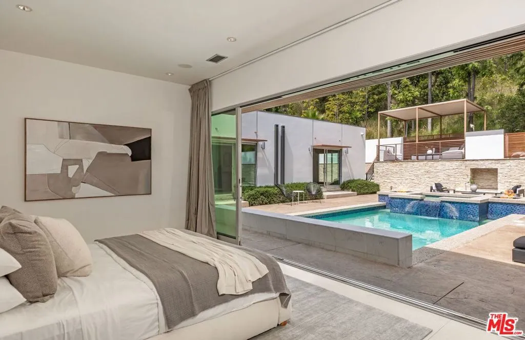The legendary Bird Streets; where all the titans of the industry call home. This secluded private organic modern has everything you want. Above the Sunset Strip, this single-story retreat captures the essence of effortless Los Angeles living. Privately set and designed for seamless indoor/outdoor flow, the home opens to expansive entertaining spaces anchored by a stunning resort style backyard. A generous living room with terrazzo floors connects to an oversized dining area with fireplace, creating a warm yet refined atmosphere for both intimate evenings and large-scale gatherings. The European kitchen is outfitted with Scavolini Italian cabinetry and Miele appliances, offering a clean, sophisticated workspace. Two primary suites and two additional guest suites provide comfort and flexibility. Each bedroom opens directly to the sun-drenched outdoor oasis, where a sparkling pool and spa are surrounded by multiple lounge and dining areas, fire pits, an outdoor fireplace, built in BBQ, and a private sun deck. Designed with an emphasis on privacy, scale, and livability. This Bird Streets home delivers both luxury and ease in one of Los Angeles' most sought after enclaves, just moments from the Sunset Strip and some of the city's best dining and shopping.