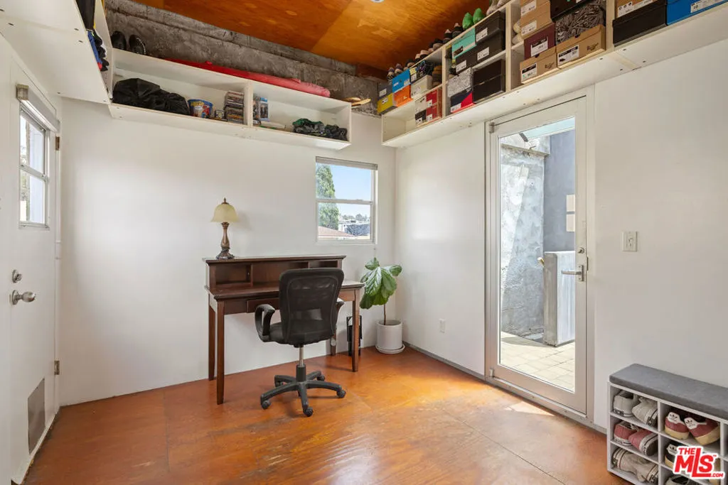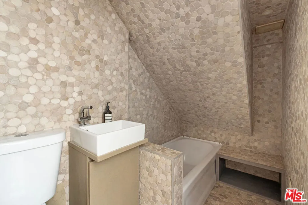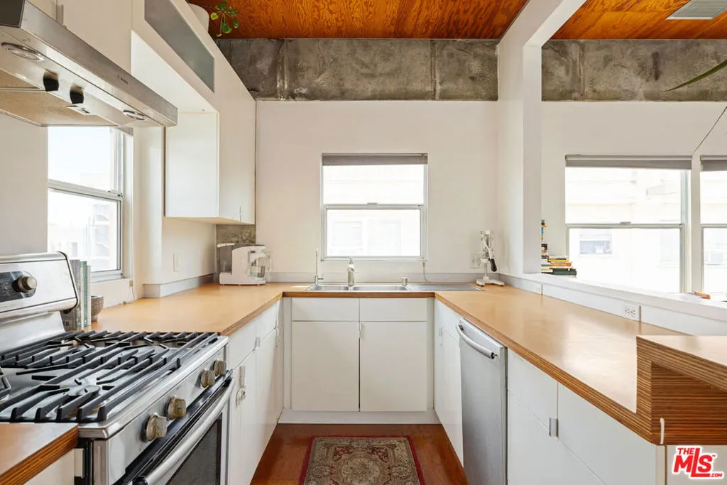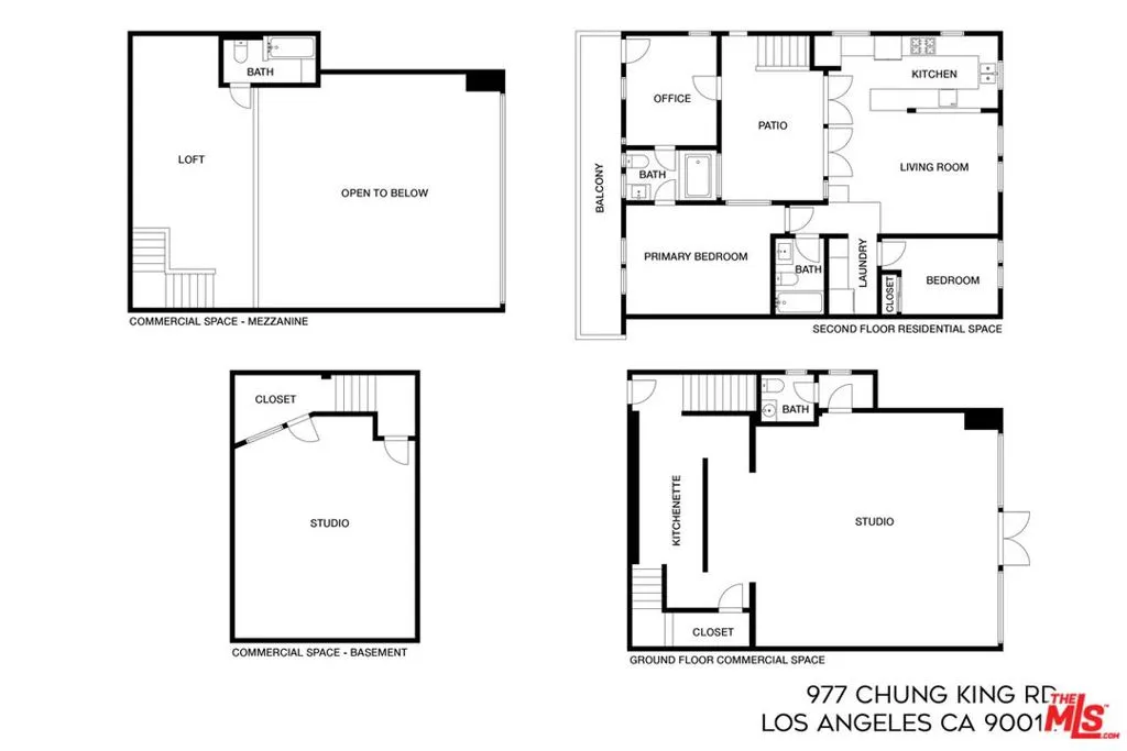A rare offering on Chinatown's beloved Chung King Road, this 1950 live-work property has been masterfully transformed by LOC Architecture into a singular creative retreat. The property is anchored by an expansive commercial space, with a stunning two-bedroom apartment on the upper level. The ground-floor storefront is a creative dream with soaring ceilings, abundant natural light, two bathrooms, a kitchenette, a storage mezzanine, and additional basement storage, ideal for a gallery, photo studio, or creative office. Upstairs, the residential space is a masterwork of ingenuity, rendered with concrete and wood, clerestory windows, and an open kitchen with bar seating. Enjoy two bright bedrooms, a bonus office, and two baths featuring a mosaic soaking tub and a striking pebble-tile bath. A rear balcony provides views of the DTLA skyline. The shared central courtyard is a unique setting for dining and gathering. You are moments from Pho 87, Yang Chow, and the galleries, restaurants, and creative community that make Chinatown one of LA's most exciting neighborhoods.