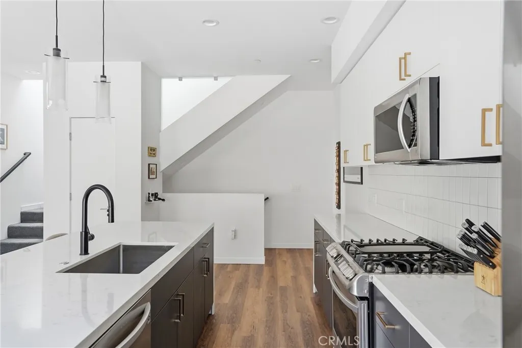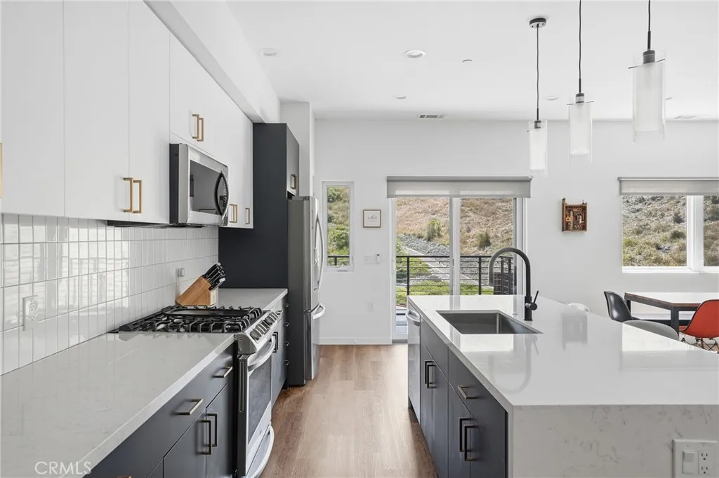 Welcome to this bright and modern 2 bedroom and 2.5 bathroom end-unit condo located at 265 Bridge St. Unit 105; built in 2021 and offering approximately 1,319 square feet of thoughtfully designed living space. This home features an open floor plan with high ceilings and an abundance of natural light throughout, creating an inviting and airy atmosphere, along with four balconies that provide inviting outdoor spaces. Upon entry, you are greeted with tile flooring that transitions into vinyl plank flooring throughout the main living spaces. The main level has the open-concept kitchen and center island, plus living and dining areas, highlighted by recessed lighting and slider doors to hillside view balconies, offering a seamless flow for everyday living and entertaining. A convenient half bathroom is also located on this level. The upper level features two spacious primary suites, each with high ceilings, walk-in closets, and their own ensuite bathrooms, offering comfort and privacy. Each bedroom has access to a balcony with beautiful hillside views. Carpeted flooring extends throughout the bedrooms and upper stairs, adding warmth and comfort. Additional highlights include an oversized two-car garage with a workspace alcove, a light and bright interior and convenient location near parks and hiking trails. This move-in ready home combines modern design with a well-designed layout and should not be missed! Information not verified.