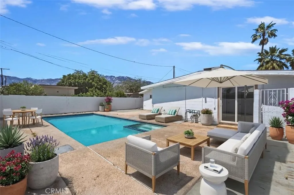 Welcome to this beautifully upgraded Cathedral City property featuring a 3-bedroom, 2-bath main home plus a private ADU—an exceptional opportunity for both homeowners and investors. The front house offers a spacious, open-concept layout with brand new white shaker cabinetry, sleek quartz countertops, and a kitchen that flows effortlessly into the family room—perfect for modern living and entertaining. Wood tile flooring runs throughout the home, complemented by fresh interior paint, new windows, and a newer HVAC system for year-round comfort. Both bathrooms have been tastefully renovated with modern vanities and stunning walk-in tiled showers, creating a clean, contemporary feel. Step outside to enjoy your own private desert retreat, complete with a sparkling pool and spa that has been recently replastered and upgraded with new tile and equipment—ideal for relaxing or hosting guests. The ADU adds incredible flexibility and value, featuring its own separate entrance, a private bathroom with a walk-in tiled shower, multiple mini splits, a full kitchen and dining area—perfect for guests, extended family, or generating rental income. Situated in a prime location within a seven minute drive to Palm Springs Airport and 10 minute drive to downtown Palm Springs, A new elementary school, and a beautiful new park called Esperanza that provides Basketball courts, playground, and a dog park. Close to Coachella and the world-famous Stagecoach Festival, this property is perfectly positioned for long-term rental potential. Additional highlights include ample parking with a circular driveway and covered carport, along with an extended south driveway with plenty of room for your RV or toys. Don’t miss this versatile property offering comfort, style, and excellent income potential in one of the desert’s most desirable areas.