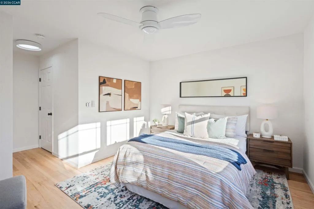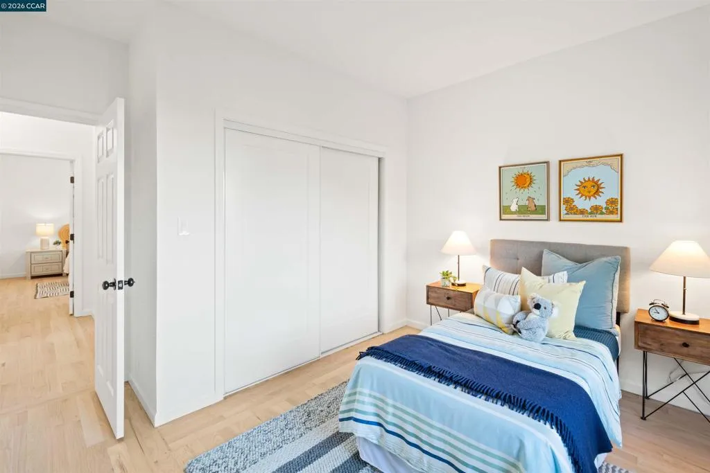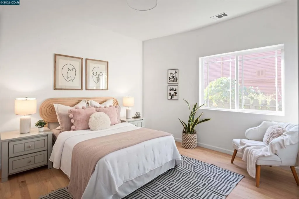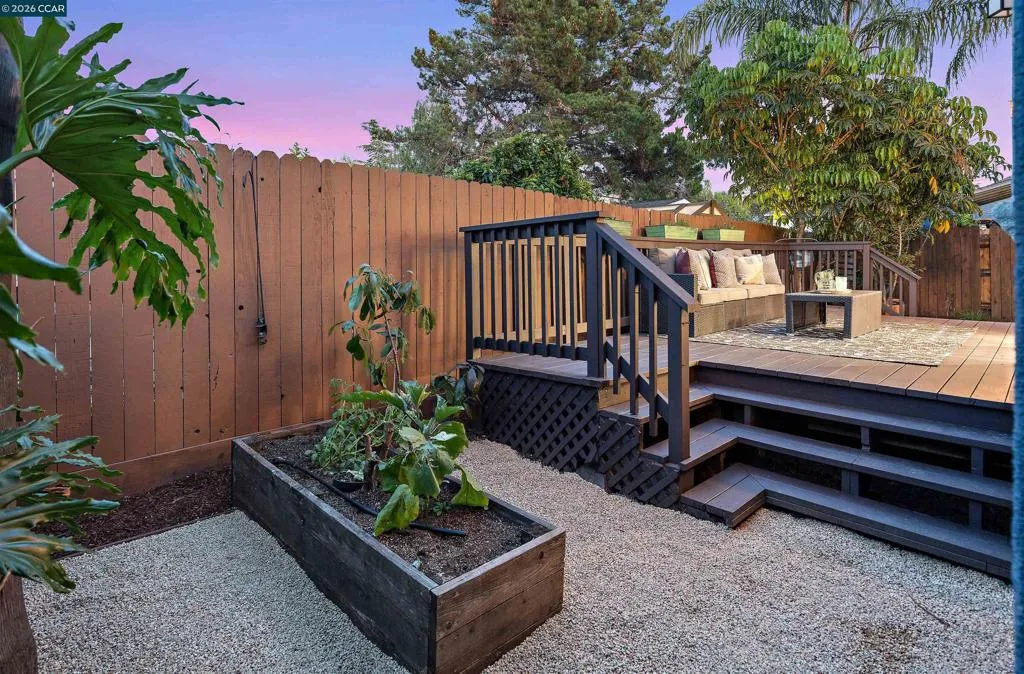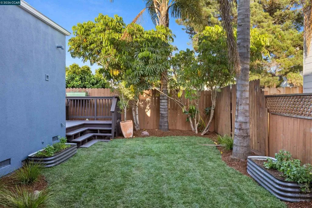 Welcome to 3131 Mabel Street in sought-after Southwest Berkeley, where charm, light, and thoughtful updates come together in a beautifully designed 3-bedroom, 2-bath home offering 1,272 square feet of inviting living space plus a large attached garage. Elevated ceilings and abundant natural light fill the open living and dining areas, creating a warm and connected flow ideal for everyday living and entertaining. The spacious eat-in kitchen features newly painted cabinetry with updated hardware, stainless steel appliances, granite countertops, designer tile backsplash, a garden window, and a built-in sideboard that adds both storage and ease for hosting. Two bright bedrooms and an updated hall bath are located on the main level, while the upstairs primary suite offers a private, light-filled retreat with its own updated bathroom, creating it's own suite. Just off the kitchen, a large deck extends to a refreshed backyard with garden beds, lush landscaping, and multiple fruit trees, perfect for relaxing, entertaining, or enjoying the Bay Area’s indoor-outdoor lifestyle. Beyond the home itself, the location offers a true sense of community. Enjoy nearby Mabel-Haskell pocket park just one block away, or head to San Pablo Park for tennis, basketball, open green space, and a large play structure. The Berkeley Greenway provides easy access to Berkeley Bowl West and Emeryville amenities. Local favorites include Creekwood, Paradise Park Café, Mujiri Sushi, and neighborhood staples along Sacramento Street. This vibrant neighborhood is known for its strong sense of connection, from block parties to festive Halloween celebrations, offering a welcoming environment with a diverse mix of families and community engagement. Additional highlights include a one-car garage with extra storage or flex space, fresh interior and exterior paint, updated lighting, and beautifully refinished hardwood floors. Ideally located near parks, shopping, dining, BART, and major commute routes. OPEN SAT & SUN