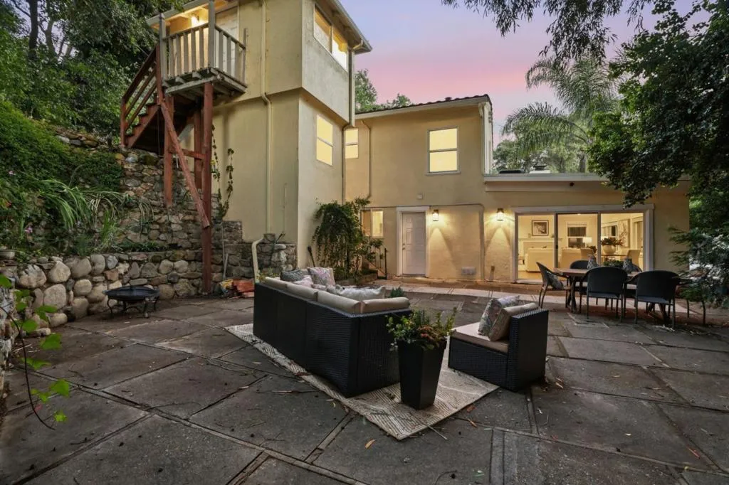 Welcome to 17250 Pine Ave - Tucked away at the end of a private drive shared with only one neighboring home, this fully renovated home (2015) sits on over 3/4 of an acre and offers exceptional privacy in a secluded, retreat-like setting. Located on one of Los Gatos' most sought-after streets and within walking distance to downtown and top-rated schools. Inside, beautiful hardwood flooring throughout, fresh interior paint and abundant natural light. The spacious living room features elegant details including a rounded archway, crown molding, custom stone fireplace and recessed lighting. The modern kitchen offers quartz countertops, stainless steel appliances, generous cabinetry and seamless access to the outdoor patio and expansive grounds. Flexible living spaces include a dining or family room option, along with a convenient main floor bedroom ideal for guests, extended family or a home office. A detached studio provides the perfect space for an art studio, fitness area or yoga retreat. Nestled within a lush wooded setting among towering trees, featuring a relaxing spa, multiple outdoor areas designed for entertaining, a circular driveway, 2-car garage with workshop and multiple storage areas along with previously approved ADU plans offering potential for future expansion.
