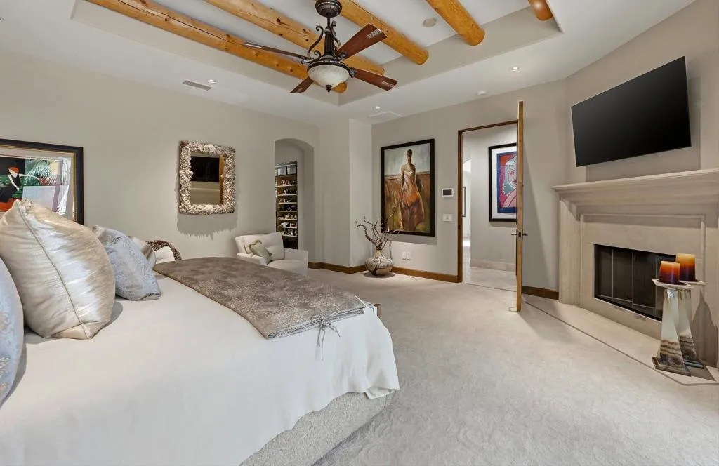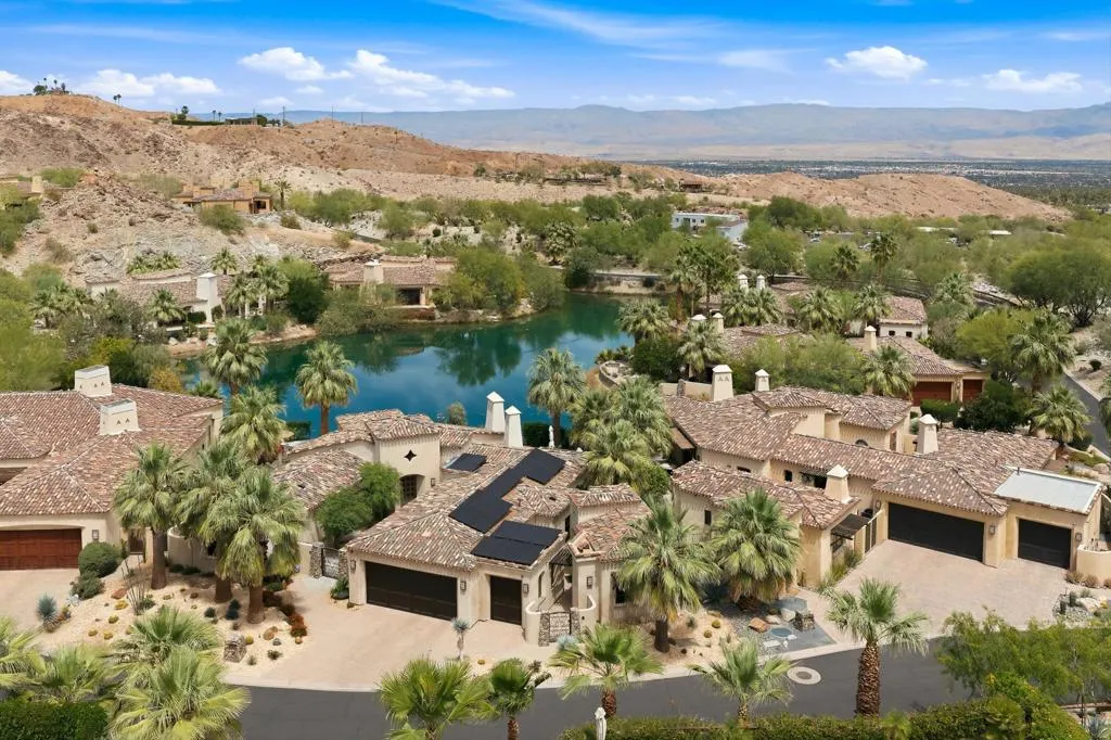 First time on the market - an exceptional opportunity in Stone Eagle. This beautifully remodeled lakefront residence sits on an expansive lot with breathtaking views and unforgettable sunsets. Whether gathered around the fire pit overlooking the water or relaxing in one of the home's private outdoor retreats, the setting is both serene and spectacular.This 3 bedroom, 3.5 bath home includes a detached casita and was built by renowned desert builder Peter Ministrelli, featuring soaring wood-beamed ceilings and a seamless great room design. The fully reimagined kitchen showcases premium Miele appliances , stunning quartz surfaces, and refined finishes throughout. Each bedroom offers its own private outdoor access, creating a true indoor-outdoor living experience centered around access to the pool and surrounding landscape. The large master suite complete with a fireplace and seating area opens out to the pool and views. Thoughtful details include a dedicated, enclosed area for pets, ideal for both convenience and comfort. Designed for both grand entertaining and intimate gatherings, the outdoor spaces feature a built-in barbecue, multiple seating areas, and a layout that balances openness with privacy, and a welcoming courtyard along with multiple water features throughout. Additional highlights include brand-new owned solar panels with a Tesla Powerwall, a two-car garage plus a golf cart garage, security system with multiple cameras, and an entire house water filtration system. This house has been meticulously maintained that reflects true pride of ownership.Adjacent to the community is the famed Stone Eagle Golf Club. Within the development there is access to multiple hiking trails.... true outdoor living. All this and just 1.3 miles to El Paseo known for it's shopping and restaurants.With countless upgrades and an unmatched lakefront location, this is a rare offering in Stone Eagle you won't want to miss.