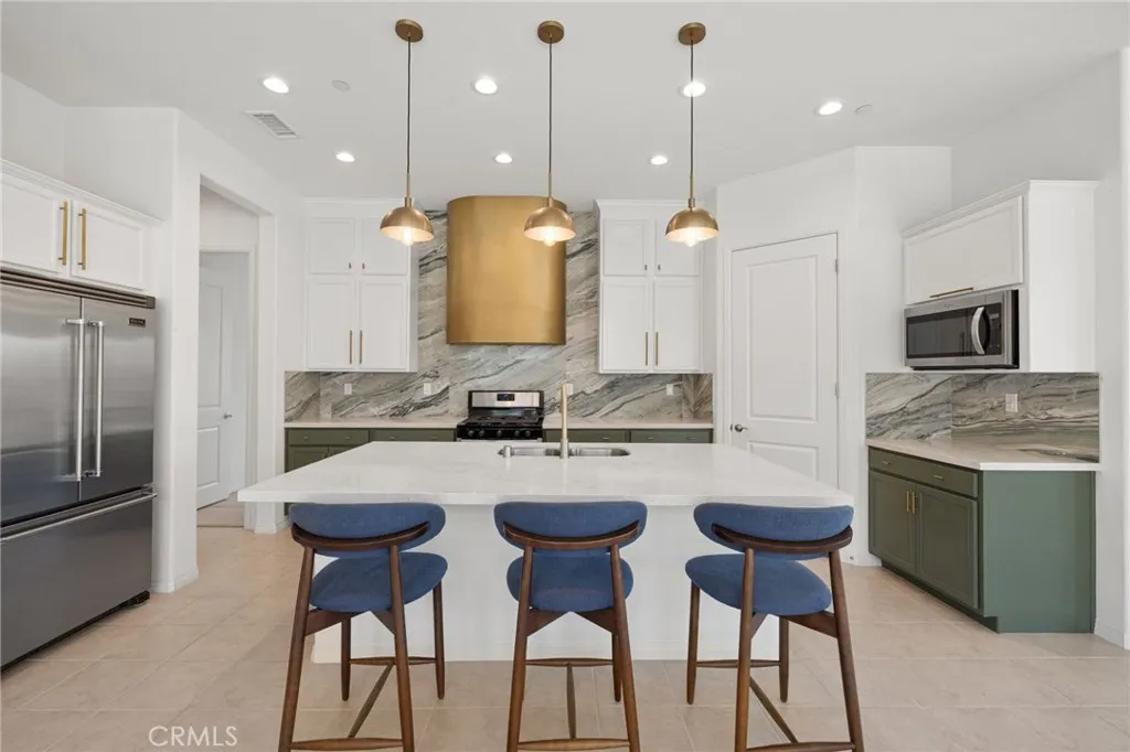 Welcome to one of the most highly upgraded “Expedition” models in Del Webb Rancho Mirage, featuring a rare 3-bedroom configuration—an uncommon find for this floor plan that adds valuable flexibility and appeal. Designed for both everyday living and effortless entertaining, this home showcases a custom wet bar with wine fridge, designer lighting, built-in cabinetry, and a brass-tone sink. The open-concept layout is bright and inviting, centered around a chef’s kitchen with quartz countertops, full-height porcelain backsplash, custom vent hood, premium appliances, and elegant double-stacked cabinetry. Two of the three bedrooms offer private en-suite baths, creating ideal separation for guests, while the spacious primary suite serves as a relaxing retreat, and customized walk-in closets and designer lighting elevate every space. Additional features include OWNED SOLAR, a tankless water heater, upgraded laundry room with sink and cabinetry, fire sprinkler system, and a large garage. Step outside to a beautifully landscaped natural grass yard with stunning mountain views—perfect for enjoying desert sunsets. Located in the guard-gated Del Webb 55+ community, residents enjoy resort-style amenities and a vibrant, active lifestyle, making this a rare opportunity to own a highly customized and versatile home in one of Rancho Mirage’s most desirable communities.