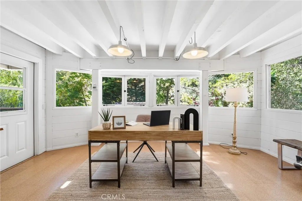 Rarely do you find a home in Laguna Beach with a yard like this! Enjoy the resort-like setting with exceptional privacy, complete with pool and spa surrounded by calming sounds of birds chirping and the serenity of canyon life right from your own private retreat. Walk to famous Bluebird Park, where the community comes together for its popular summer music series, and walk or bike to world-class beaches, shops, hikes, and restaurants of Laguna Beach. This home is where coastal living meets tranquility and modern sophistication. Designed with both comfort and style in mind, the residence showcases rich hardwood flooring, natural stone accents, and timeless tile details throughout. A charming courtyard entry welcomes you into a home defined by thoughtful craftsmanship and an inviting coastal aesthetic. The split-level floor plan enhances both space and livability, with main living areas that flow effortlessly into the kitchen—ideal for everyday living and entertaining alike. The living room features a cozy fireplace, warm hardwood floors, and opens seamlessly to the dining area, where French doors lead to an expansive deck perfect for indoor-outdoor living. The kitchen is well-appointed with granite countertops, an extended breakfast bar, custom cabinetry, farmhouse sink, and stainless steel appliances. A separate family room with built-ins offers additional flexibility and opens to a secondary deck. Extensive upgrades include a tankless water heater, newer windows and doors, updated electrical, copper plumbing, insulation, water and sewer lines, and a newer roof. The home also features central heating and air conditioning with three-zone control, along with a whole-house sound system with built-in speakers throughout. For those seeking a private oasis with close proximity to all that Laguna Beach has to offer, this exceptional property delivers.