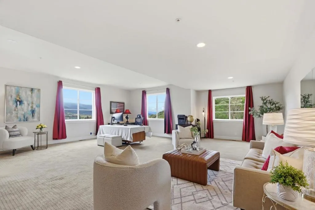 This extraordinary Almaden Valley estate offers an unparalleled blend of luxury, space, and breathtaking panoramic views that stretch across the surrounding hills and valley. Set on over 2.5 acres, this impressive 7,158± sq. ft. architectural masterpiece seamlessly brings the outdoors in, with expansive windows and multiple balconies that showcase the scenery from nearly every room. The thoughtfully designed interior boasts elegant living spaces, a gourmet chefs kitchen with high-end appliances, and inviting areas for both relaxation and entertaining including a sauna, media room, game room, and an expansive bonus space ideal for an in-law suite. The luxurious primary retreat offers a serene escape with a spa-inspired bath and oversized walk-in closet, while the beautifully landscaped grounds feature an outdoor kitchen, pergola, fire pit, and hot tub perfect for enjoying peaceful evenings under the stars. Complete with modern amenities such as solar, Tesla charging, and a four-car garage with workshop, this exceptional home delivers refined living in a truly spectacular setting. Laundry rooms upstairs and downstairs. Close to trails, shopping, easy access to major freeways. Graystone, Bret Harte and Leland Schools.