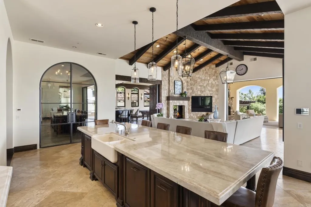 · 9,341 sq. ft. | 6 BD + Office | 6 Full BA | 2 Half BA · Custom single-level · 3.03 acres · Expansive views · Large grass lawn · Resort-style pool & spa · Vineyard · Koi pond · Game room · Media room · Wine cellar · Indoor-outdoor living · Outdoor kitchen · New steel doors and windows throughout · Owned solar · Ideal location Set on 3.03 acres in one of the most sought-after locations within the Rancho Santa Fe Covenant, 5293 La Glorieta presents a rare combination of ideal southwest orientation, panoramic views, and a highly desirable single-level layout. Spanning 9,341 square feet, the estate offers 6 bedrooms, 6 full and 2 half baths, thoughtfully designed for both everyday living and effortless entertaining. A recently completed, extensive remodel brings a cohesive, high-end finish throughout. Steel doors and windows create a clean architectural throughline, seamlessly connecting indoor and outdoor spaces, while updated cabinetry, countertops, and lighting deliver a refined, move-in-ready experience. The grounds are both mature and highly functional—an increasingly rare pairing. A producing vineyard, expansive turf field ideal for sports, resort-style pool, koi pond, and multiple gathering areas create a true estate setting. Additional highlights include a custom wine cellar, media and game room and detached casita with a four-car garage. Framed by sweeping views and vibrant sunsets, the property offers a level of privacy, usability, and lifestyle that is difficult to replicate. All just minutes from the Village, top schools, and the coast. A compelling value within the Covenant, offering scale, amenities, and location that are rarely available in one offering.