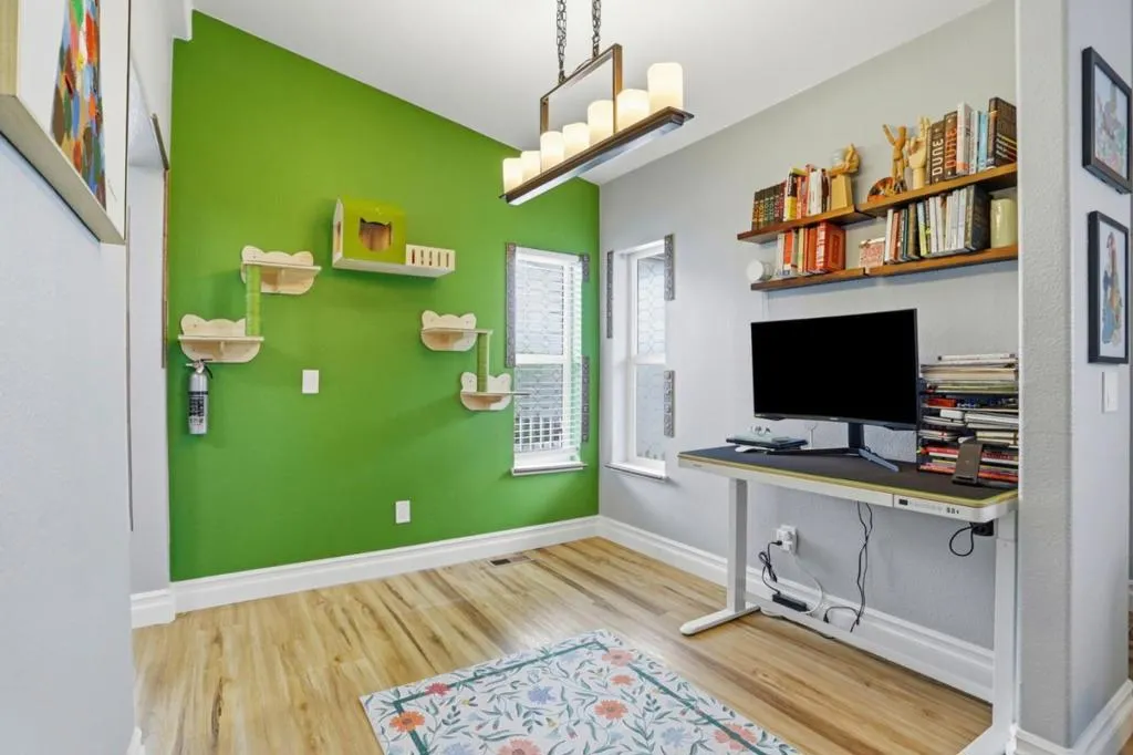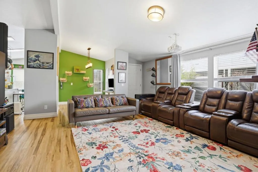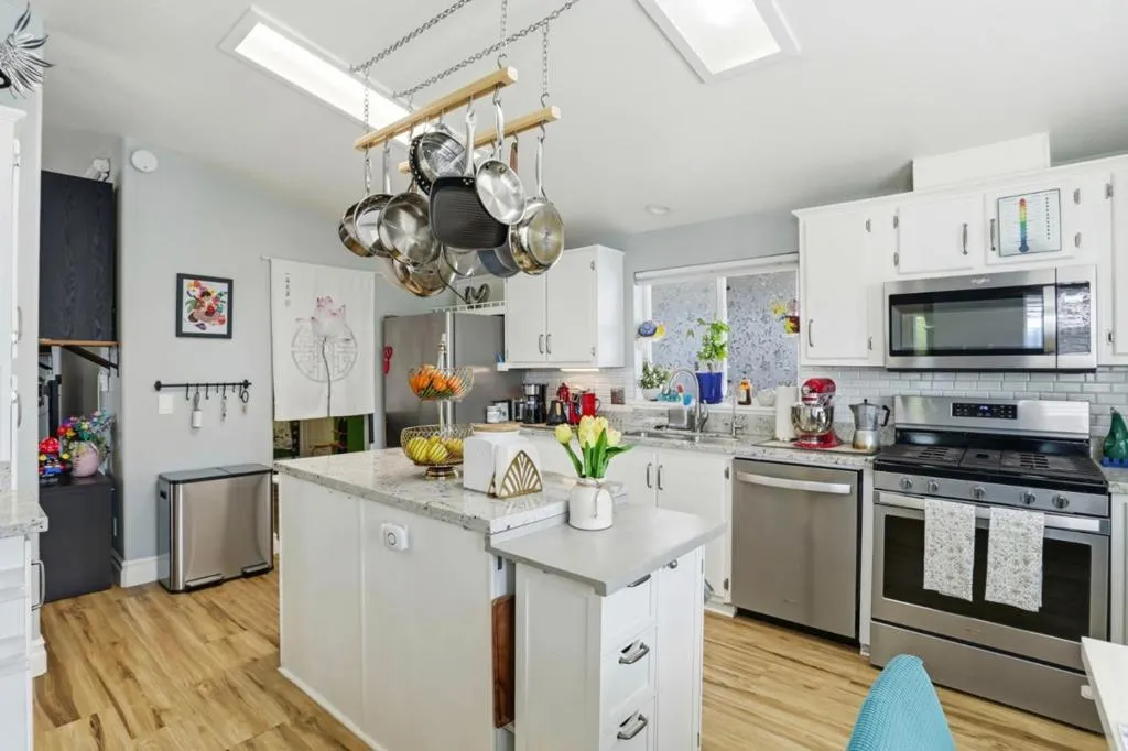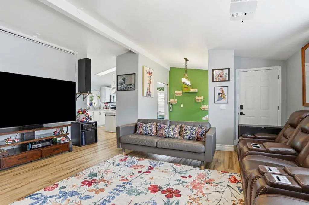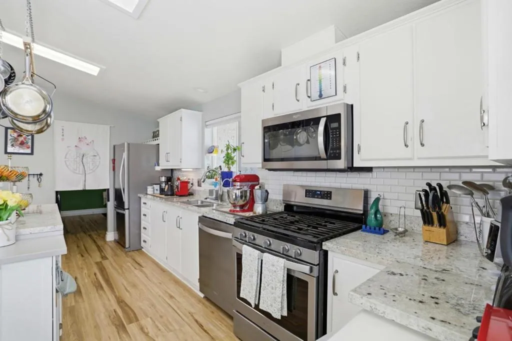 Located in the desirable Casa de Amigos community in Sunnyvale, this meticulously cared-for home showcases numerous upgrades and improvements, including integrated smart home technology and audio/video features that create a seamless and enjoyable living experience. This spacious 3-bedroom, 2-bath residence offers 1,620 sq ft of comfortable, modern living in a welcoming all-ages parkjust minutes from Levis Stadium with convenient access to Highways 101 and 237. Designed for both everyday living and entertaining, the open layout features high ceilings, laminate flooring throughout, a separate family room, and a formal dining area. The well-appointed kitchen includes granite countertops, a center island, ample pantry cabinetry, and full appliances, providing both style and functionality. A gas-burning fireplace adds warmth and ambiance to the living space, enhancing the homes inviting feel. Bedrooms feature walk-in closets, while bathrooms are finished with granite surfaces and offer both tub and shower options. Central A/C and forced air heating ensure year-round comfort, and a dedicated laundry area with washer and dryer adds everyday convenience. This home combines space, style, and smart living in one of Sunnyvales most sought-after all-ages communities.