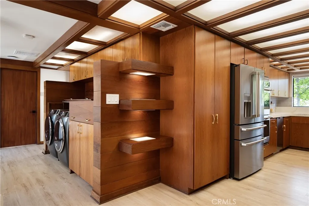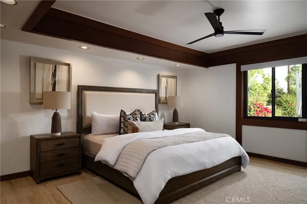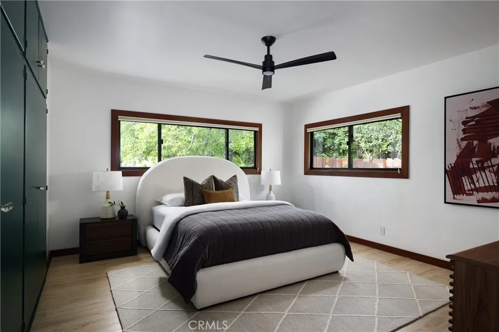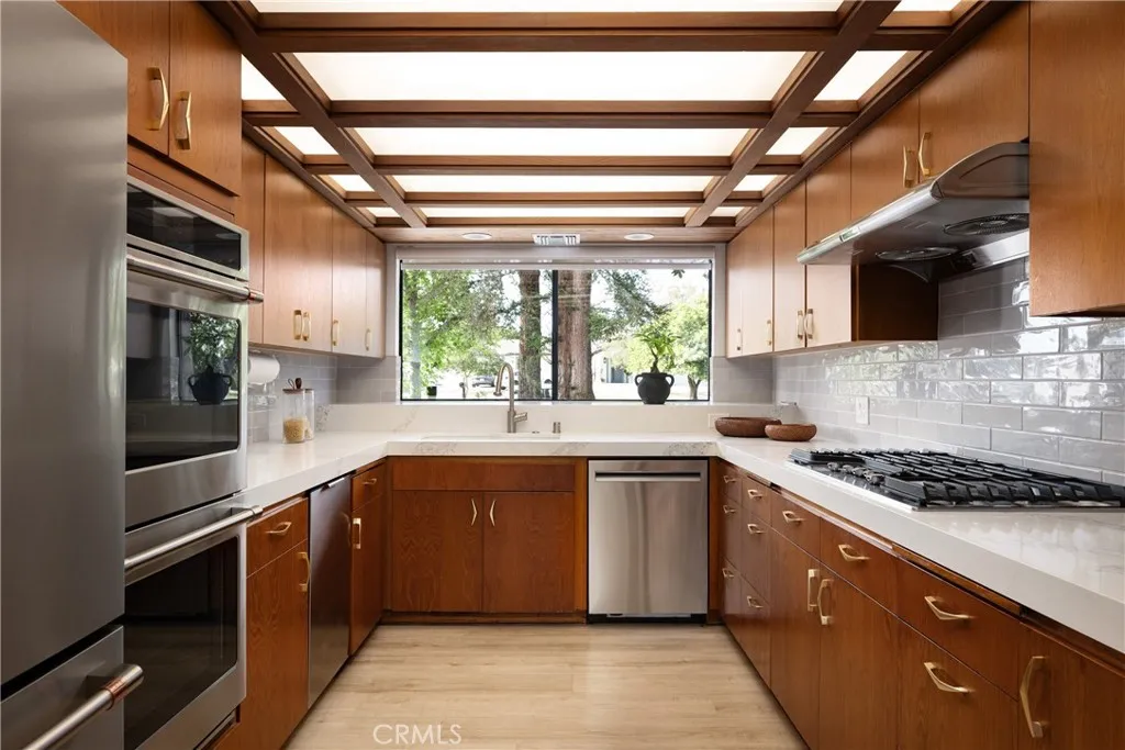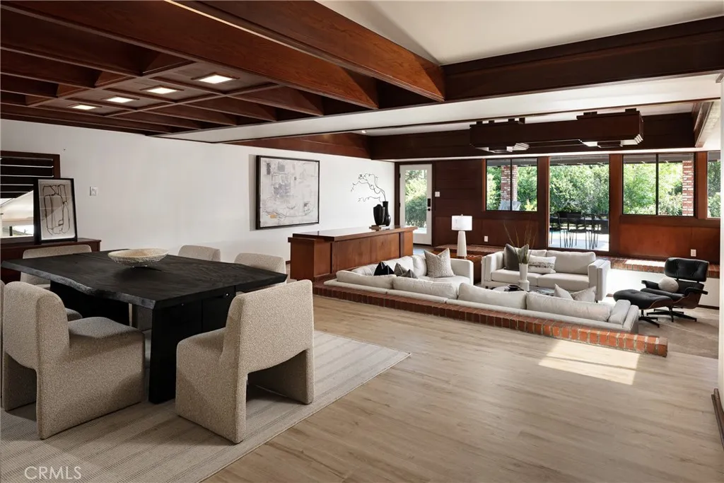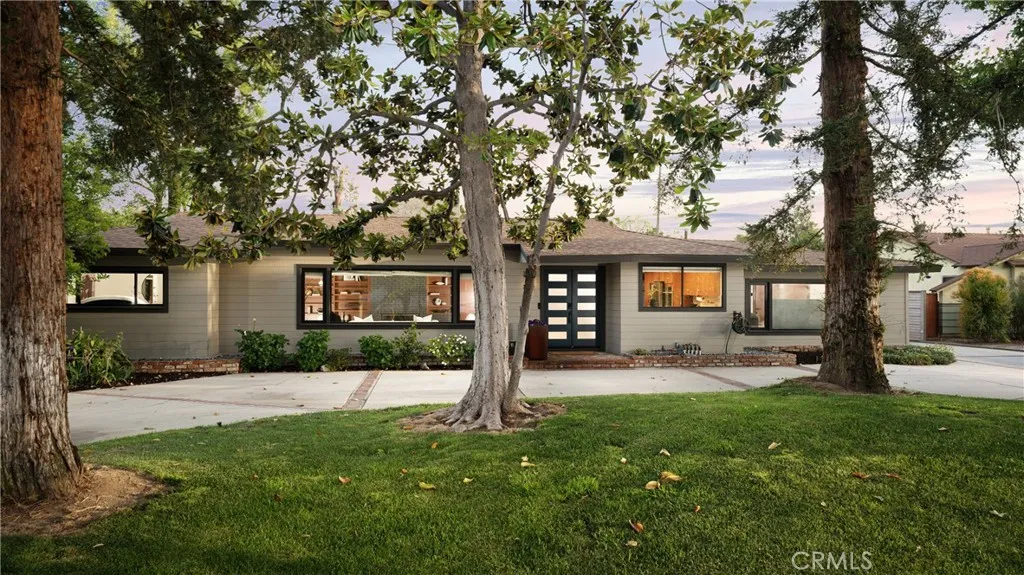 Set on a 17,442 sq ft lot on one of Sherwood Forest's most storied streets, 17824 Sunburst St is a 3,126 sq ft custom single-story mid-century modern home that earns the label. The step-down family room — lined with built-in mahogany cabinetry, custom redwood beams and moldings, and floor-to-ceiling windows — is the kind of space that you didn't know you were looking for. The formal dining room with its hand-crafted wood beam drop ceiling, the brick fireplace anchoring the living room, the new double-door entry, the primary suite that opens directly to the yard and pool: this home was designed with intention, and that intention held. What the current owners added was everything underneath — new HVAC, plumbing, electrical panel, tankless water heater, new flooring, a completely remodeled guest bath, new appliances, replaced pool equipment, and smart home technology throughout, including fingerprint autolock entry and an EV charger — not because they were selling, but because they planned to stay. The mid-century soul is untouched. The infrastructure is updated and new. With 4 bedrooms (3 per taxroll) and 3 bathrooms, with an oversized extra long detached garage with ADU potential, you won't find another like this one!