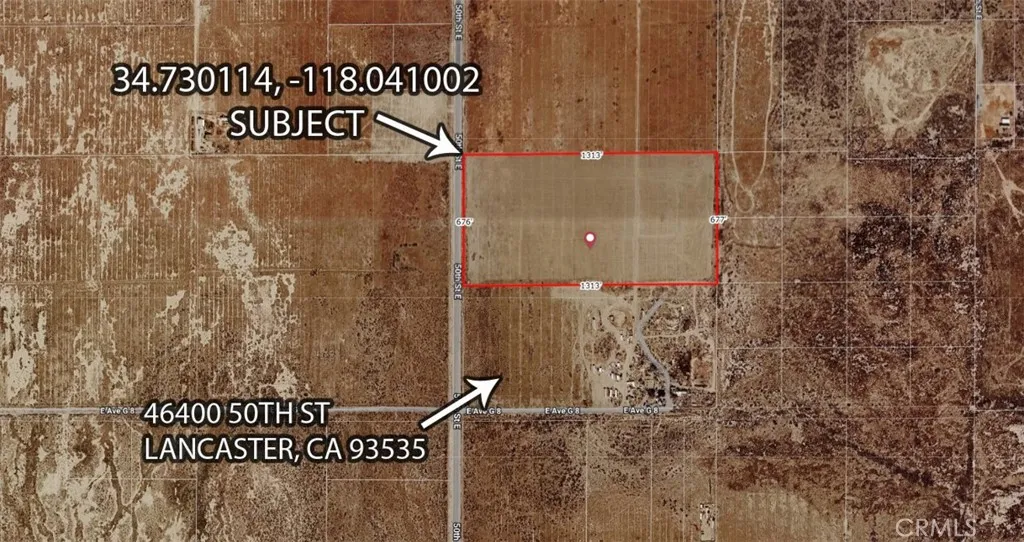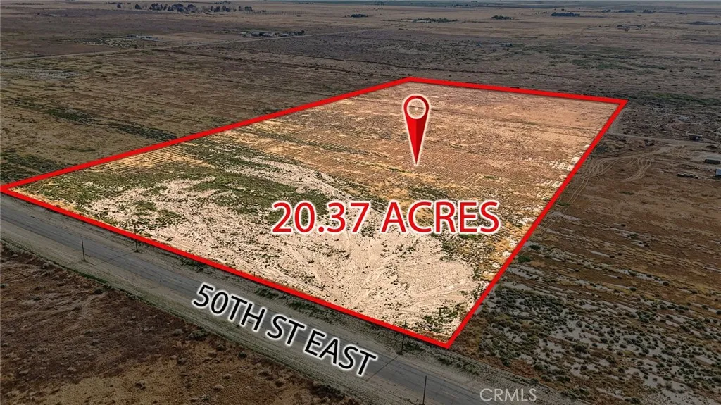 Discover wide-open space and endless potential with this expansive 20.37-acre parcel, APN: 3382-001-016 in the growing Roosevelt area of Lancaster. Ideally located just east of Highway 14 on 50th Street East and Avenue G-6 East (between East Avenue G and East Avenue H), this property offers both accessibility and seclusion—perfect for those seeking a strategic investment or a future development opportunity. Surrounded by large parcels, rural homes, and ongoing growth in the Antelope Valley, this flat and usable land has 676 feet of frontage on 50th street and 1,313 feet deep, provides a blank canvas for a variety of possibilities, from a custom ranch or off-grid retreat to long-term land banking. The proximity to Highway 14 ensures convenient access to Lancaster, Palmdale, and beyond, while still maintaining the peace and quiet of the high desert. With wide-open skies, desert beauty, and strong upside potential as the area continues to expand, this is a rare opportunity to secure a sizable piece of land in a path of growth. Don’t miss your chance to invest in the future of the Antelope Valley. Immediate neighbor's address: 46400 50th Street East, Lancaster, CA 93535.