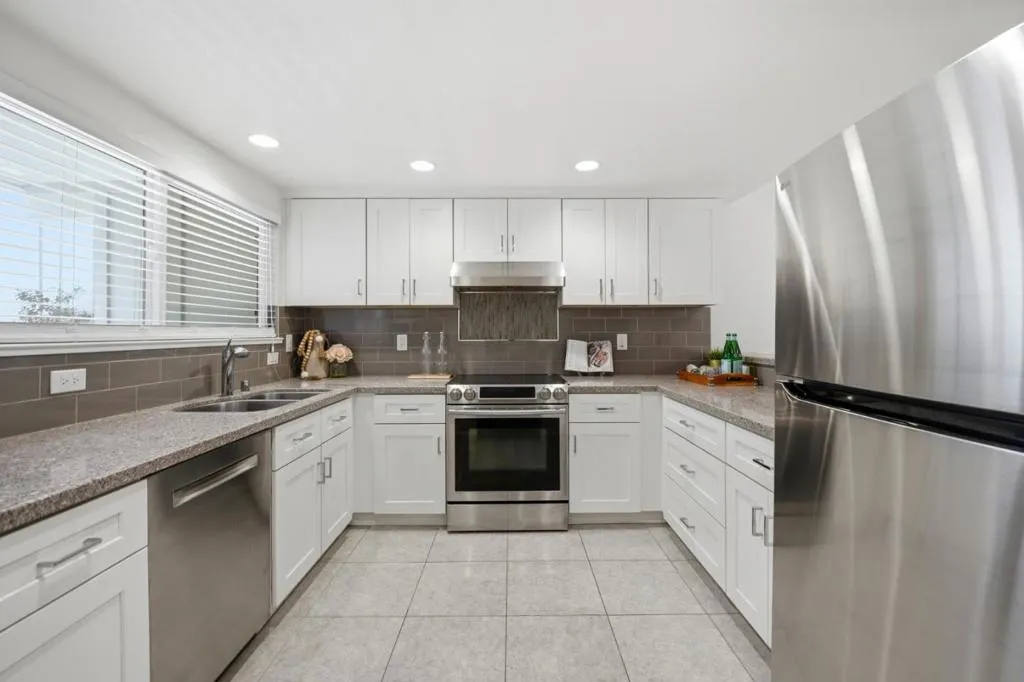 Turn-Key Updated Townhome in Merrivale West Beautiful 2-bedroom, 1.5-bath split-level townhome in the desirable Merrivale West community. This light-filled home features a spacious living area with recessed lighting and expansive sliding glass doors opening to a private, enclosed patioperfect for indoor-outdoor living. The updated kitchen offers granite countertops, custom backsplash, stainless steel appliances, and ample cabinetry, seamlessly connecting to the dining and living areas. Upstairs, two generously sized bedrooms provide abundant closet space, including a versatile bonus area ideal for a home office. Additional highlights include beautiful cherry wood flooring, fresh interior paint, new carpeting, an attached 1-car garage with direct access, and an additional assigned parking space. Enjoy well-maintained community amenities including a pool with an adjacent poolside facility offering indoor seating, restrooms, and changing and shower facilities, as well as a clubhouse, BBQ area, and scenic walking pathsall with a low HOA. Perfectly positioned near downtown Campbell, Santana Row, Westfield Valley Fair, Westgate, and major commute routes including San Tomas Expressway and Highways 17, 85 & 280, this home offers an exceptional lifestyle in the heart of Silicon Valley.