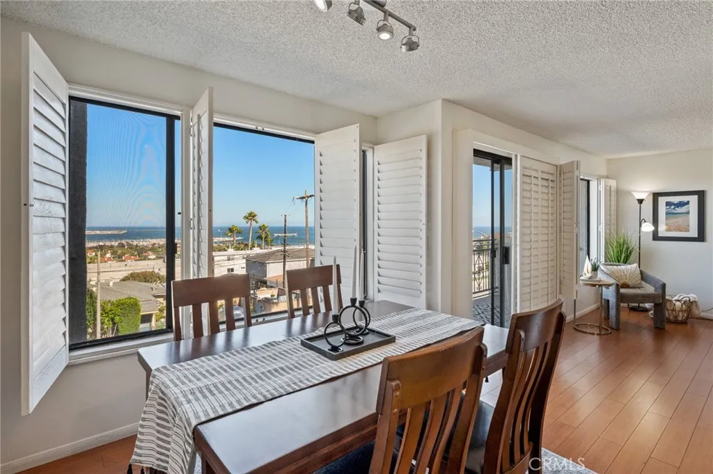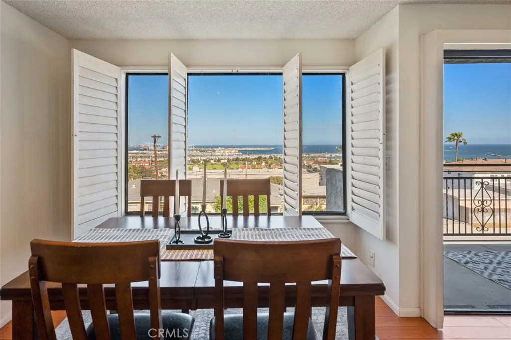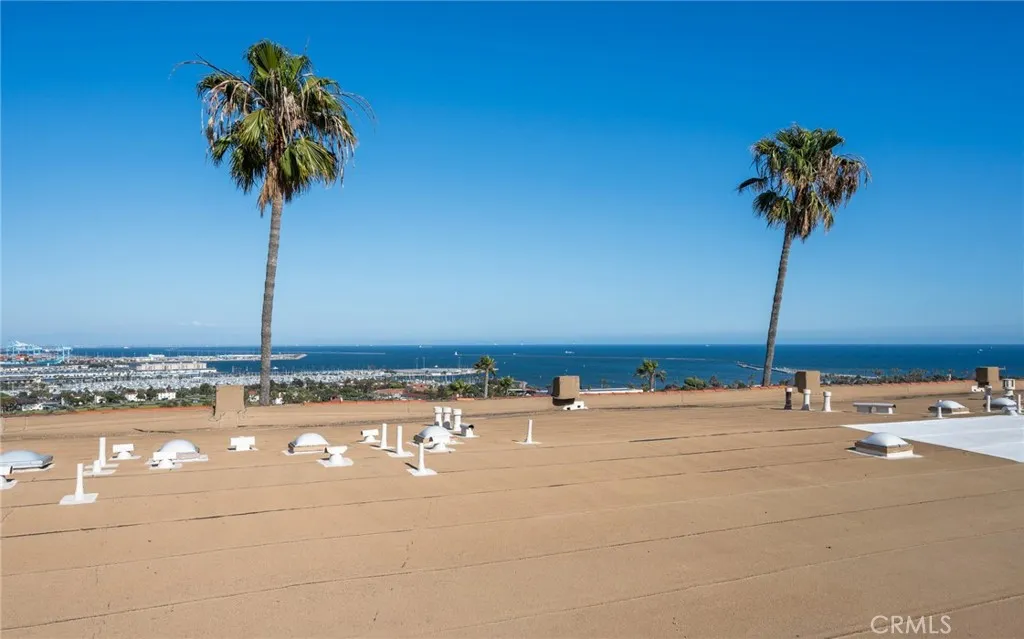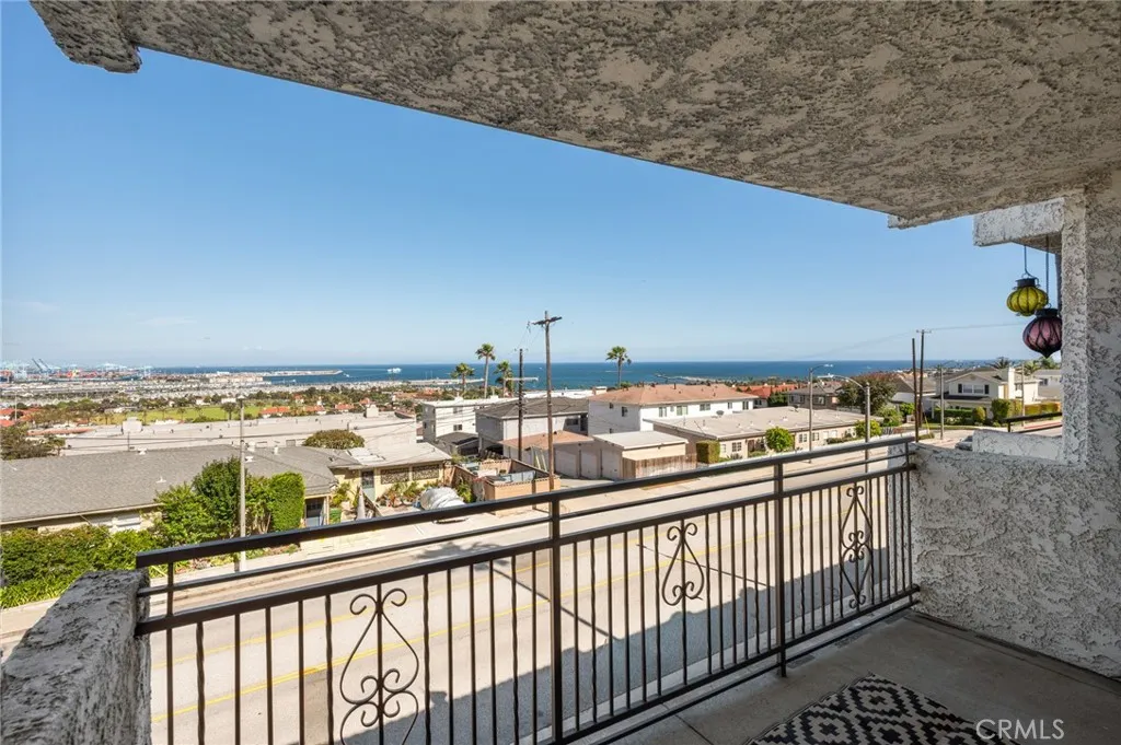 Sweeping views of the Pacific Ocean, harbor, and city lights welcome you to this inviting coastal retreat. Perfectly perched to capture the ever changing movement of ships gliding through the channel and the glow of sparkling evening vistas, this residence offers a peaceful escape in one of San Pedro’s most scenic enclaves. Inside, a comfortable, light filled layout is designed to maximize both the views and everyday livability. A cozy gas fireplace and wet bar anchor the living space, while large windows and a private balcony create a natural gathering place to relax, entertain, and enjoy a front row seat to Fourth of July fireworks. The kitchen is thoughtfully arranged for connection and convenience, featuring granite counters, stainless steel appliances, generous cabinetry, and ample workspace. It opens seamlessly to the spacious dining area, making the home feel warm, functional, and welcoming. Both bedrooms are well proportioned, offering excellent closet space with organizational features and quiet separation from the main living areas. A dedicated in unit laundry closet adds ease to daily routines. The gated subterranean parking structure provides side by side assigned spaces and a private storage room while the community enhances the relaxed coastal lifestyle with a pool, spa, exercise room, and high speed Wi Fi. Located in the sought after Palisades area of San Pedro, you’ll enjoy cool ocean breezes and effortless access to local favorites including Cabrillo Beach and Marina, Point Fermin Park, Angels Gate Park/Korean Friendship Bell, the downtown arts district, and the highly anticipated West Harbor waterfront development. Move in ready and beautifully positioned, this residence offers a rare blend of coastal serenity, everyday comfort, and a coveted Palisades address — an exceptional opportunity at an accessible price point. With no sales in this 49 unit community for the past three years, opportunities here are truly rare — don’t let this one pass you by!