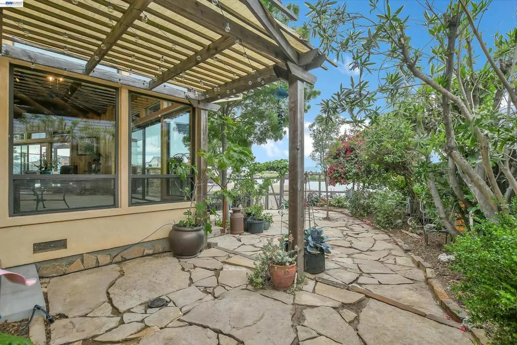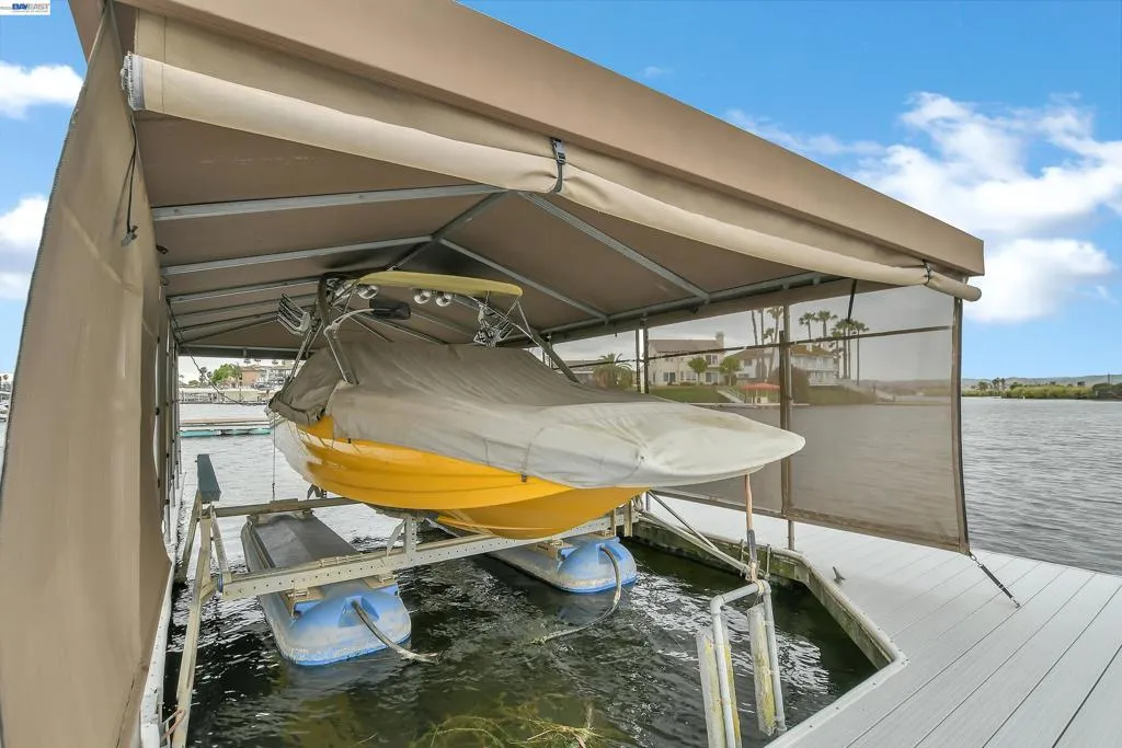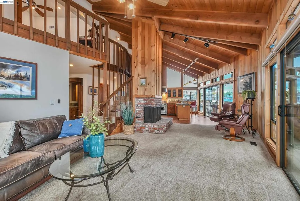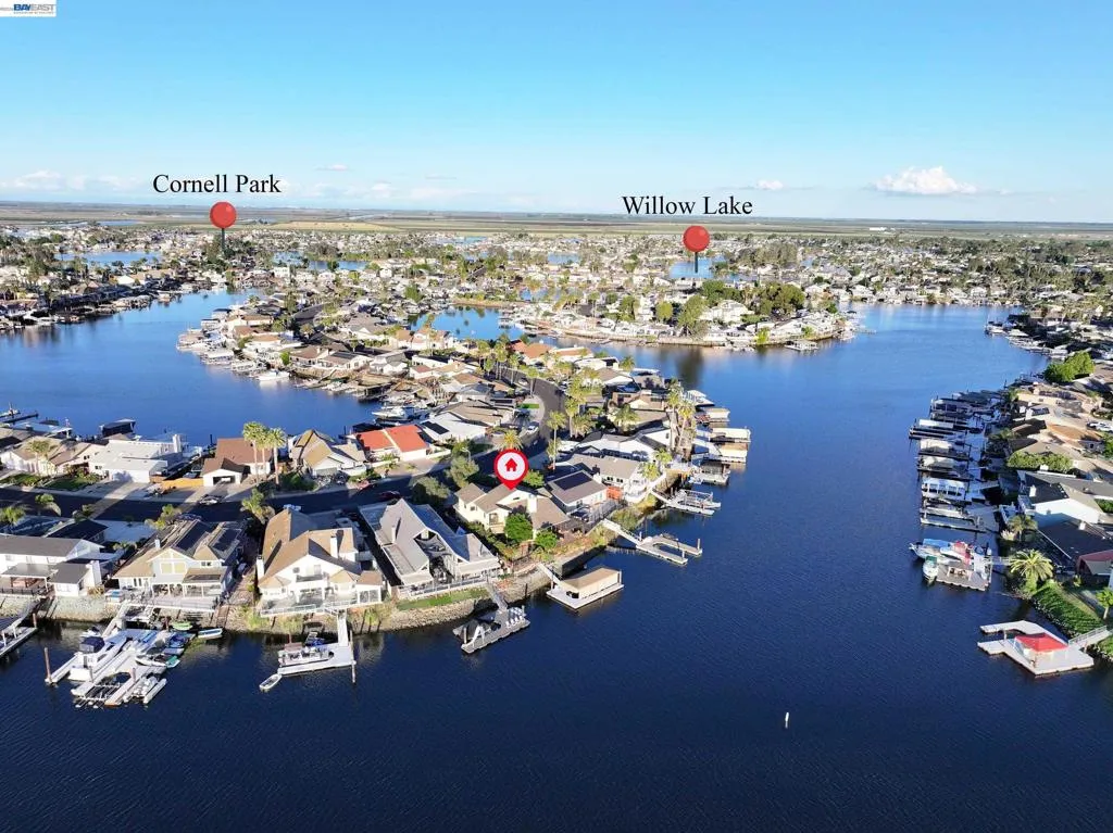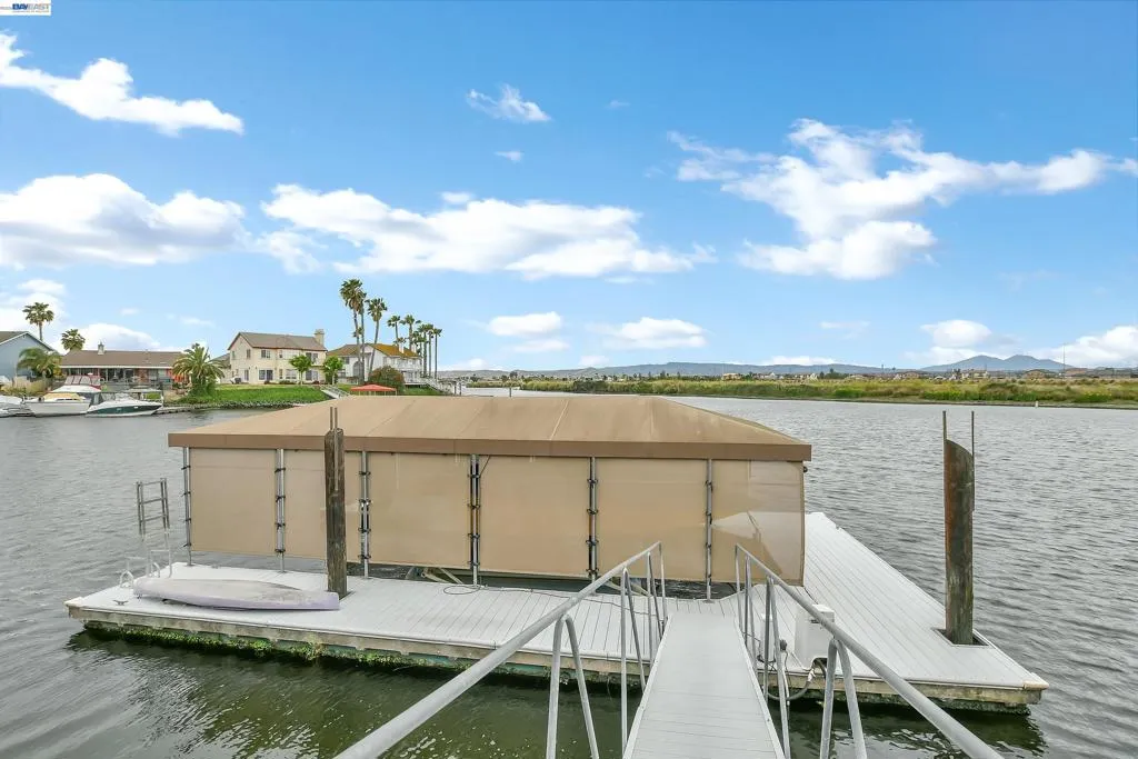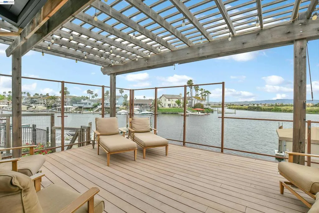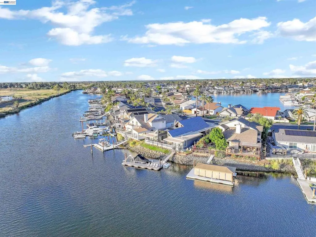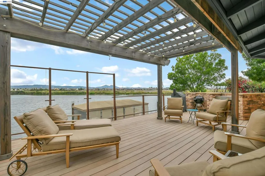 Experience the ultimate Delta lifestyle in this architecturally designed custom home, ideally positioned just minutes from fast water. Showcasing sweeping, unobstructed views of the waterways and Mt. Diablo, this property offers unforgettable sunsets that truly set it apart. The dramatic great room features soaring ceilings and expansive windows, creating an open, light-filled space that seamlessly blends indoor and outdoor living. Rich wood finishes and thoughtful architectural details add warmth, character, and a distinctive design throughout. The home offers two versatile bonus spaces—ideal for a game room, office, guest retreat, or additional living areas. One of these is located on the main level, creating the perfect space to unwind after a day on the water. The downstairs bonus room also offers flexibility and can be used as a 4th bedroom. The outdoor living spaces are exceptional, featuring multiple seating areas, a spacious deck with Trex decking, glass railings, and a covered pergola, along with a rock-finished patio complemented by surrounding gardening areas. The property also includes an outdoor shower and a dedicated hot tub pad with electrical already in place, ready for your future spa. A rare and highly desirable feature for waterfront living, this home sits on a large 9,600 sq ft point lot and offers a unique, fully fenced backyard, providing usable outdoor space not commonly found on the water—pet-friendly and ideal for added privacy. The covered brock boat dock offers protection, convenience, and easy access to the water, creating an ideal setup for enjoying everything the Delta lifestyle has to offer. This is a rare opportunity to own a one-of-a-kind waterfront property that combines location, views, architectural design, and an incredible indoor-outdoor lifestyle.