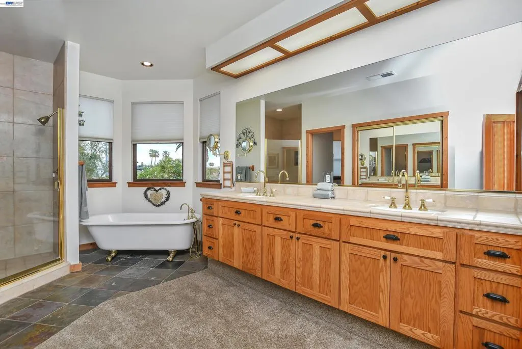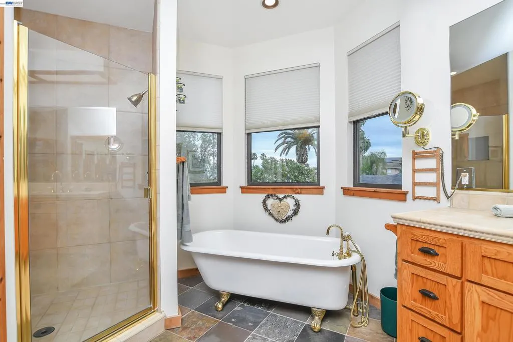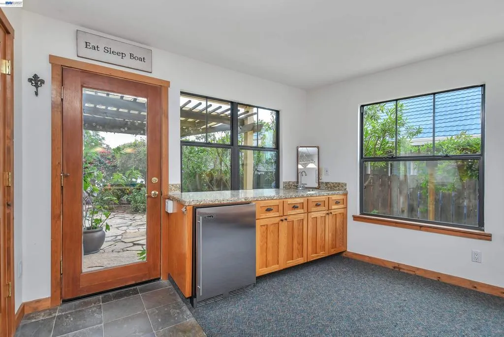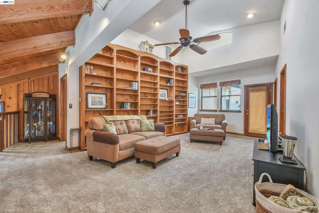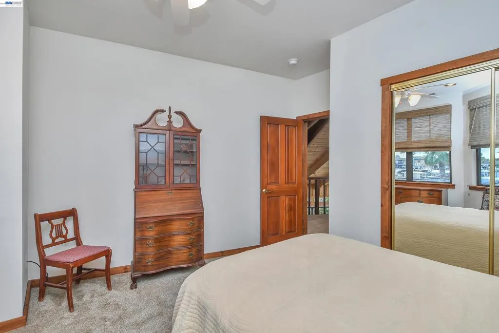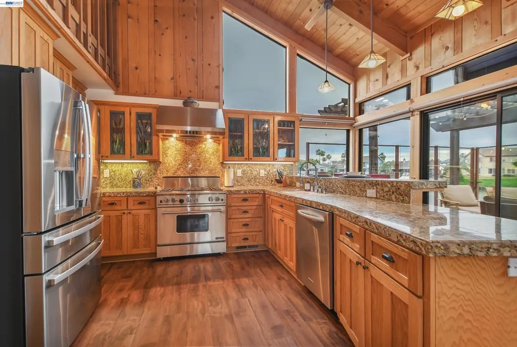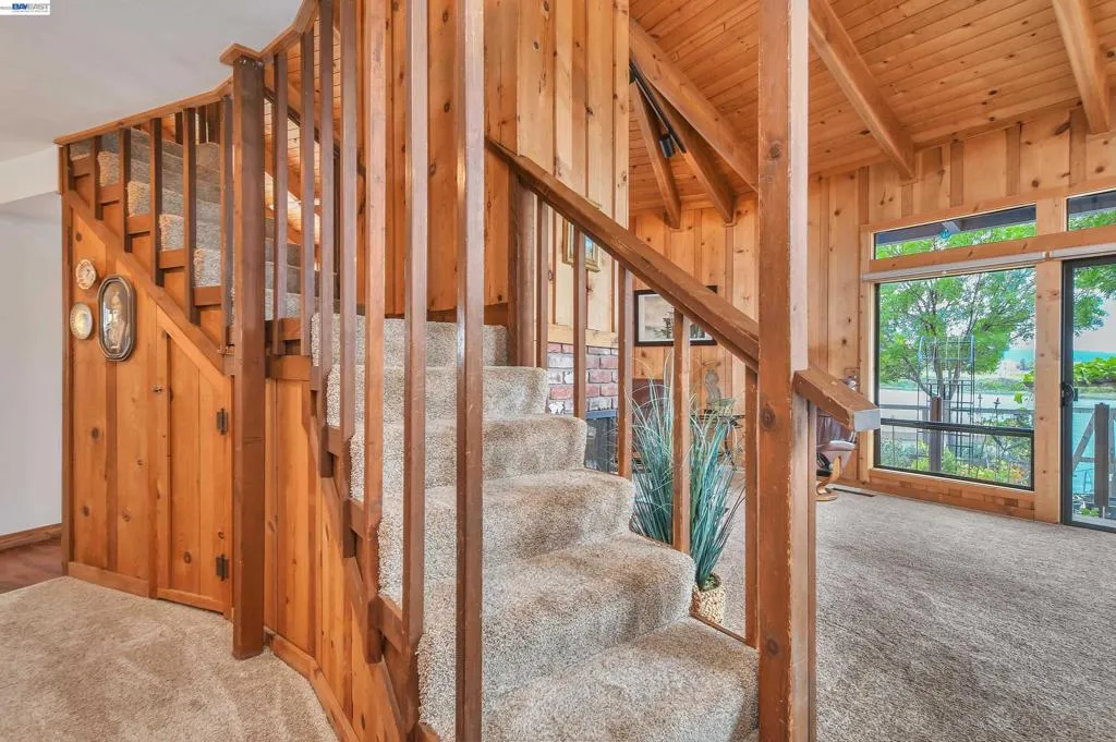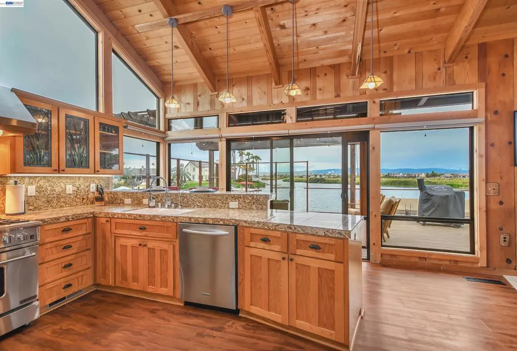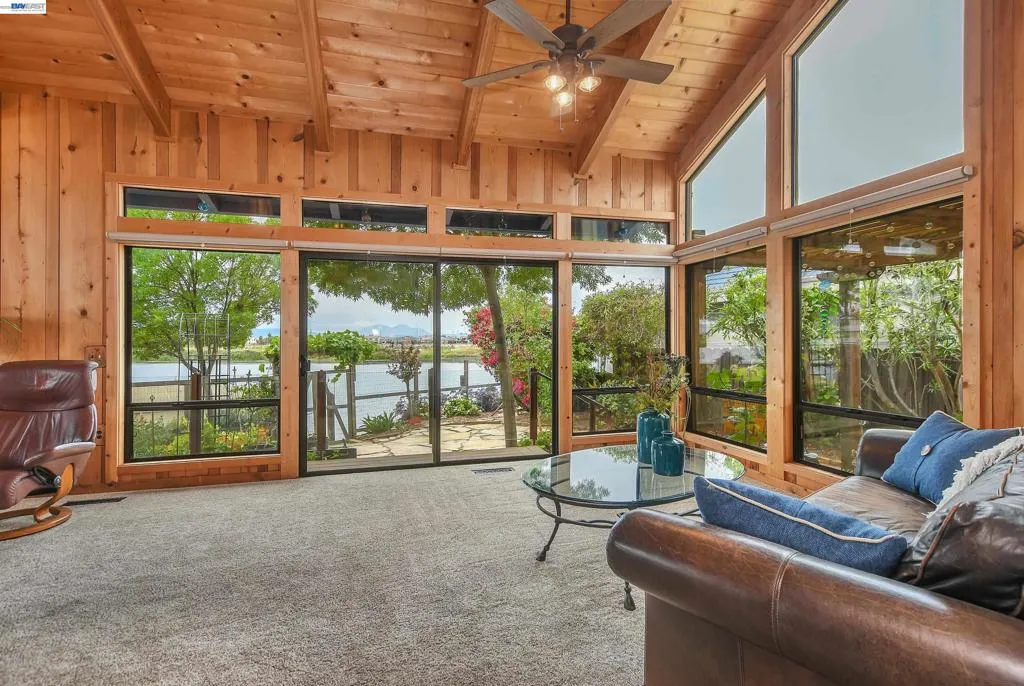 Experience the ultimate Delta lifestyle in this architecturally designed custom home, ideally positioned just minutes from fast water. Showcasing sweeping, unobstructed views of the waterways and Mt. Diablo, this property offers unforgettable sunsets that truly set it apart. The dramatic great room features soaring ceilings and expansive windows, creating an open, light-filled space that seamlessly blends indoor and outdoor living. Rich wood finishes and thoughtful architectural details add warmth, character, and a distinctive design throughout. The home offers two versatile bonus spaces—ideal for a game room, office, guest retreat, or additional living areas. One of these is located on the main level, creating the perfect space to unwind after a day on the water. The downstairs bonus room also offers flexibility and can be used as a 4th bedroom. The outdoor living spaces are exceptional, featuring multiple seating areas, a spacious deck with Trex decking, glass railings, and a covered pergola, along with a rock-finished patio complemented by surrounding gardening areas. The property also includes an outdoor shower and a dedicated hot tub pad with electrical already in place, ready for your future spa. A rare and highly desirable feature for waterfront living, this home sits on a large 9,600 sq ft point lot and offers a unique, fully fenced backyard, providing usable outdoor space not commonly found on the water—pet-friendly and ideal for added privacy. The covered brock boat dock offers protection, convenience, and easy access to the water, creating an ideal setup for enjoying everything the Delta lifestyle has to offer. This is a rare opportunity to own a one-of-a-kind waterfront property that combines location, views, architectural design, and an incredible indoor-outdoor lifestyle.