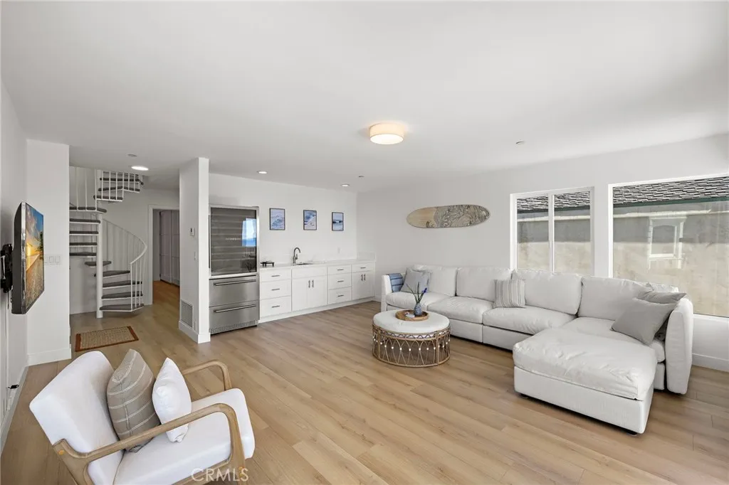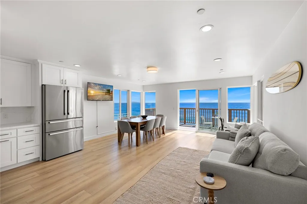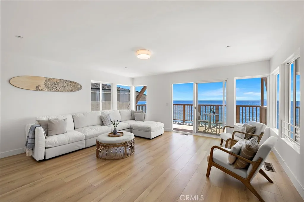 FURNISHED RENTAL AVAILABLE NOW!! Welcome to this stunning, fully remodeled oceanfront residence, ideally positioned directly on the shoreline. This exceptional coastal retreat places the ocean at center stage, offering uninterrupted whitewater and coastline views. Step outside to experience refreshing sea breezes, breathtaking sunrises, and the soothing rhythm of the waves that define everyday living by the sea. The interior is bright, airy, and thoughtfully designed to seamlessly connect indoor and outdoor spaces. Coastal-chic finishes complement the panoramic ocean views throughout the home, which features three bedrooms and three beautifully updated bathrooms. The main level includes two bedrooms and a two fully remodeled bathroom with a walk-in shower. The main level is dedicated to an impressive, fully remodeled kitchen equipped with top-of-the-line appliances and elegant stone countertops, creating an exceptional cooking and entertaining experience. The kitchen opens effortlessly to the living and dining areas, all showcasing sweeping whitewater ocean views. From here, step onto the expansive ocean-view deck, complete with an awning for daytime shade—an ideal setting for enjoying coastal days and evening ambiance under twinkling lights. A striking spiral staircase leads to the lower level, which offers a third bedroom and bathroom, along with a spacious ocean-view family room. This inviting space features a full wet bar with a wine / beverage refrigerator and sink. The family room opens to an additional ocean-facing deck, perfect for taking in spectacular sunset views. The property also includes private access to a shared ocean-view deck and steps leading directly to the sand. Ideally located within walking distance of Laguna Beach’s renowned restaurants, boutique shops, trolley stops, and celebrated art galleries, this home offers the ultimate blend of luxury, comfort, and coastal lifestyle