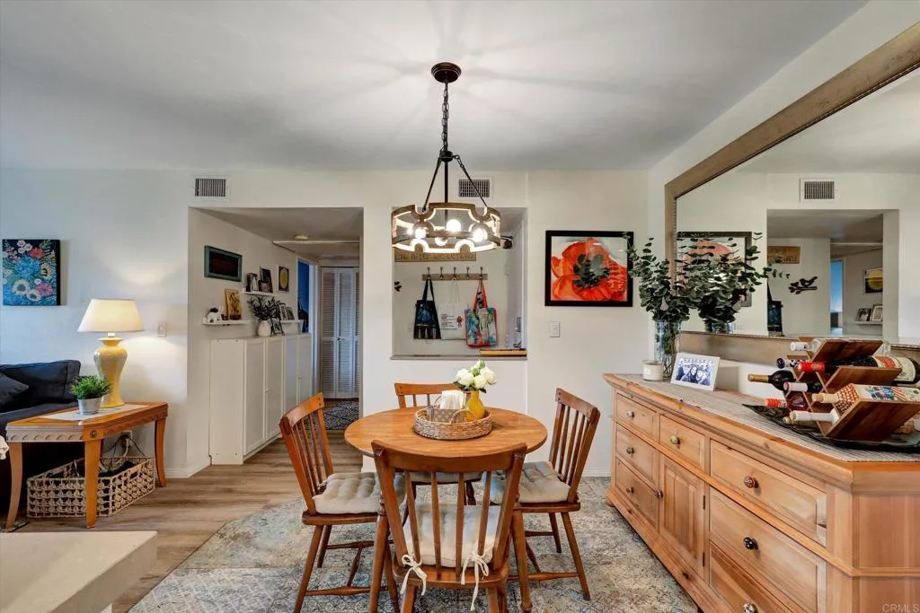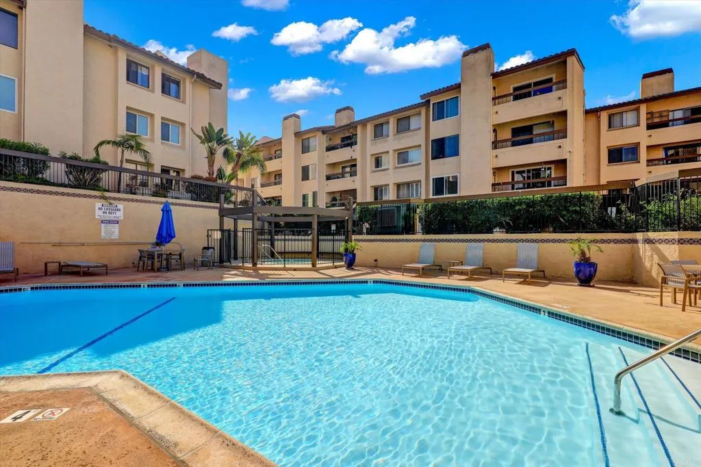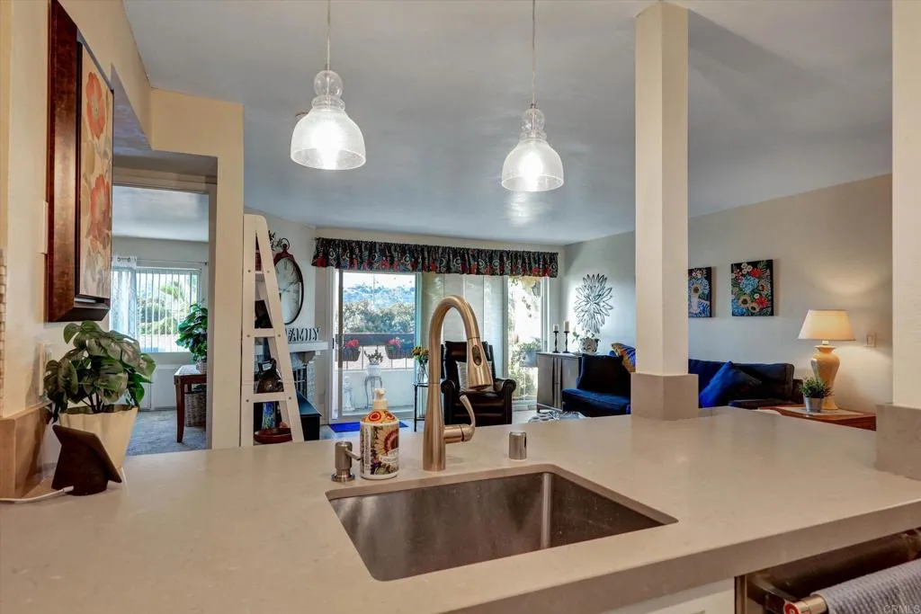 Located in the heart of Mission Valley, this beautifully maintained 2 bed/2bath end-unit condo blends modern upgrades with thoughtful design in a prime location. The open, light-filled floor plan creates a warm and inviting atmosphere. The remodeled kitchen features quartz countertops, stainless steel appliances, and sleek cabinetry with ample storage. The living and dining areas flow seamlessly together, centered around a cozy gas fireplace. Southern-facing exposure fills the home with natural light and pleasant views. With bedrooms on opposite sides for added privacy, the spacious primary suite offers a walk-through closet and a spa-like ensuite bath with dual sinks, newer cabinetry, and a built-in vanity. Additional highlights include custom built-ins, private storage, in-unit laundry hookups, a nearby laundry room. The community offers lush landscaping, a gazebo, tranquil ponds, and resort-style amenities. **Parking includes single-car garage, storage area, and additional parking.