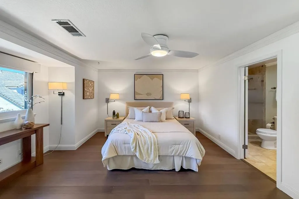 Beautifully renovated 3BD/2.5BA townhome/cottage in the sought-after Hamilton Place community. Rarely available, this home features a versatile floor plan with a ground-floor bedroom, two spacious upstairs bedrooms, and 2-car garage. The updated kitchen equipped with top of the line stainless steel appliances opens to inviting spaces for everyday living and entertaining. Enjoy a private front courtyard with seasonal oranges. Backyard with year-round lemons, Thai lime tree, decking, string lighting, and springtime nectarine tree blossomsperfect for relaxing or hosting. Located in a quiet, friendly neighborhood known for its community feel and walkability to Whole Foods, The Pruneyard shopping plaza, & nearby shops. Close to the Los Gatos Creek Trail, downtown Campbell, and Willow Glen. A short drive to San Jose airport. Upgrades include Carrier HVAC, smart home features, 52-bottle wine fridge, water softener and RO water filtration, Level 2 EV charger, updated electrical sub-panel, and solar tubes for added natural light. Easy access to freeway 280 and 880. Walking distance to Ebay. A rare blend of comfort, style, and location.