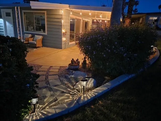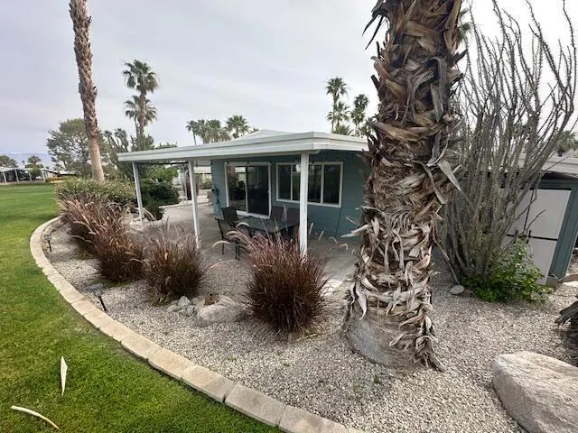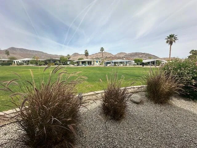 Rarely available Greenbelt location!! Enjoy the Amazing mountain views on your covered rear patio!!! This home has fabulous curb appeal- newly painted , framed windows, raised garden with desert landscaping!! Inside is an open and airy partially remodeled kitchen and great room combo! A brand new island with quartz counter, seating and storage separates the room. Stunning greenbelt and mountain views from inside add to the beauty of this special home. 3 covered patios offer plenty of space to relax and entertain! Sliding glass door to the rear patio provides the indoor/outdoor combination feeling! Brand New Roof and curved supports on the carport! Located just steps away from the pool and clubhouse and just minutes away from The El Paseo Shopping & Dining Corridor the Living Desert!! Monthly land fee includes water, sewer and a fabulous Club House with year round heated pool & spa and on-site management. Rent controlled park with low land fee of $812.monthly. Privately owned park. Not Indian Land. Subletting allowed after 1 year of residency.