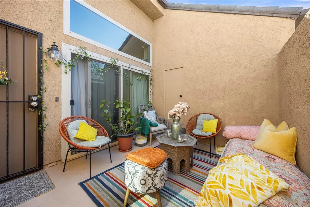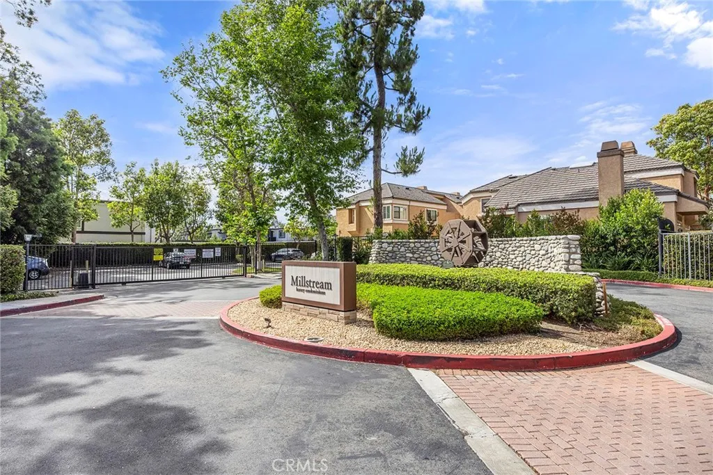 Located in the gated Millstream community, this rare end-unit offers exceptional privacy with only one shared wall and no one above or below. The upgraded kitchen is the centerpiece, featuring quartz countertops, full backsplash, white cabinetry, and LG stainless steel appliances. The light-filled living and dining areas overlook your private patio and are enhanced by soaring ceilings, elegant wainscoting, crown molding, ceiling fans throughout, gorgeous wood laminate flooring, and a NEST thermostat. The 2-bedroom, 1.25-bath layout includes a bright primary suite, flexible second bedroom or office, skylit bath, and in-unit laundry. Storage is abundant with a hallway closet, walk-in closet, built-ins, attic with pull-down ladder, and garage shelving. Enjoy resort-style living with streams, bridges, lush landscaping, pool, spa, and tennis courts, plus ample parking and a prime location within walking distance to shops and restaurants, close to beaches and freeway access. HOA covers water and trash—offering comfort, convenience, and a true sense of community living. A rare opportunity in Millstream with no other units currently on the market—take a look at the 3D tour and schedule your private showing before it’s gone.