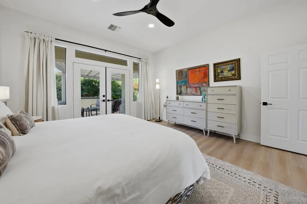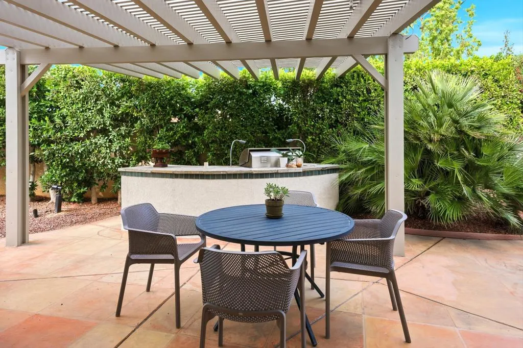 ANNUAL FURNISHED LEASE WITH SOLAR - Putting Green, Pool, Privacy and Price Perfection. Everything renters want, they'll find at this 3BD/3BA spacious home. The primary suite with a king sized bed has a secluded office attached, for those who need privacy on a zoom call before they enjoy their wine in the jacuzzi. The 2nd bedroom fitted with a queen sized bed and a private TV also has an en suite bathroom. A 3rd bedroom with a queen sized bed and private TV; plus a 3rd bath/powder room with a shower accessible from the hall, complete anyone's wish list. Your biggest problem will be where to have breakfast; in the game room watching tv? At the kitchen bar chatting with the cook? In the dining room looking at the Mountain View? Or perhaps next to the pool with an iPad reading under the pergola. Sit quietly in the living room or cuddle on the family room oversized couch watching the fireplace and your favorite binge watch simultaneously.