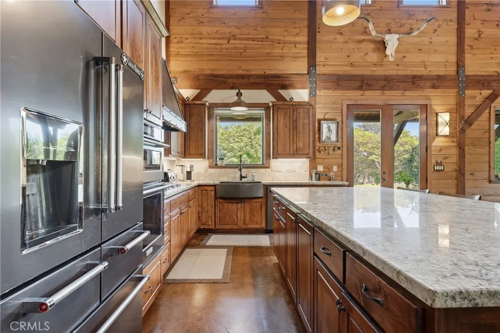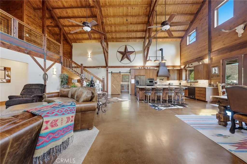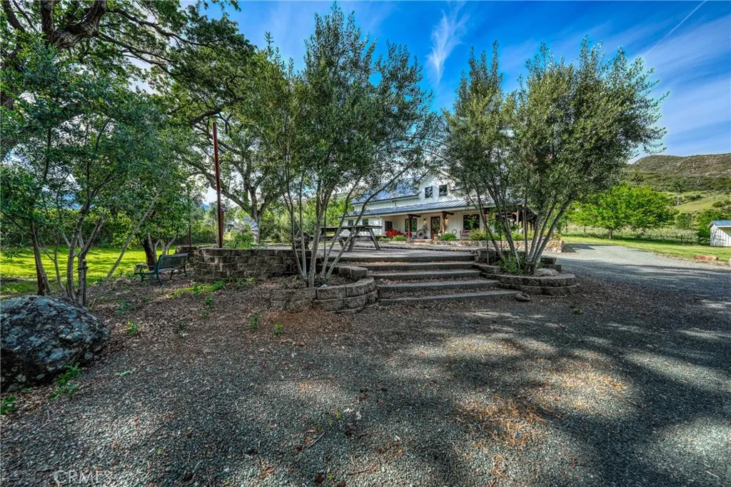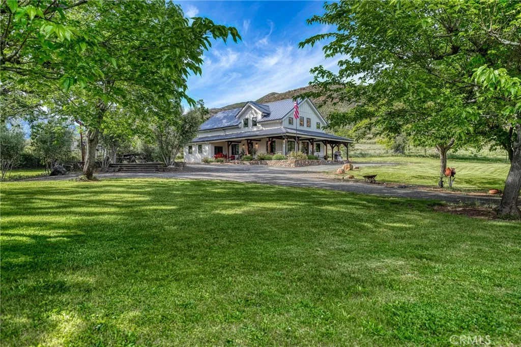 Texas Style Ranch meets Northern California luxury, this exceptional 10± acre Gentleman’s Ranch offers a rare blend of refined living, thoughtful design, with horse amenities featuring an arena and open grazing pastures. ONLY 1 hour 10 minutes to Napa or Santa Rosa. Encompassing a custom-built 2,920± sq ft, 3 bedrooms, 3 bathrooms, and a versatile open loft/office, thoughtfully designed to capture sophistication in a peaceful small-town setting. Architecturally striking, this home showcases soaring natural wood ceilings with exposed beams, grand custom hardwood entry doors, a durable metal roof, expansive stamped concrete patios that seamlessly blend indoor and outdoor living. Inside has stained concrete floors with radiant heat complemented by custom cabinetry and distinctive metalwork throughout from the handcrafted range hood to the stair railings and hammered copper farmhouse sink. The chef’s kitchen features an oversized single slab granite island and premium stainless steel KitchenAid appliances. The great room is both warm and inviting, centered around a gas fireplace and framed by large windows that fill the space with natural light. Main-level primary suite offers a private retreat with a soaking tub, walk-in tiled shower, and elevated finishes. Designed for both equestrian lifestyle and everyday enjoyment, the property is fully equipped with a horse arena, dog kennels, and cross-fenced pastures. A high-producing spring delivering approximately 100 gallons per minute provides abundant water for lush lawns, irrigated pasture, for year-round greenery. Additional improvements include a 20x30 shop, two PG&E meters (residential and agricultural). The grounds are equally impressive, featuring mature olive trees and century-old oaks that create a park-like setting, complemented by manicured lawns and an automatic entrance gate entrance. Whether envisioned as a family homestead, equestrian retreat, this property offers a rare combination of luxury, functionality, and timeless Gentleman Ranch Appeal.
