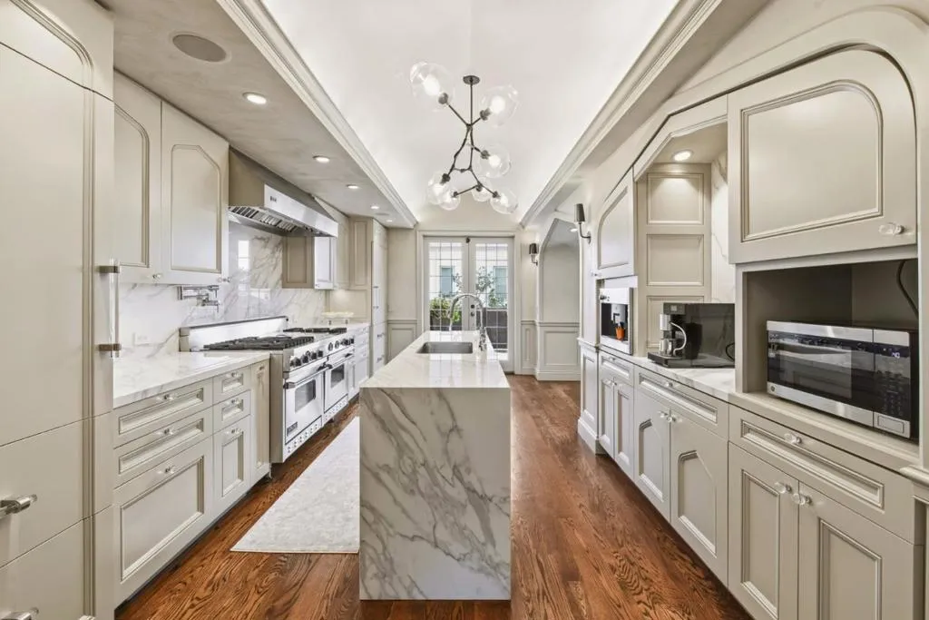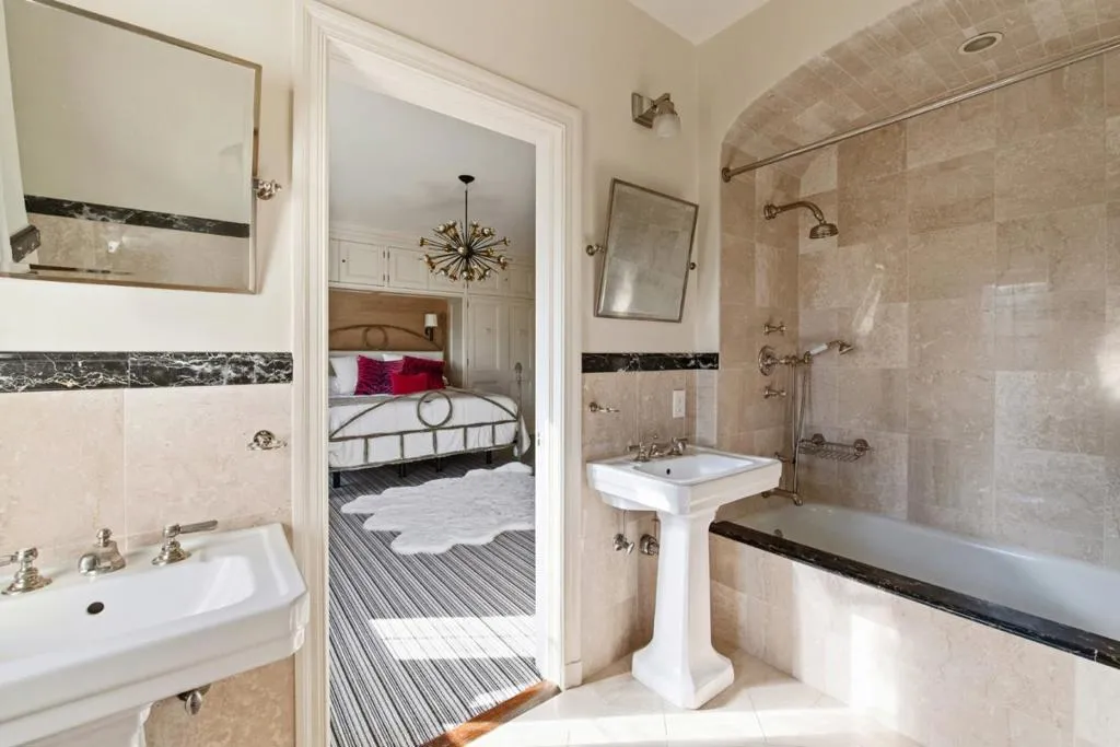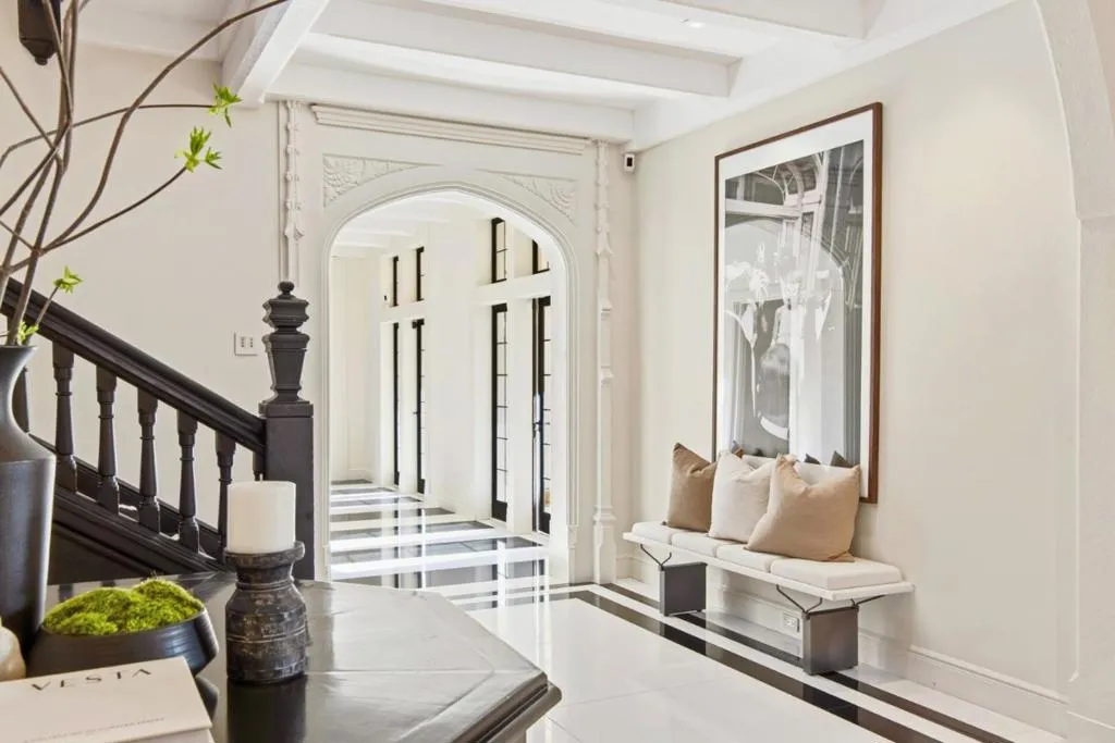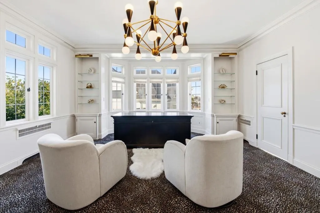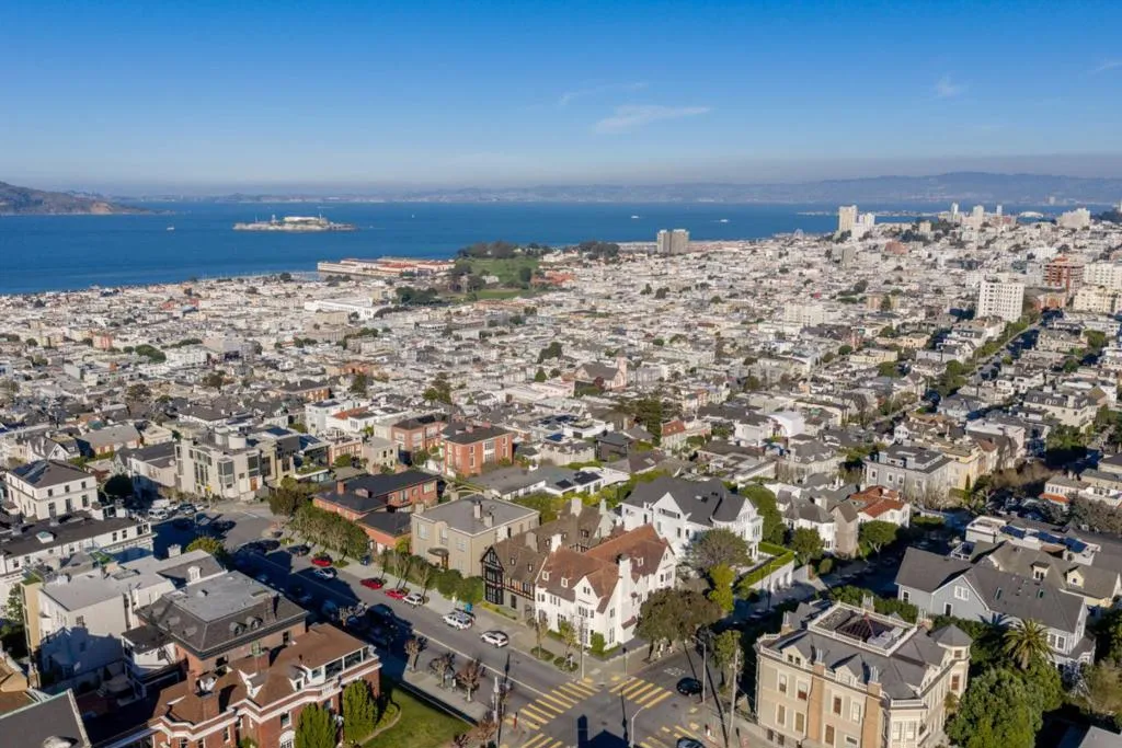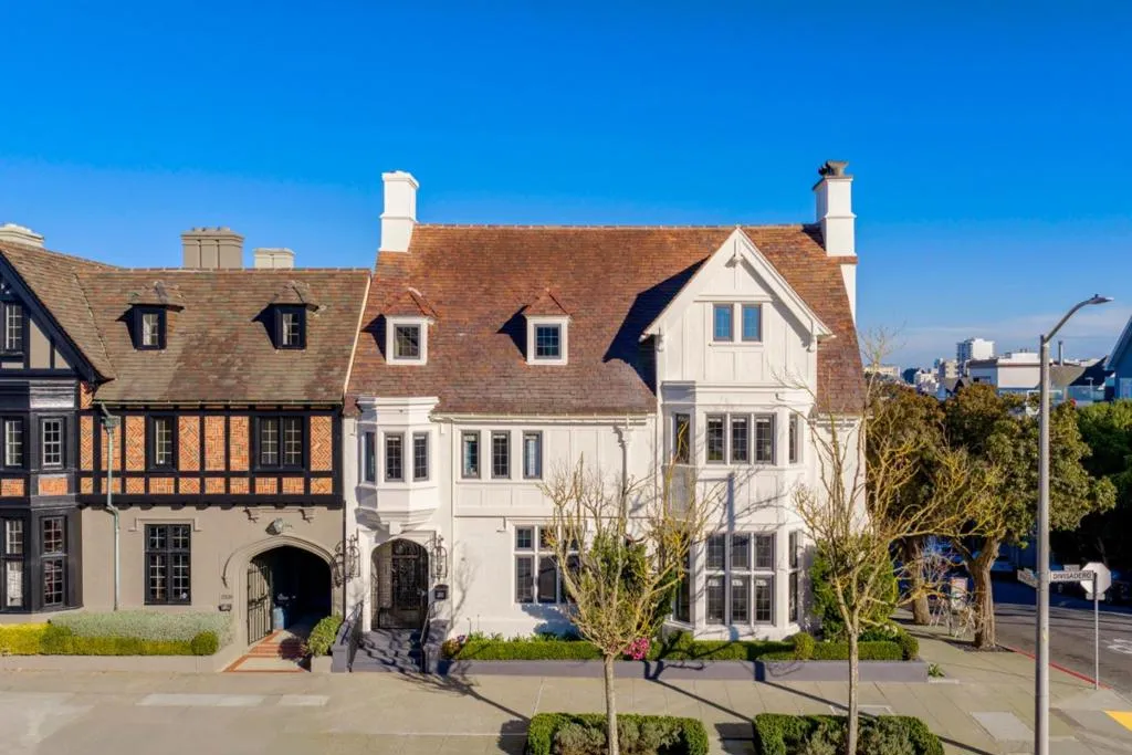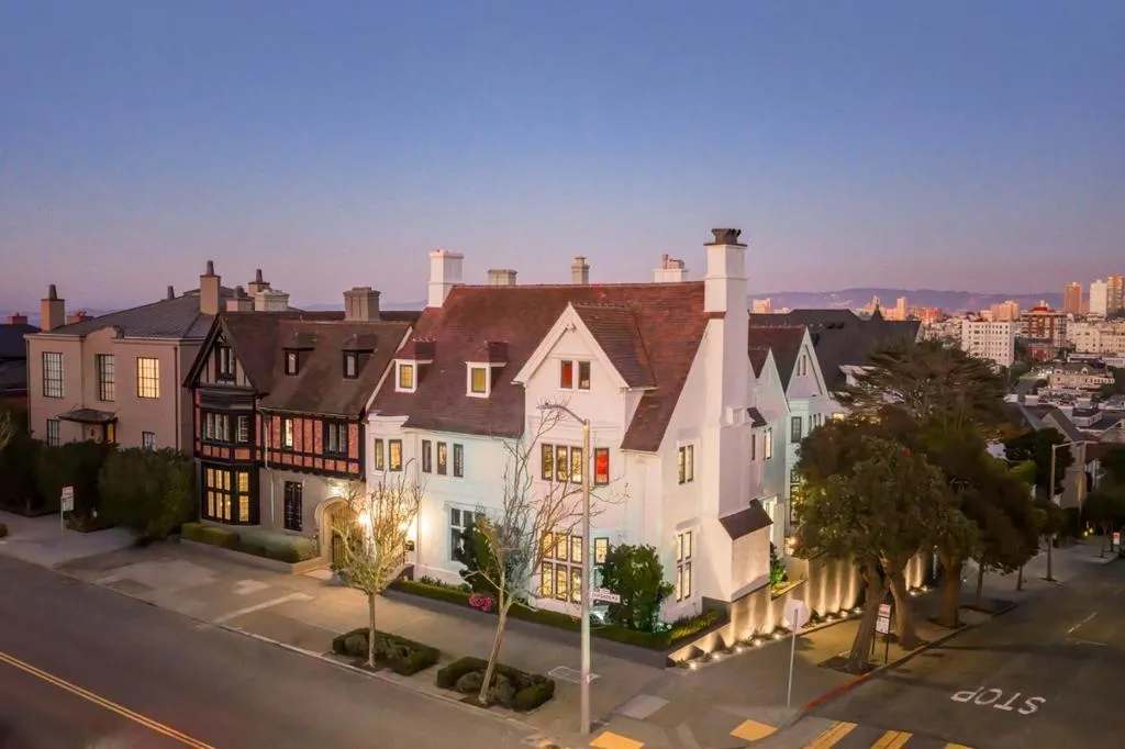Commanding a premier south-facing corner atop Pacific Heights, this stately Tudor Revival residence is defined by timeless architectural elegance. Built in 1933, the home embodies exceptional craftsmanship seamlessly blending historic pedigree with modern refinement. Showcased in the 1999 SF Decorator Showcase, the homes upper level was opened to reveal a dramatic central staircase. A 2006 renovation introduced radiant heating, a gourmet kitchen with adjoining family dining, and a private guest apartment. The main level is devoted to grand-scale living and entertaining, highlighted by soaring ceilings, exposed beams, and a sculptural carved staircase. A marble hall connects the formal rooms and courtyard. Upstairs, a single-level layout offers an expansive primary suite with sitting room and dual dressing rooms, 2 additional en-suite bedrooms, a fireplace office, & laundry w/kitchenette. The top level features a wood-paneled library, billiard room with bar, media room, and flexible gym or guest suite. A lower-level apartment offers private access. Moments from the Presidio, Alta Plaza, Lafayette Park, and the boutiques and dining of Pacific Heights, this is a rare opportunity to own a distinguished architectural estate in one of San Francisco's most prestigious enclaves.