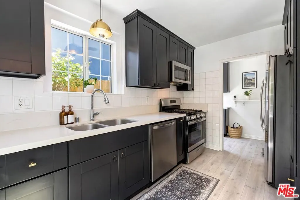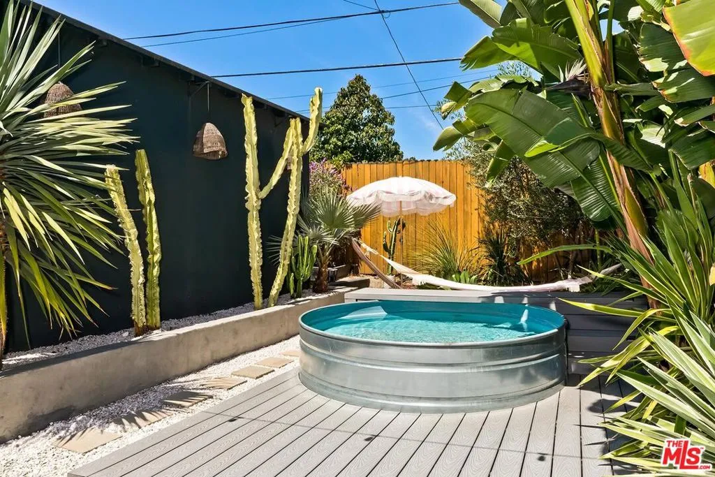 Welcome to your Frogtown hideaway - a stylish 3-bedroom, 2-bath bungalow in one of LA's most vibrant, creative enclaves. A beautifully landscaped front yard and inviting porch set the tone, leading into a light-filled living room and a thoughtfully remodeled kitchen featuring quartz countertops and stainless steel appliances. A bright and airy dining nook with a built-in banquette offers the perfect blend of comfort and style. The home has two secondary bedrooms that share a hallway bath, along with an additional powder room for guests. The primary suite opens directly to the backyard through French doors, creating seamless indoor-outdoor flow. Designed for both relaxation and entertaining, the private backyard features a tiled patio, lush greenery, string lights, and a cowboy pool - perfect for enjoying warm California days. A detached two-car garage provides flexible space for parking, storage, or potential creative use. Ideally located near the LA River bike path and just moments from Frogtown favorites like Loreto, Frogtown Brewery, Lingua Franca, and Spoke Bicycle Cafe with easy access to dining, coffee and live music. A rare opportunity to experience the best of Eastside living.