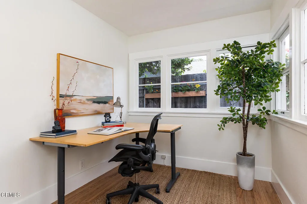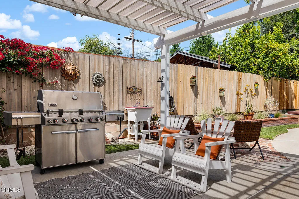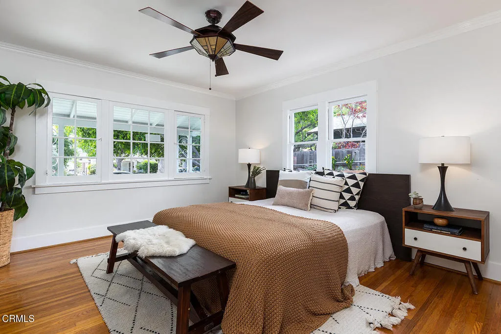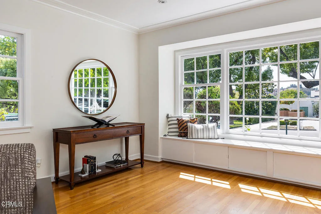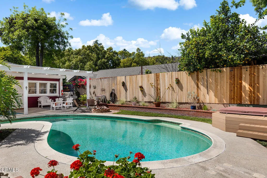 Set on one of Eagle Rock's most picturesque streets - lined with mature camphor trees and just north of Colorado Boulevard - this classic 1920 traditional bungalow offers the kind of setting and soul that's increasingly hard to find.A welcoming front porch sets the tone, leading into a home rich with original character: wood-frame windows, hardwood floors, a spacious living room anchored by a decorative fireplace, and a formal dining room with a built-in buffet. The updated kitchen blends seamlessly with the home's classic style and overlooks the backyard, while a separate laundry room adds everyday convenience.The layout offers flexibility, with two front bedrooms sharing a full hall bath, a third bedroom off the dining room, and a light-filled fourth room - currently used as a home office - lined with windows. A three-quarter bath off the laundry room serves the rear of the home.Out back, the large, flat lot unfolds into a private retreat, complete with a covered patio, pool, separate hot tub, and garden beds. A long driveway leads to a detached two-car garage with additional workshop and storage space.Lovingly cared for by its current owners since 2001, this home has been a true gathering place - host to front yard movie nights, crab boils, and years of connection within the neighborhood. Located within the sought-after Eagle Rock Elementary district and moments from the neighborhood's favorite shops and restaurants, this is a rare opportunity to step into a home that offers both character and the kind of everyday lifestyle that makes Eagle Rock so special.