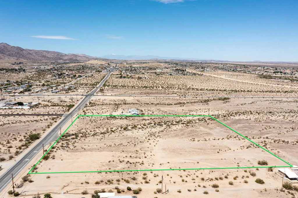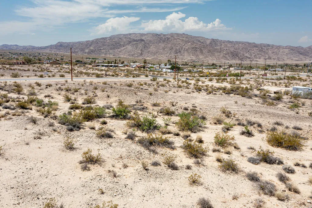 Wow 9 acres on 29 Palms Hwy! Ideal for development. Flat and usable. Zoned residential. Great potential for a Conditional Use Permit for a zoning change due to it having pavement and Hwy frontage! Close to Joshua Tree National Monument Utah Trail gate, where about 3 million tourists visit annually. Close to the Marine Base with about 12,500 active duty, 24,000 family members, & another 21,000 DOD employees & contractors. 29 Palms is experiencing a renaissance of new construction, businesses, restaurants, retail & cafes. The new Freedom Plaza Mall of 2022. In recent years we've seen new attractions such as the Tortoise Rock Casino & the 29 Palms Motorsports Complex. More celebrities, artists, & musicians are calling 29 Palms home than ever before. For a long time the area has been popular for retirees & snow birds. This is a great opportunity for an investment company to build & cash flow. Snow cap views of Mt. San Gorgonio. Amazing sunsets where the Bullion Mtns, Cleghorns, and Sheephole Mtns. often glow red in the last light of the day. Starry nights. Plenty of room for all kinds of your dream projects. Contact the city of 29 Palms Planning dept for all building questions. Power in the street and water appears to be there too, (buyer to verify). Address is not an assigned address & is for marketing purposes only. GPS: 34.13725, -116.03345 APN: 0623-211-17-0000 Don't Wait! - Call Now!