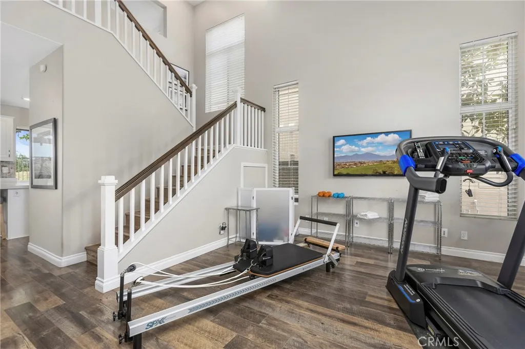 Most backyards end at the fence. This one opens onto oak canyons, ridgeline trails, protected land that will never see a rooftop. No homes behind you, just rolling green hillside as far as the sightline carries. 27 Acorn Ridge is a beautifully remodeled four-bedroom, 2.5-bath home in the Avelino neighborhood of Las Flores—1,702 square feet, two-car attached garage, owned solar panels. Step in and vaulted ceilings lift the living room with natural light running wall to wall. The remodeled kitchen anchors the main level: quartz countertops, stainless appliances, gas range, walk-in pantry with extra storage, all open to the dining area and a family room with a fireplace surround worth a second look. New guest bath. New flooring through the upstairs. Two of the bedrooms currently run as offices—can work just as well as a home gym, additional guest rooms, or playroom the day you decide. Upstairs, the primary bedroom has its own en suite, and the secondary bedrooms face open space. The back patio is where this house lives: fountain, pastoral views across the canyon, an outdoor dining setup with nothing but hillside and sky behind it. Whole-house fan, tankless water heater, full PEX re-pipe, paid solar. Washer, dryer convey with the home. Las Flores Elementary is rated 10/10 and less than a mile away. Las Flores Middle 8/10. Tesoro High 9/10. Three schools, all Capistrano Unified, all close enough that the morning commute is a bike ride. Trails start where the neighborhood ends. Community pool and park just down the street. The views aren't going anywhere. Neither is the life you'll build around them.