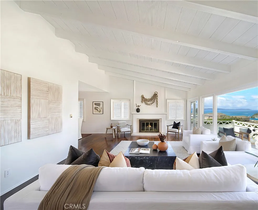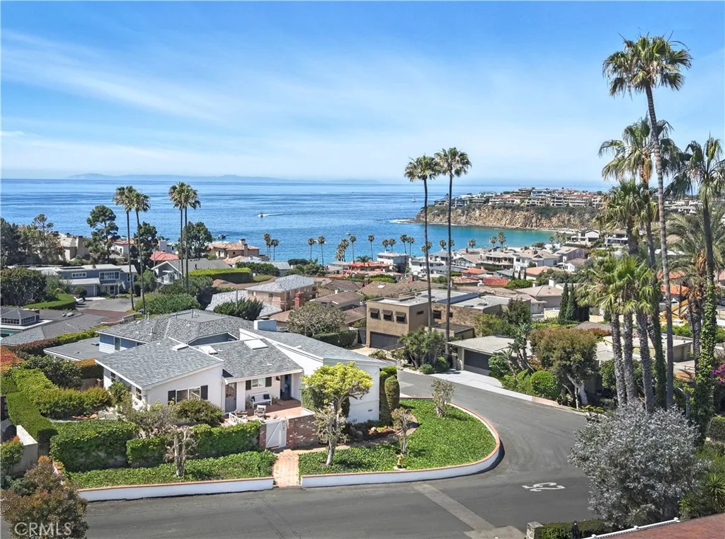Rare, once in a generation jewel, in North Laguna's Hidden Gem neighborhood – For 40 years one could only dream of an opportunity to discover the enchantment afforded by this premium corner lot property; a location as unique as the view. The experience of being cozily nestled in the peaceful circle of lower Hillcrest & Louise, while simultaneously being gently elevated on a spacious corner lot overlooking the bay, is one that mere words fail to capture. The neighborhood itself has a grounded tranquility that is cherished by its residents. While the scene from this particular home is one of the most exciting and dynamic views in all of Laguna. Let yourself be mesmerized by the bright emerald colors sparkling in the bay while the dolphins entertain your guests. Enjoy the whitewater splashing against the rocks, and in the summer, watch the boats slowly fill the bay. In the winter months your view of Emerald Canyon turns a deep green, then yellow and purple wildflowers grace the rolling hills each spring. Delight in the breathtaking sunsets year-round as this home features what is considered the “ideal sunset orientation" with a primary view window extending from south of Catalina to north of Abalone Point. Not to be outshined by the view, the sweetness and warmth of the home and grounds themselves are the perfect complement to this special location. Carefully updated, this mid-century home offers the comfort and ease of modern single level living without sacrificing the soulful character of Laguna. Vaulted high ceilings in the great room and every bedroom/office coupled with plenty of natural light produce a bright and airy feel throughout the home. The ample corner lot also provides multiple private outdoor spaces. Whether playing, relaxing, entertaining or gardening, you and your guests will be soothed by the lush patios boasting multiple mature fruit bearing trees. The covered potting shed tenderly hugged by perfectly manicured natural growth is a gardener's fantasy. The spacious ocean view deck is perfect for dining al fresco or just soaking in the natural artistry of the picturesque sea and hills. To complete this gem of a home, the property features an extra wide garage for two cars & two golf carts plus workshop. The ample driveway adds to the abundance of off-street parking. The short and easy walk to North Laguna's finest Bays and Coves truly makes this a dream property and for the first time in 40 years, a new dream will become a cherished reality.