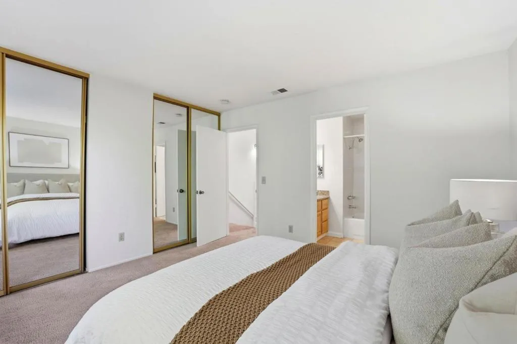 Beautiful end-unit townhouse in the desirable Villa Madeira community, offering privacy, natural light, and a functional two-story layout in the heart of Santa Clara. This well-designed property features approximately 1,125 sq ft of living space with two spacious bedroom suites upstairs, each with its own private bathroom. The main level features an open living and dining area with a cozy fireplace and sliding glass door that opens to a private patioperfect for relaxing or entertaining. The kitchen provides ample cabinetry and workspace with convenient flow to the dining area. A half bath and in-unit laundry add everyday convenience. As an end unit, the home benefits from additional windows that bring in abundant natural light while enhancing privacy within the community. The Villa Madeira complex offers well-maintained grounds, gated access, pool and spa amenities, and assigned parking. Ideally located near Santa Clara University, Rivermark Village, Santa Clara Square, and major tech campuses including Nvidia, Apple, Google, and Intel. Easy access to Highways 101, 880, Central Expressway, and Lawrence Expressway makes commuting throughout Silicon Valley convenient. Excellent opportunity for first-time buyers, investors, or those seeking a centrally located Silicon Valley home.