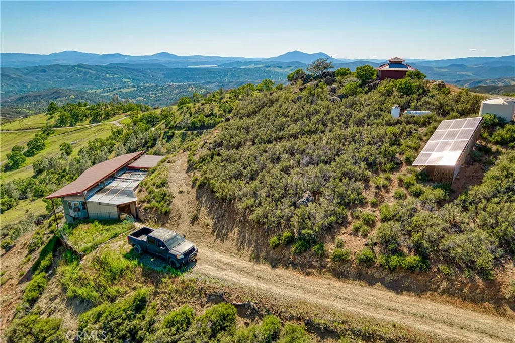 Two Homes, Two Outbuildings — One Extraordinary Opportunity Welcome to a truly rare offering: two homes and two versatile outbuildings included in one incredible property, all set on 20 private acres with breathtaking panoramic views. From sunrise to sunset, experience sweeping vistas of Mount Konocti, Peek-A-Boo Clear Lake, and Snow Mountain — a setting that feels like you’re living above it all. Main Residence Perfectly positioned at the top of the property, the main home showcases an open-concept design with expansive windows that frame the stunning views from every window. This energy-efficient home sits above a spacious two-car garage with approximately 700 sq ft footprint, including a workshop area and half bath — offering both functionality and flexibility. Second Home Tucked privately toward the back of the property, the second residence feels like its own secluded retreat. The approximately 650 sq ft , 2006 mobile home is surrounded by nature and designed for relaxation, featuring wraparound decks and unobstructed views, while remaining close enough to the main home for convenience yet hidden enough for complete privacy. This property is designed for both lifestyle and utility: Outbuilding One A substantial 1,200 sq ft metal structure with concrete flooring and two roll-up doors, perfect for storing equipment, recreational toys, or operating a workshop with easy access. Outbuilding Two A truly one-of-a-kind space of approximately 150 sq ft, constructed with solid concrete walls for exceptional privacy and durability. This unique structure includes a built-in fire feature, water element, architectural rooftop design, electricity, and propane heat. Ideal as a meditation space, art studio, creative retreat, or secure bunker-style room, it is built like a fortress with endless possibilities. The Property Set within a quiet, rural, and highly private community, this homestead offers seclusion without compromise. The surrounding neighborhood is spacious and low-impact, with minimal traffic — primarily only neighboring landowners accessing their own estates. A light-touch HOA/POA helps preserve the integrity of the area while maintaining a peaceful, unrestricted lifestyle. This is more than a property — it’s a multi-use homestead with income potential, privacy, and unmatched views, offering space to live, create, and thrive.