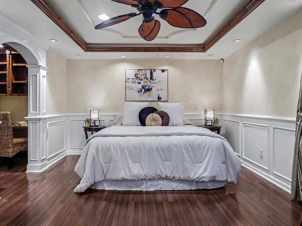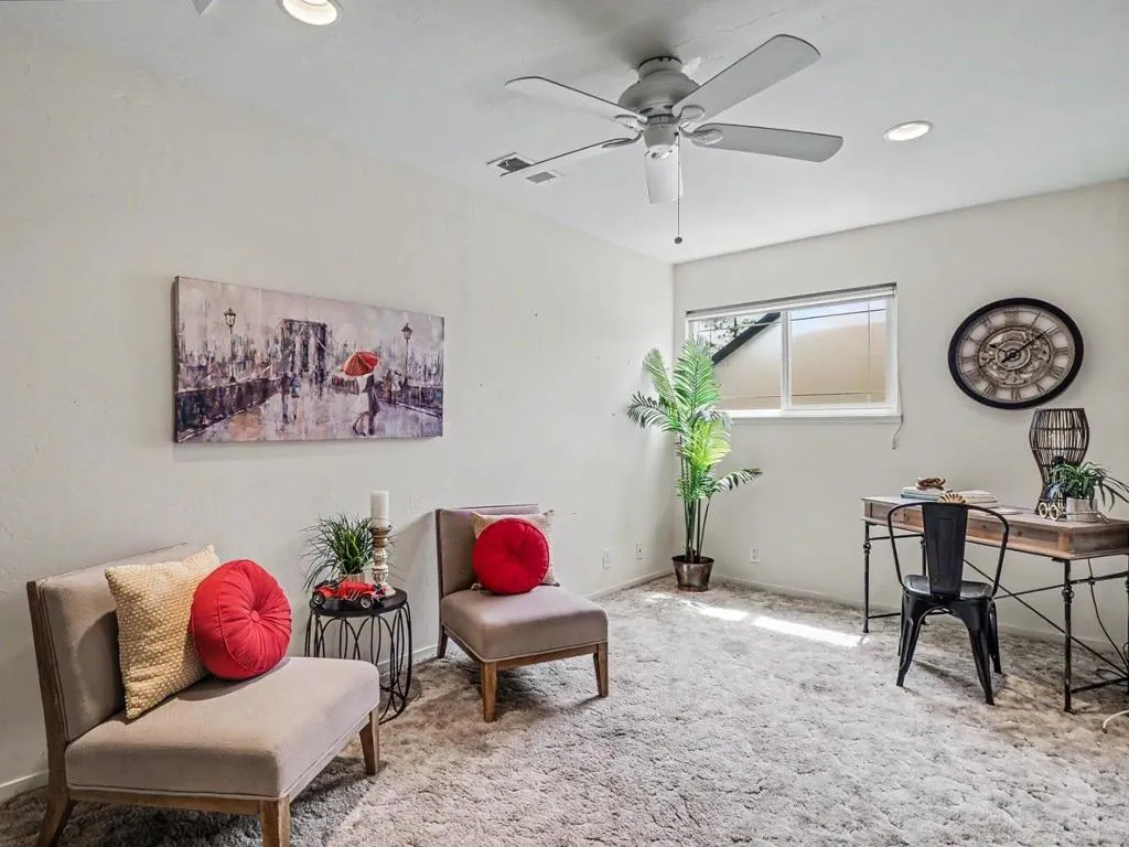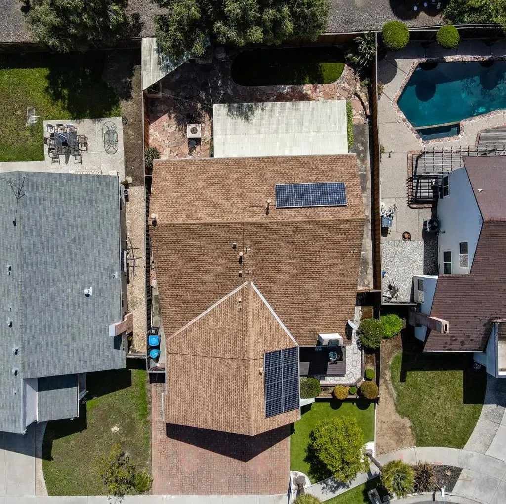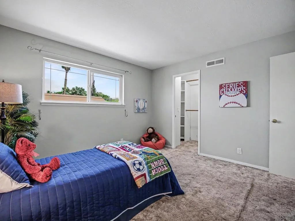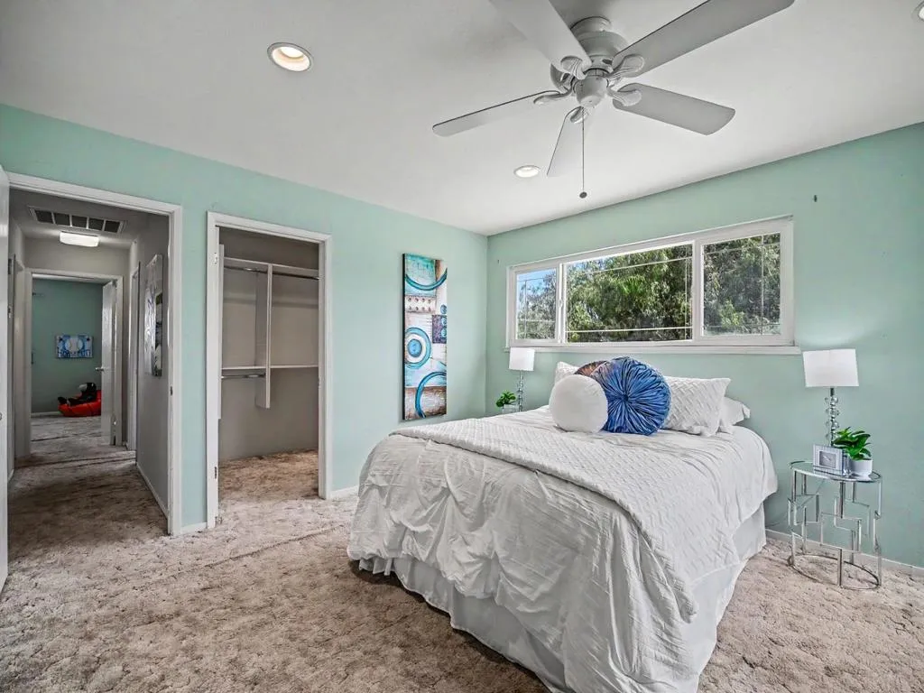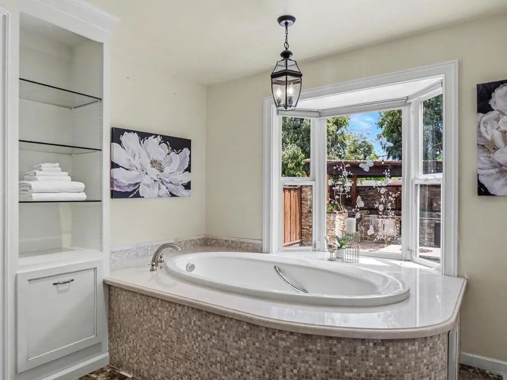 Beautifully updated home on a quiet San Jose court offering 4 bedrooms plus a 5th flexible den. The main-level primary suite features oversized walk-in closets with custom cabinetry, built-in desk, ironing board cabinet, and a remodeled bath with jetted tub, stall shower, and dual sinks. The remodeled kitchen includes granite countertops, stainless steel appliances, gas range, and custom cabinetry with pull-out organizers, plus a butlers pantry with sink. Enjoy laminate flooring, custom molding, built-ins, dual-pane windows, and fully paid solar. Lots of extra storage space in the accessible attic. Low-maintenance backyard with deck, artificial lawn, built-in BBQ center, and fire pit. Small yearly HOA is for the community Cabana pool. You will want to see this home in person before it's gone.