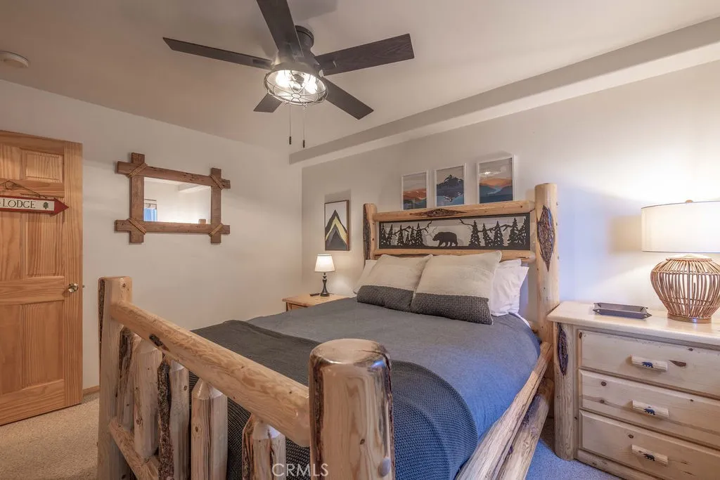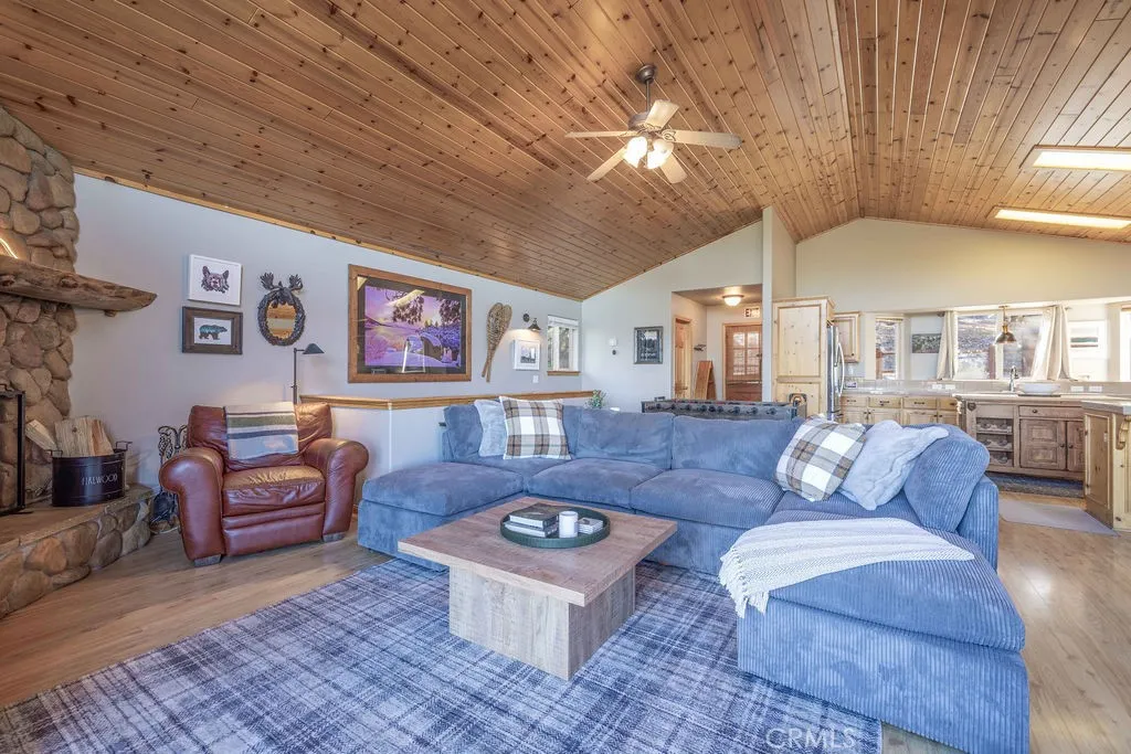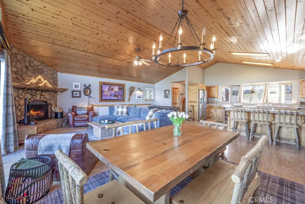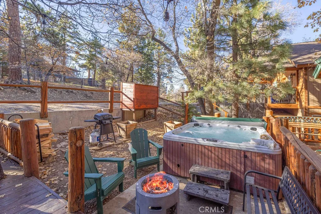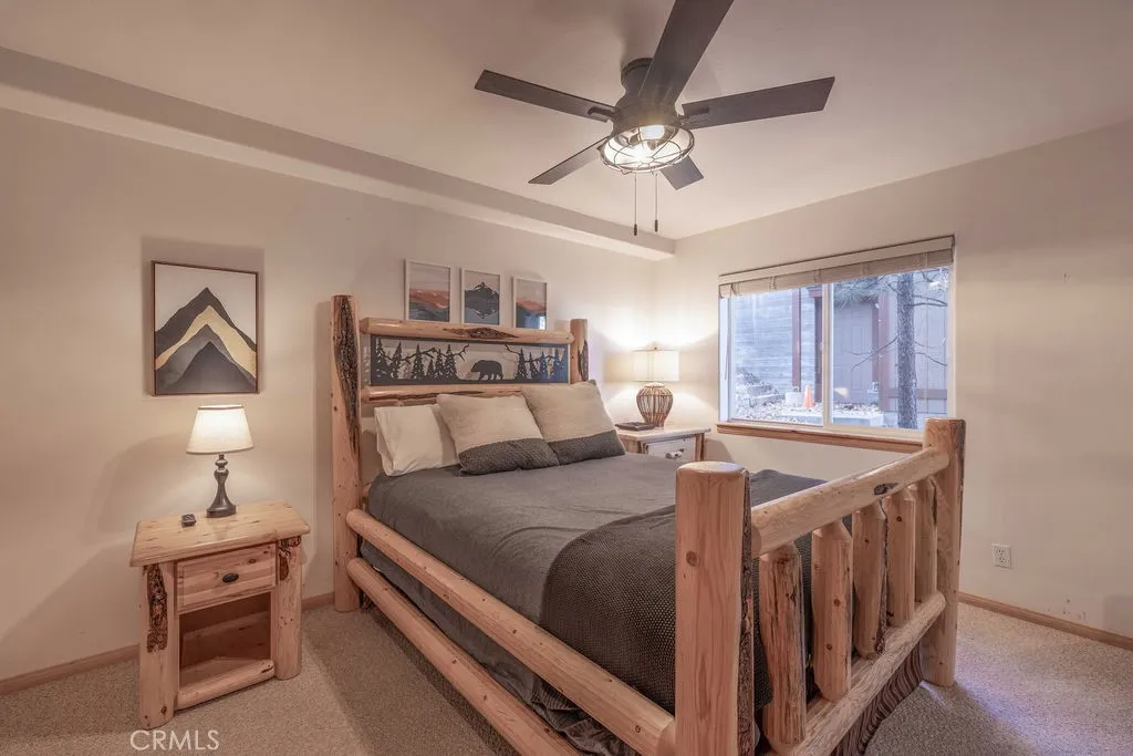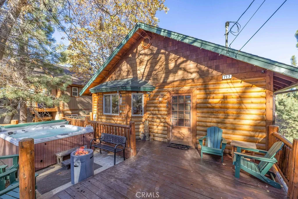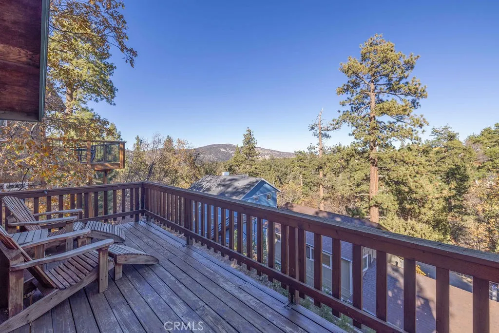 Perched in the desirable Moonridge area of Big Bear, this gem offers a serene mountain retreat with breathtaking views of the surrounding treetops and majestic peaks! Perfect for outdoor enthusiasts and nature lovers, this oasis is just a few minutes drive to both Bear ski resorts, the lake and the vibrant Moonridge Corridor with easy access to local attractions and scenic hiking trails. Once inside, you’ll discover a finely designed open floor plan featuring wood tongue-and-groove vaulted ceilings and floor-to-ceiling glass, bathing the main entry level with gorgeous natural light. The spacious great room is anchored by a rock fireplace, which invites everyone for cozy evenings by the fire. The kitchen will dazzle any level chef with new stainless appliances, ample cabinetry, generous counter space, a center island, windows and lighting that immerse the space in warm light. Downstairs you’ll find 3 bedrooms, including a serene primary with en suite bathroom. Each room invites you to the space for rest and relaxation, and offers its own fan for added comfort. Outside, a large front patio is adorned with string lights and a hot tub that begs for leisurely evenings under the stars, while the expansive back balcony offers multiple lounge areas to take in the stunning mountain views. This move-in ready retreat is not one to miss and priced to move for buyers or investors alike. Schedule your showing today to make memories immediately!
