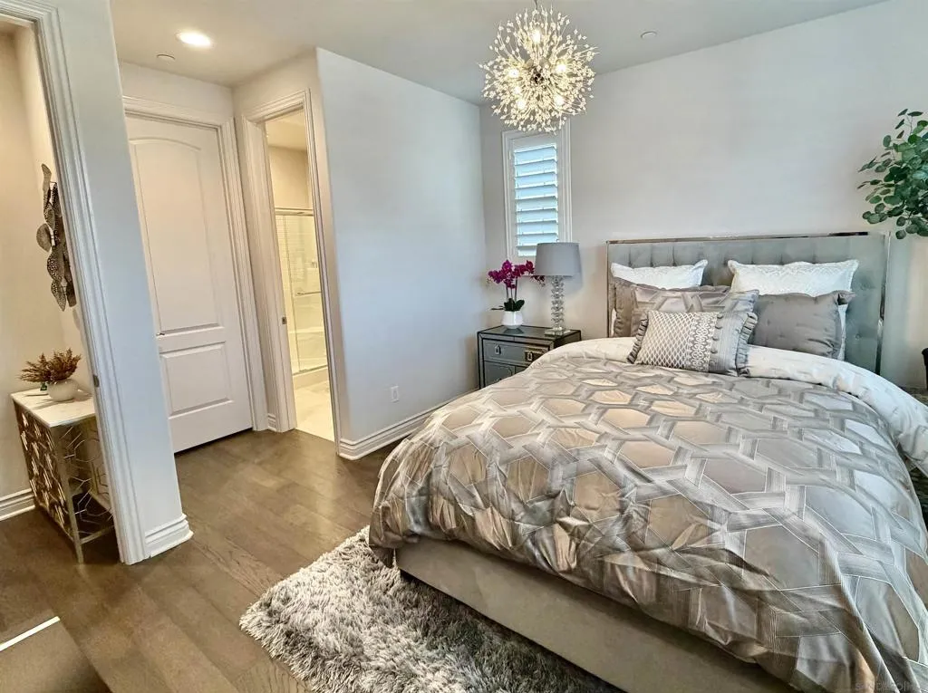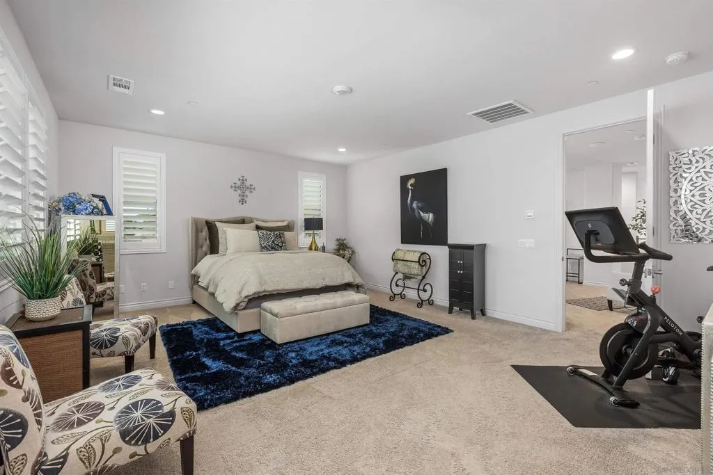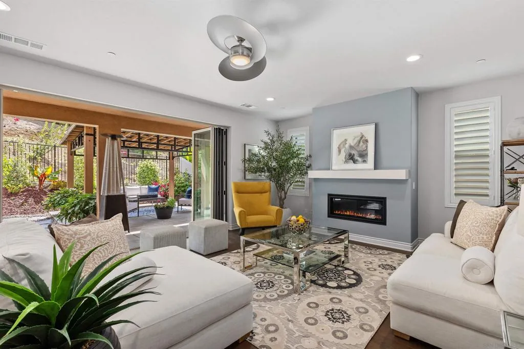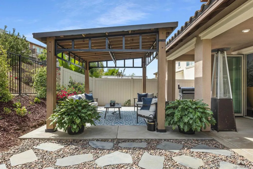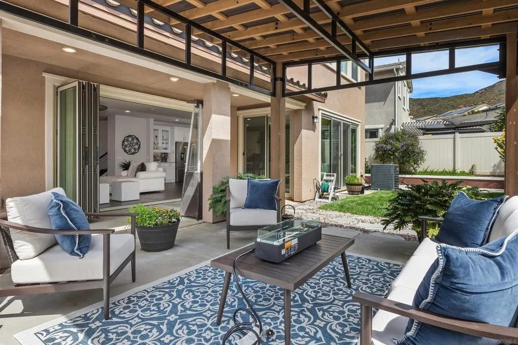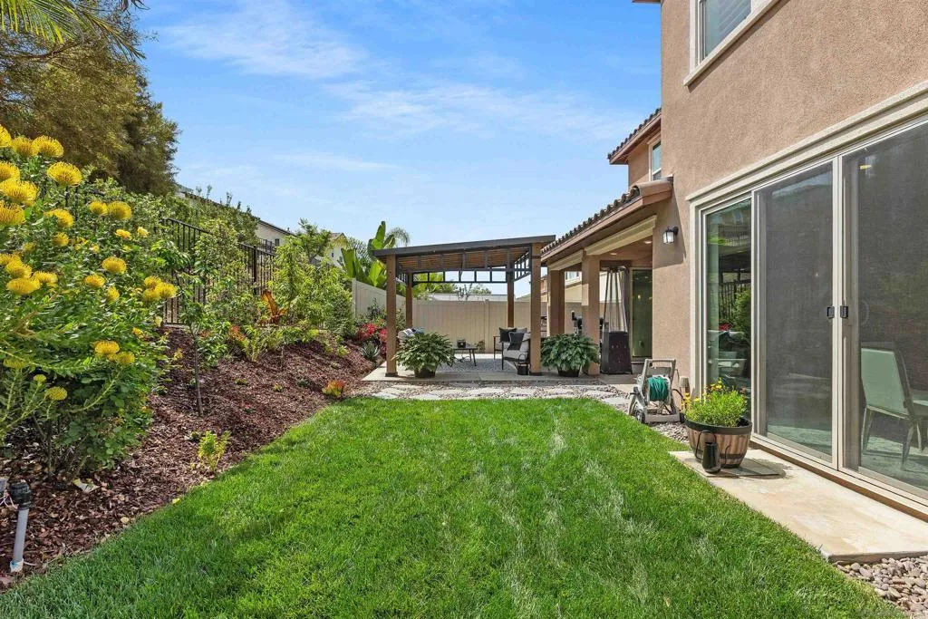Welcome to this beautifully upgraded two-story residence located in the highly desirable community of Horse Creek Ridge. Tucked away on a quiet cul-de-sac, this 2020-built home offers approximately 3,719 sq. ft. of thoughtfully designed interior blending modern luxury, comfort, and energy efficiency throughout. This spacious 4-bedroom, 3.5-bath home includes a highly sought-after first-floor ensuite bedroom with a full bathroom, perfect for guests or multi-generational living. The home features soaring 9-foot ceilings, 8-foot doors, engineered wood flooring on the first floor, and an open-concept layout centered around a stunning great room with fireplace. Stacked bifold doors extend the living space seamlessly to the California room, creating an ideal indoor-outdoor entertaining experience. The chef’s kitchen is designed for both elegance and function, showcasing a large center island with granite slab countertops and seating for up to seven. Additional features include GE Profile stainless steel appliances, a 5-burner gas cooktop, built-in oven, microwave, dishwasher with front controls, porcelain kitchen sink, birch cabinets, full designer backsplash, under-cabinet lighting, recessed lighting throughout, a spacious walk-in pantry, bright breakfast nook that leads to the backyard through center open doors . This space truly serves as the heart of the home. Upstairs, the primary suite offers a luxurious retreat highlighted by a massive 17’ x 16’ spa-inspired bathroom.The primary bath features a large walk-in shower with built-in bench, oversized soaking tub, dual vanity. With framed bathroom mirrors, and refined designer finishes that create a true spa-like experience. You must come see the huge primary closet! Additional bedrooms are well-appointed with upgraded carpet. The expansive loft includes built-in ceiling surround sound speakers, making it an ideal media room, lounge, or secondary living space. Additional interior upgrades include a stunning upgraded staircase, French doors leading to the first-floor office, pre-wiring for ceiling fans, central heating and air conditioning, programmable thermostat, fire sprinklers throughout, and a comprehensive security system for peace of mind. Additional thoughtful upgrades include a laundry room with utility sink, tankless water heater, energy efficient windows, 5-inch baseboards, and a three-car garage equipped with a 220V outlet for EV charging. The home’s layout is both functional and future-ready, offering convenience and flexibility for modern living. The exterior features a beautifully enhanced backyard with a gazebo, mandarin, peach and cherry trees. The California room extends the living space outdoors, perfect for year round enjoyment and entertaining. Residents of Horse Creek Ridge enjoy exceptional resort-style amenities, including: • Low HOA monthly fee of $205.00, Club house with covered patio, outdoor showers, restrooms, indoor/outdoor fireplace, and full kitchen • Two swimming pools, including one with a dedicated toddler splash area • Pool deck with shade trellis, chaise lounges, tables, and seating areas • Raised dining patio with built-in gas BBQ grills • Basketball court • Eight community parks, including an 8.5-acre San Diego County Sports Park and an additional county park • Night security patrol throughout the community • Walking/horse trails This exceptional home delivers the perfect combination of luxury finishes, thoughtful upgrades, energy efficiency, and resort-style community living in one of North County San Diego’s most sought after neighborhoods located in Fallbrook. Schedule an appointment today to view this fablous home.