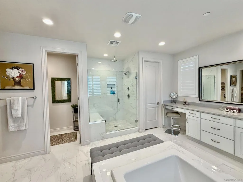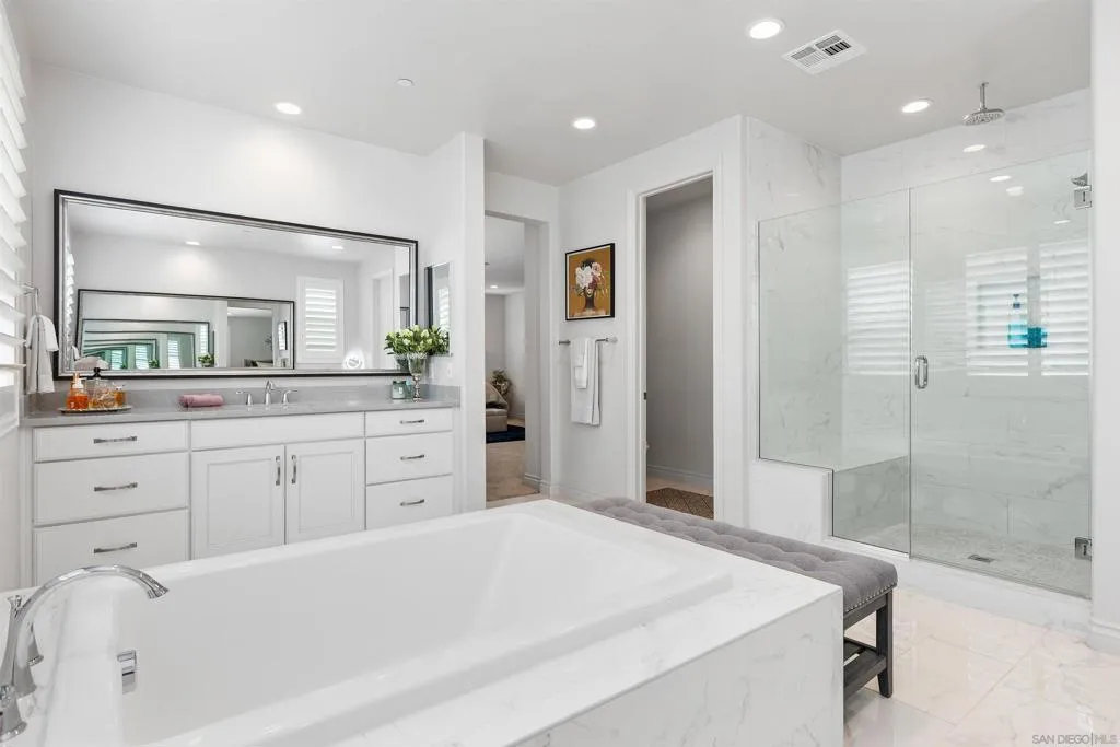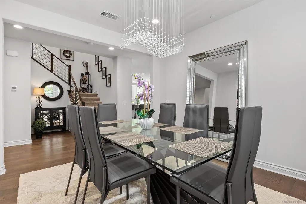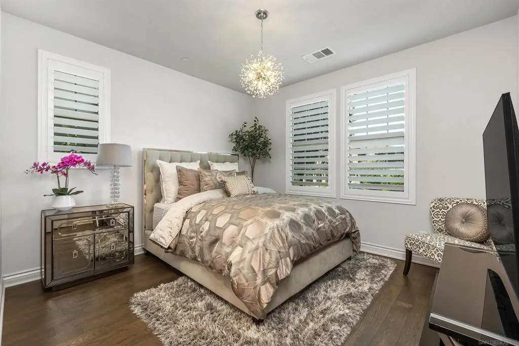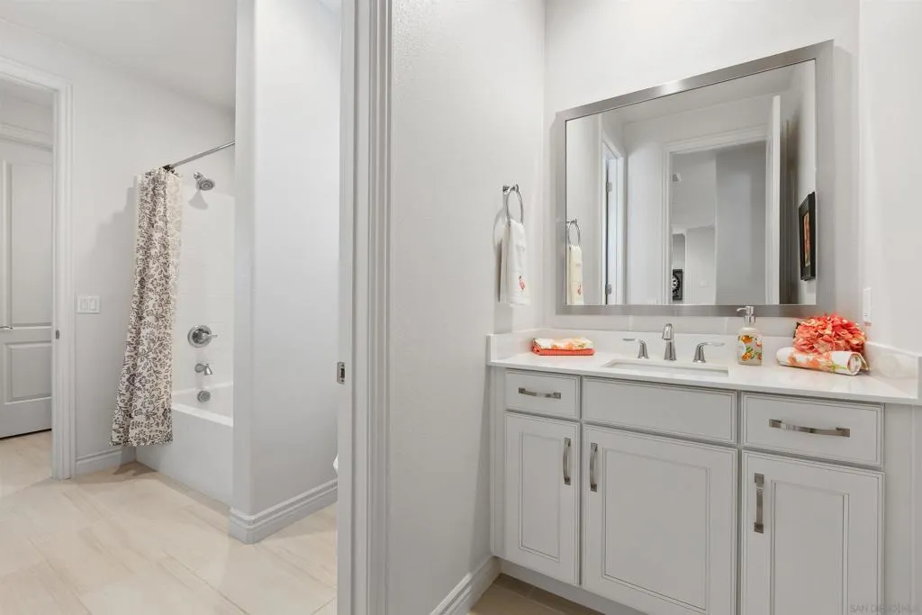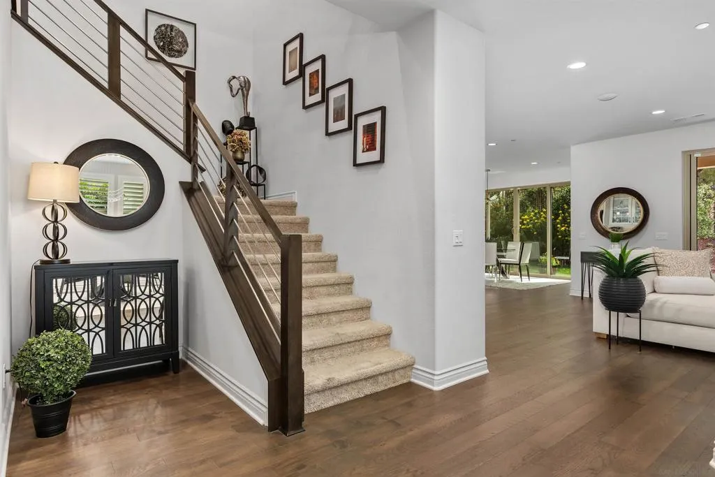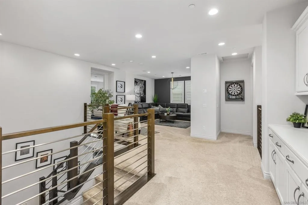 Welcome to this beautifully upgraded two-story residence located in the highly desirable community of Horse Creek Ridge. Tucked away on a quiet cul-de-sac, this 2020-built home offers approximately 3,719 sq. ft. of thoughtfully designed interior blending modern luxury, comfort, and energy efficiency throughout. This spacious 4-bedroom, 3.5-bath home includes a highly sought-after first-floor ensuite bedroom with a full bathroom, perfect for guests or multi-generational living. The home features soaring 9-foot ceilings, 8-foot doors, engineered wood flooring on the first floor, and an open-concept layout centered around a stunning great room with fireplace. Stacked bifold doors extend the living space seamlessly to the California room, creating an ideal indoor-outdoor entertaining experience. The chef’s kitchen is designed for both elegance and function, showcasing a large center island with granite slab countertops and seating for up to seven. Additional features include GE Profile stainless steel appliances, a 5-burner gas cooktop, built-in oven, microwave, dishwasher with front controls, porcelain kitchen sink, birch cabinets, full designer backsplash, under-cabinet lighting, recessed lighting throughout, a spacious walk-in pantry, bright breakfast nook that leads to the backyard through center open doors . This space truly serves as the heart of the home. Upstairs, the primary suite offers a luxurious retreat highlighted by a massive 17’ x 16’ spa-inspired bathroom.The primary bath features a large walk-in shower with built-in bench, oversized soaking tub, dual vanity. With framed bathroom mirrors, and refined designer finishes that create a true spa-like experience. You must come see the huge primary closet! Additional bedrooms are well-appointed with upgraded carpet. The expansive loft includes built-in ceiling surround sound speakers, making it an ideal media room, lounge, or secondary living space. Additional interior upgrades include a stunning upgraded staircase, French doors leading to the first-floor office, pre-wiring for ceiling fans, central heating and air conditioning, programmable thermostat, fire sprinklers throughout, and a comprehensive security system for peace of mind. Additional thoughtful upgrades include a laundry room with utility sink, tankless water heater, energy efficient windows, 5-inch baseboards, and a three-car garage equipped with a 220V outlet for EV charging. The home’s layout is both functional and future-ready, offering convenience and flexibility for modern living. The exterior features a beautifully enhanced backyard with a gazebo, mandarin, peach and cherry trees. The California room extends the living space outdoors, perfect for year round enjoyment and entertaining. Residents of Horse Creek Ridge enjoy exceptional resort-style amenities, including: • Low HOA monthly fee of $205.00, Club house with covered patio, outdoor showers, restrooms, indoor/outdoor fireplace, and full kitchen • Two swimming pools, including one with a dedicated toddler splash area • Pool deck with shade trellis, chaise lounges, tables, and seating areas • Raised dining patio with built-in gas BBQ grills • Basketball court • Eight community parks, including an 8.5-acre San Diego County Sports Park and an additional county park • Night security patrol throughout the community • Walking/horse trails This exceptional home delivers the perfect combination of luxury finishes, thoughtful upgrades, energy efficiency, and resort-style community living in one of North County San Diego’s most sought after neighborhoods located in Fallbrook. Schedule an appointment today to view this fablous home.