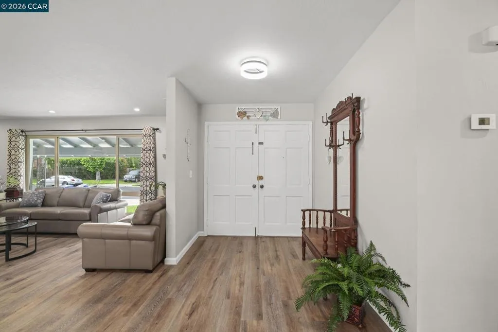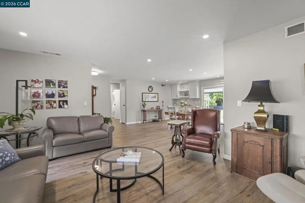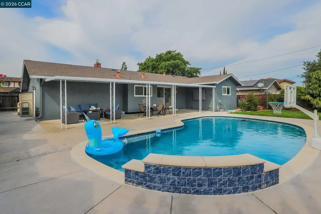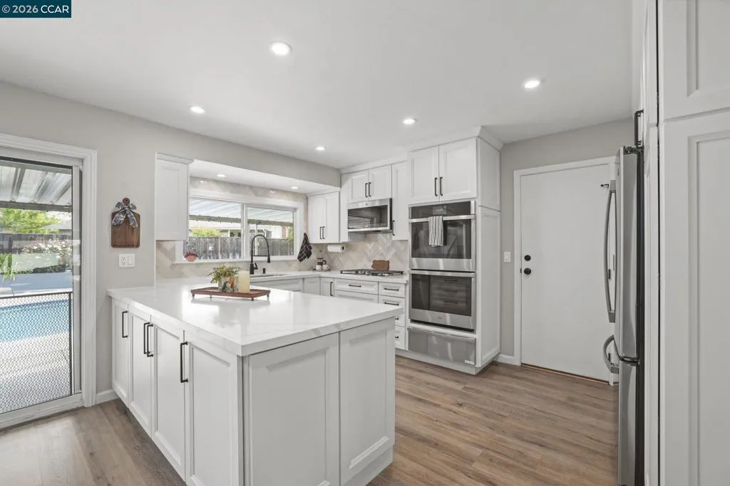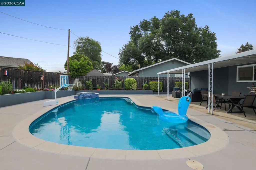 Step into this beautifully updated 3-bed, 2-bath home featuring an open floor plan for modern living and effortless entertaining. The heart of the home is a stunning, newly renovated kitchen featuring a gas stove, double ovens, a warming drawer, and 2spacious pantries with pull out shelves, perfect for both everyday living and entertaining. Enjoy seamless flow with durable LVP flooring throughout, complemented by dual-pane windows that bring in natural light while enhancing energy efficiency. The inviting living space is anchored by a cozy gas insert fireplace, creating a warm and welcoming atmosphere. Solar adds value and helps reduce energy costs. A picturesque kitchen window overlooks your private backyard retreat, complete with a recently resurfaced pool, tranquil waterfall feature, and lush landscaping. Mature fruit trees and vibrant, established flowers create a serene, garden-like setting ideal for relaxing or hosting gatherings. This home offers the perfect blend of thoughtful upgrades, energy efficiency, and outdoor beauty—an exceptional opportunity you won’t want to miss.