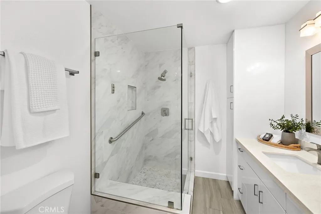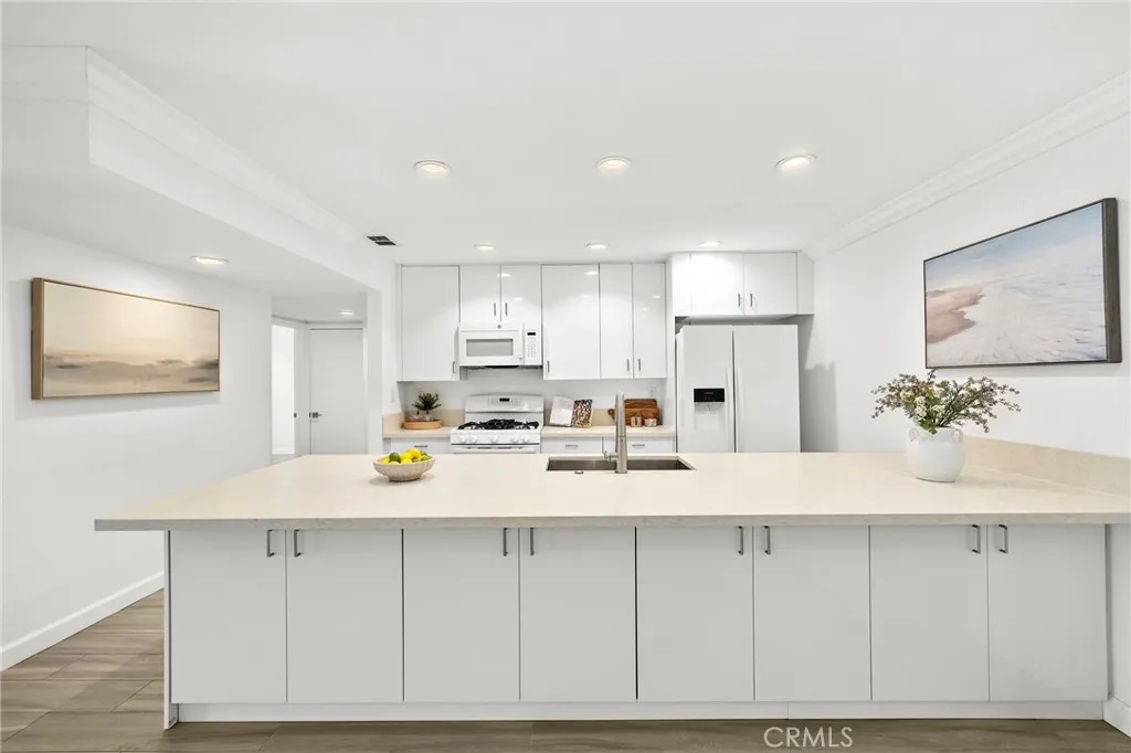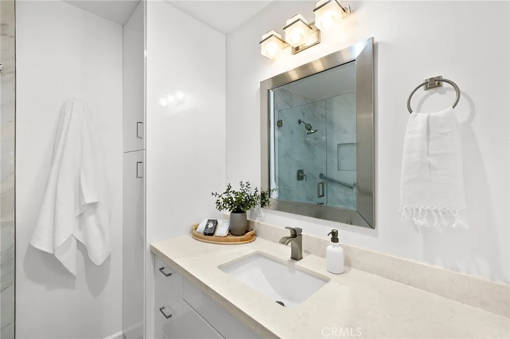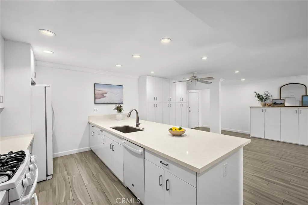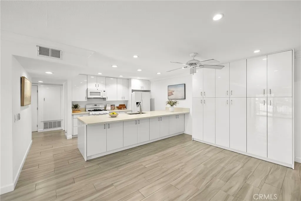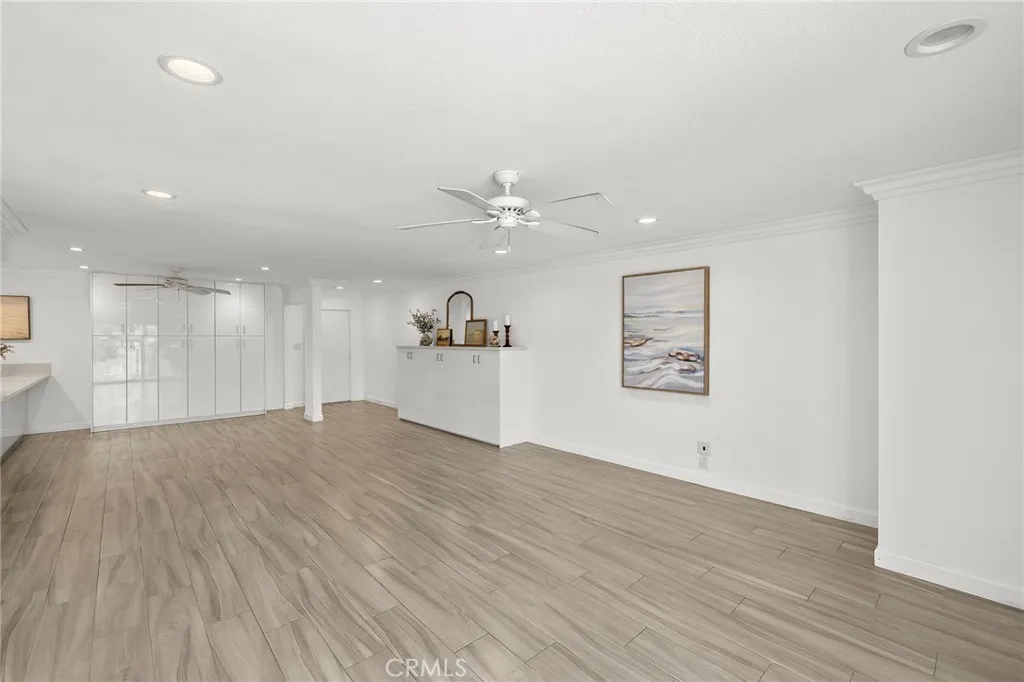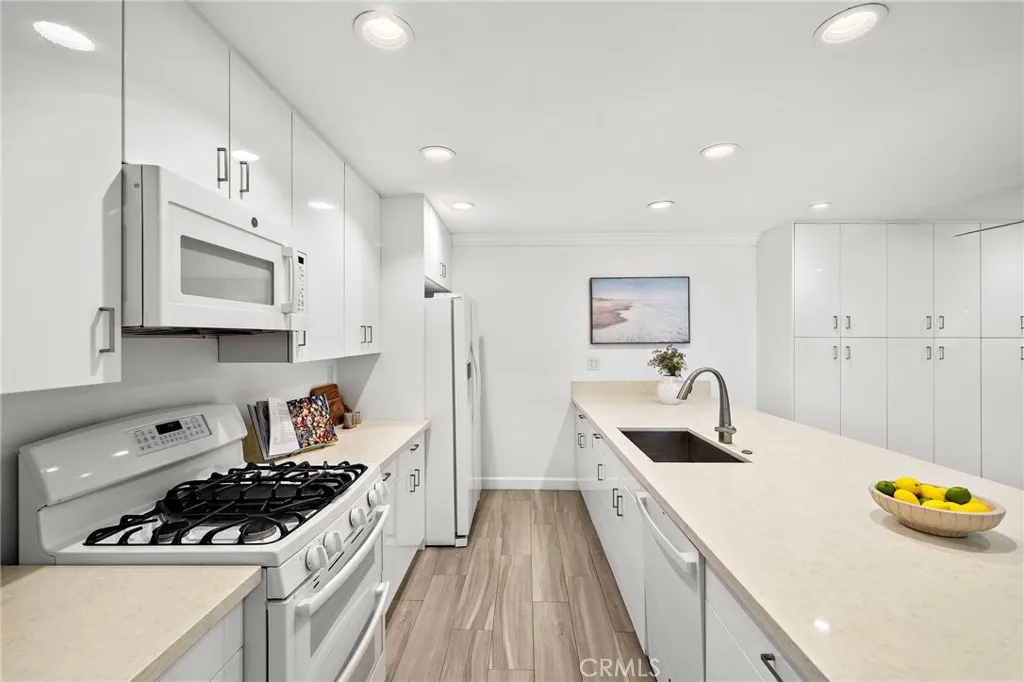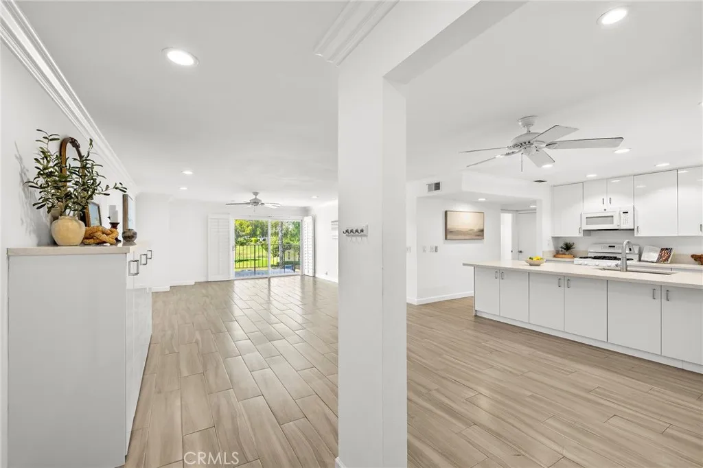 Top-floor living in Ocean Fairways with the kind of views and updates that rarely come available. Set on the penthouse level with no one above, this remodeled two-bedroom, two-bath residence offers 1,326 square feet of single-level living with sweeping views of the San Clemente Municipal Golf Course, rolling hills, city lights, Catalina Island, and the ocean beyond. Large windows and a private covered balcony bring in natural light and make the most of the coastal setting. Inside, the open living area connects seamlessly to the dining space and upgraded kitchen, creating an easy everyday layout. Quartz countertops, modern cabinetry, and a large center island with added storage anchor the kitchen, while wood-look tile flooring, crown molding, plantation shutters, and triple-pane windows carry throughout the home. Both bedrooms offer comfortable proportions and generous storage. The primary suite includes an updated bathroom with a large custom-tiled walk-in shower, while the secondary bathroom has also been remodeled with matching quality and function. A dedicated interior laundry area adds convenience. Ocean Fairways is a gated community with amenities that include pool, spa, tennis courts, fitness center, sauna, clubhouse, and secure building access. HOA dues cover several major ownership expenses, adding strong day-to-day value. The location is one of the community’s biggest draws. Positioned directly across from the San Clemente Municipal Golf Course, the home is also just minutes from Calafia Beach Park, Downtown San Clemente dining and shopping, coastal trails, and local beaches. The home includes one garage parking space with storage, plus one additional space in the private lot.