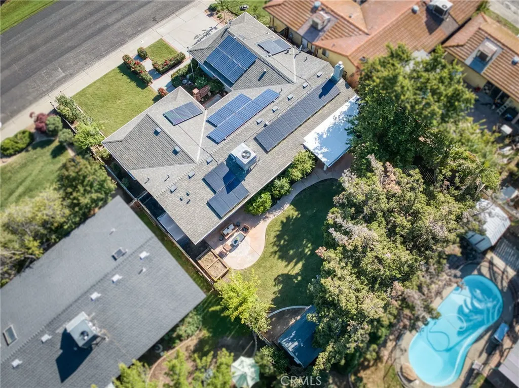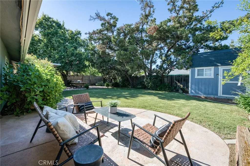 Remarks Perfectly located near Downtown Clovis, this beautifully maintained home offers inviting indoor-outdoor living, thoughtful upgrades, and a serene, landscaped setting. Enjoy multiple patio spaces for relaxing or entertaining, energy-efficient features, and well-cared-for major systemsmaking this a move-in-ready opportunity in a highly convenient neighborhood. Prime location: Walking distance to Downtown Clovis, the bike/walking trail, shopping, and near local schools. Tranquil landscaping: Mature trees, flowers, hedges, and planting beds create a peaceful, private feel. Covered back patio: 3-year-old metal cover with lighting, ceiling fans, and power receptacles; shaded by treesideal for gatherings and parties. Two additional patios: Quiet spaces off the living room (slider) and the primary bedroom (French door). Roof updates: Ridge caps replaced, Roof Max coating applied, and gutter guards added within the last year. Fresh exterior: Tex-Cote exterior coating is approximately 1 year old. Gated front courtyard: Serene patio area with fountain. Upgraded Tuff Shed: 8x10, insulated, with ceiling fan/light, A/C, shop lights, and plenty of outlets. HVAC & water heater maintenance: A/C is approximately 5 years old and upgraded with mold/mildew protection; A/C and hot water tank continuously maintained by Allbritton Plumbing. Solar: Installed for energy efficiency (half owned; half PPA through Sunrun). Water treatment: Combination whole-house system plus under-sink reverse osmosis. Security: Installed security system for the house and garage. Irrigation: Front and back sprinklers controlled from the garage, plus individual nozzles for the entry courtyard planters.