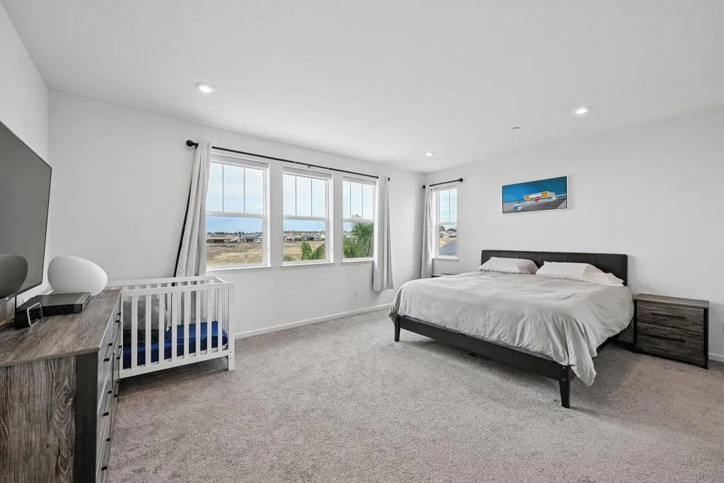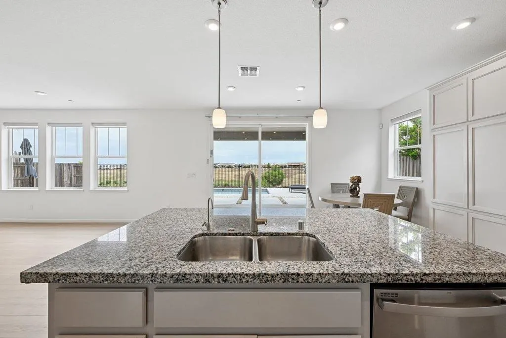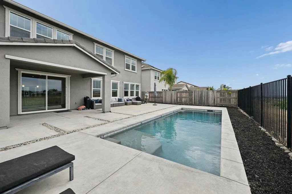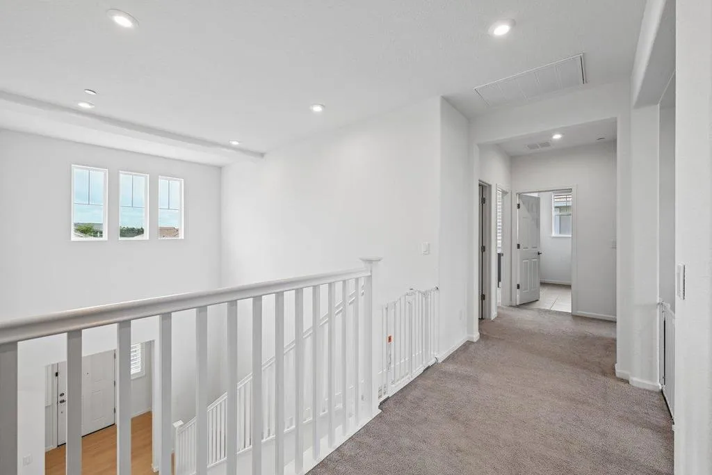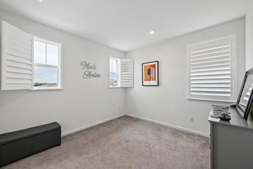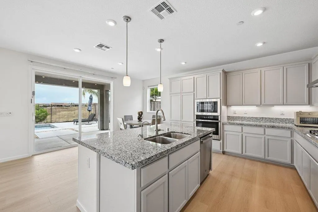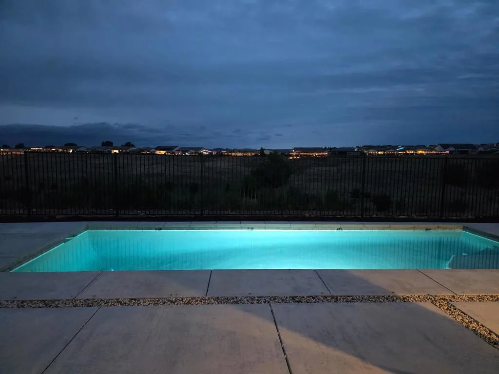 Enjoy breathtaking sunsets and sweeping valley and city views from this stunning two-story home, ideally perched high on the hills of the prestigious 12 Bridges Saratoga community. This contemporary 2,970 sq ft residence offers 4 bedrooms and 3.5 bathrooms and is equipped with owned solar. Upon entry, you're welcomed by soaring vaulted ceilings, abundant natural light, and elegant, luxury new flooring throughout. The thoughtfully designed layout includes a downstairs bedroom or office, a formal dining room, and an expansive living room perfect for entertaining. The open-concept kitchen flows seamlessly to the covered patio, leading to your private backyard oasis that backs up to a peaceful greenbelt. The outdoor space features a shimmering, therapeutic, saltwater pool that overlooks incredible sunset and city vistas. Ideal for relaxation and gatherings. Upstairs, the spacious Master suite captures panoramic views, while two additional bedrooms and a cozy loft provide comfort and flexibility, all with scenic outlooks. Conveniently located within a short walking distance to the new community park, walking and biking trails and just minutes from shopping, dining, and multiple golf courses. This rarely available Plan 9 model on the ridge is the perfect place to call home.