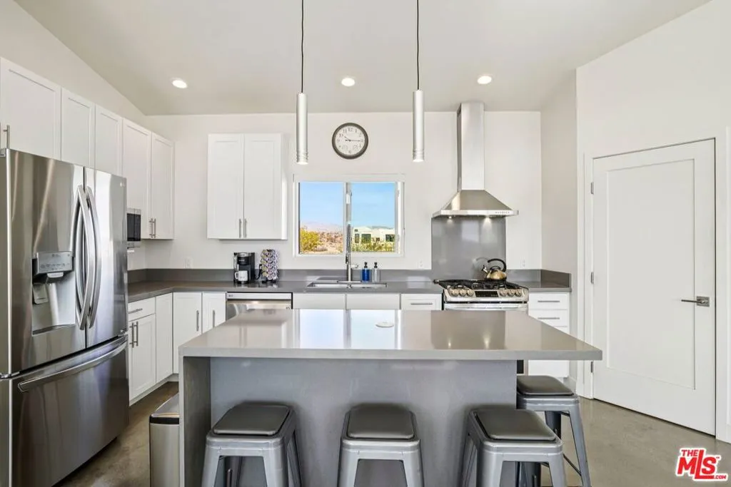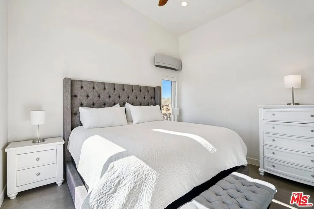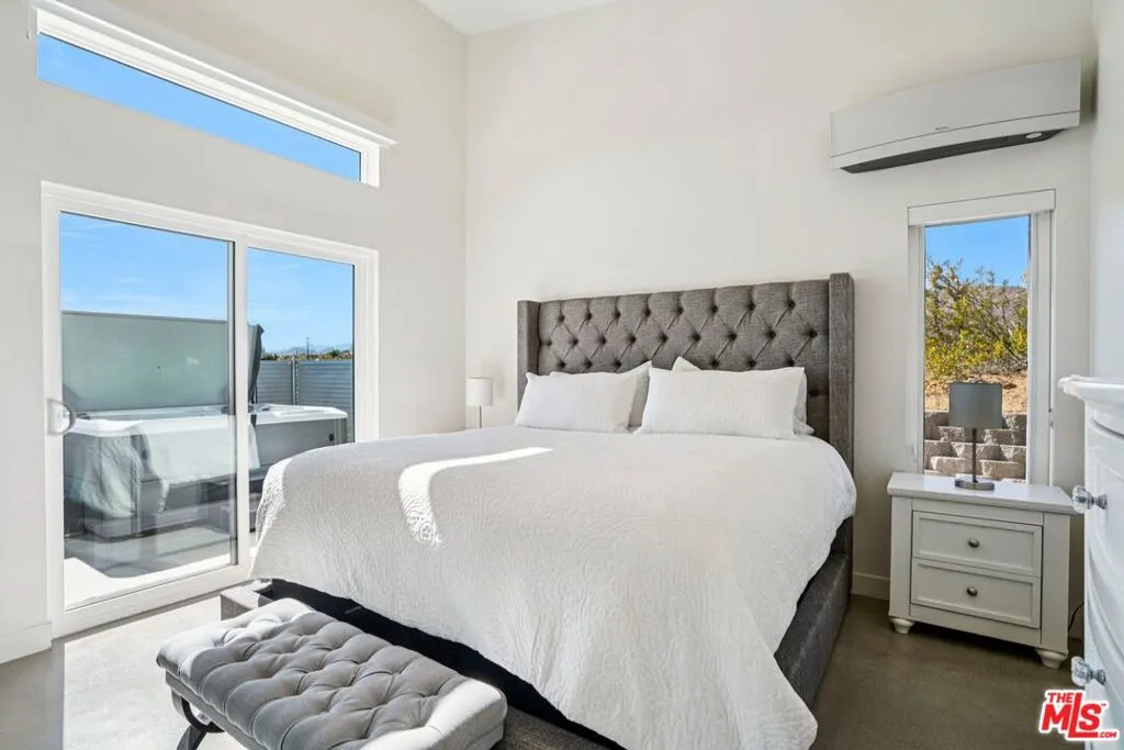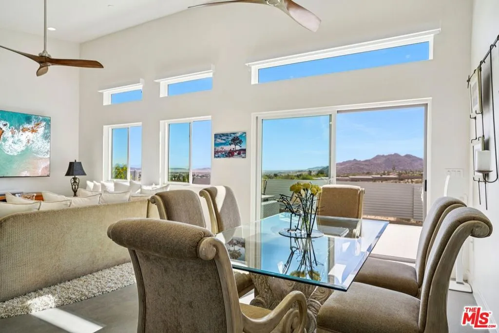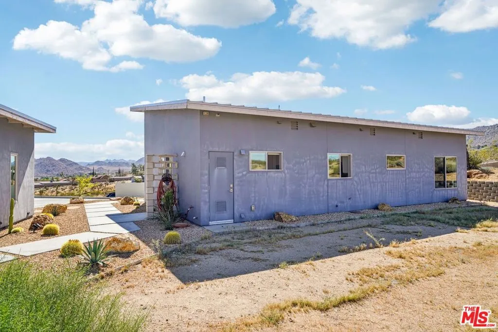 Set on a coveted rise along the south side of Joshua Tree, this exceptional new construction residence offers a front-row seat to some of the most breathtaking desert vistas imaginable--sweeping mountain ranges, protected park land, and shimmering city lights stretching endlessly across the horizon. From the first light of sunrise to the final glow of sunset, the home is perfectly positioned to capture the ever-changing colors of the desert sky, with nearly every window thoughtfully framing these unforgettable moments. Ideally located just minutes from the charm of downtown Joshua Tree and a short drive to the west entrance of Joshua Tree National Park, the property also sits just one mile from the Nancy Karl Loop--a scenic two-mile trail renowned for its stunning sunrise hikes. Here, privacy and accessibility come together to create a true sense of escape. Inside, a refined open-concept design creates a seamless flow between the kitchen and living spaces, blending modern sophistication with relaxed desert living. Clean lines, abundant natural light, and carefully curated finishes define an atmosphere that is both elevated and inviting. The outdoor living space is designed for both serenity and entertaining--privately fenced while intentionally preserving the sweeping views that make this property so special. A fully finished detached garage expands the home's versatility, currently styled as a high-end fitness and flex space, ideal for wellness, work, or creative pursuits. Every detail has been thoughtfully considered, with premium amenities and smart home integration throughout, including: Somfy automated power shades with TaHoma app control Three Daikin mini-split systems for individualized climate zones Halo Home smart lighting systemMyQ-enabled garage access for secure remote entry EV charging station (Vevor) with Tesla compatibility The outdoor experience is equally elevated, featuring a private spa retreat with a Hot Spring ''Relay'' luxury hot tub, complete with lounge