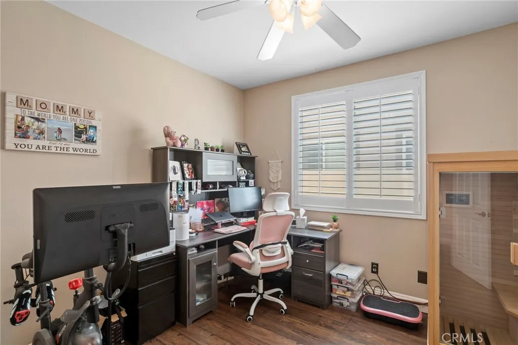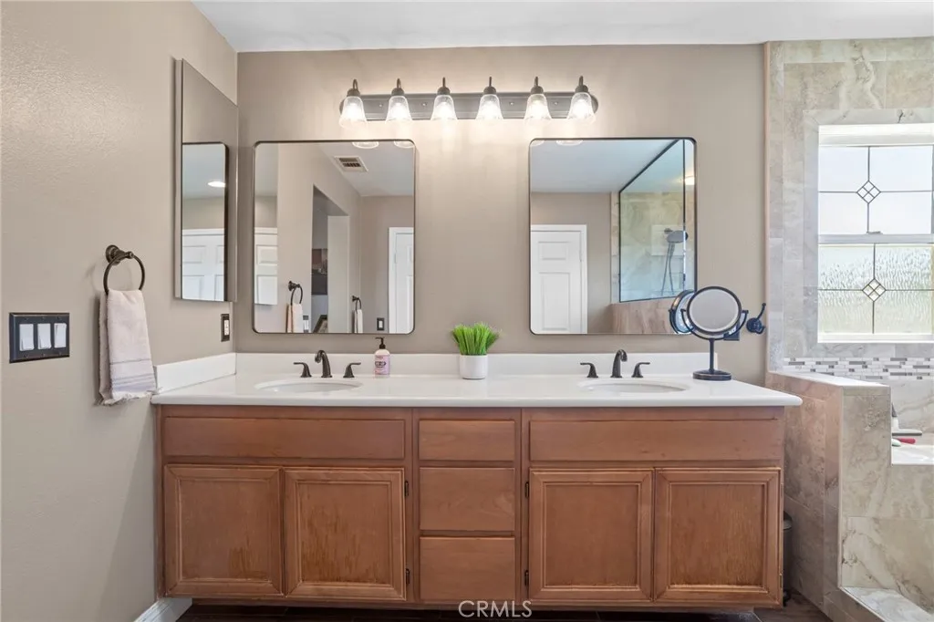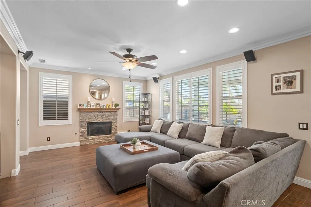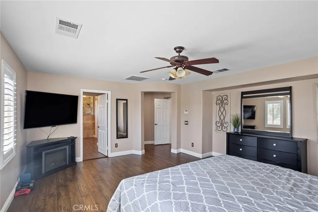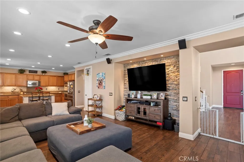 Tournament Hills Home — Beaumont’s Premier Gated Community Located in one of Beaumont’s most desirable neighborhoods, this spacious residence in Tournament Hills offers exceptional comfort, style, and privacy. The property features an inviting in-ground saltwater pool and spa, perfect for year-round relaxation. Recent updates and renovations include designer interior paint, new baseboards, upgraded master bath, and elegant porcelain and wood flooring throughout. The formal dining and living rooms welcome you with abundant natural light, while the custom fireplace and built-in media center create a seamless flow to the open-concept kitchen and family room. The kitchen showcases ample cabinetry, upgraded granite countertops, a center island with bar seating, stainless steel appliances, built-in microwave, and double oven—ideal for both everyday living and entertaining. All bedrooms feature wood flooring, ceiling fans, and granite counters in the bathrooms. The primary suite is enhanced by generous natural light, a spacious closet, and a luxurious en-suite bath with a walk-in shower. Additional highlights include a downstairs guest bedroom, a large upstairs loft perfect for a media or game room, and an attached three-car garage with epoxy flooring. Enjoy the beautifully landscaped front and back yards, complete with a large Aluma wood patio cover equipped with ceiling fans and lighting. Set on a quiet cul-de-sac, this home is just steps from the community lake, offering a peaceful and private retreat in a prestigious setting.