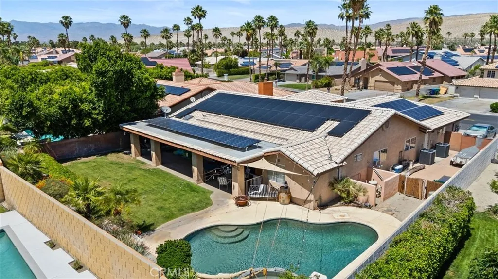 Welcome to 68695 Panorama Rd — where space, efficiency, and location come together in one of Cathedral City’s most desirable residential pockets. This is the kind of property that checks the boxes buyers are actively looking for right now: ample solar for long-term savings, a sprawling yard with room to truly live, and a layout that just makes sense. Set on an oversized lot, the outdoor space is a standout feature. Whether you're enjoying the resort-style pool, entertaining under the desert sky, adding an ADU, or simply loving the breathing room that’s getting harder and harder to find in the valley, this yard delivers flexibility and opportunity in a big way. Inside, the home offers a comfortable, functional floor plan with well-proportioned living spaces and natural light throughout. It’s the kind of layout that works equally well for everyday living, weekend hosting, work-from-home, or as a long-term investment property. The solar system is a major win — keeping energy costs down while maximizing efficiency in the desert climate, a feature that continues to separate smart homes from the rest. Location is where this one really pulls ahead. Tucked into a quiet residential neighborhood, you’re just minutes from downtown Palm Springs, Palm Springs International Airport, and quick access to the Interstate 10, putting the entire Coachella Valley at your footstep. Whether it’s dining, golf, festivals, or commuting, everything is within easy reach. This is the sweet spot buyers are chasing — space, efficiency, and location, all wrapped into one opportunity