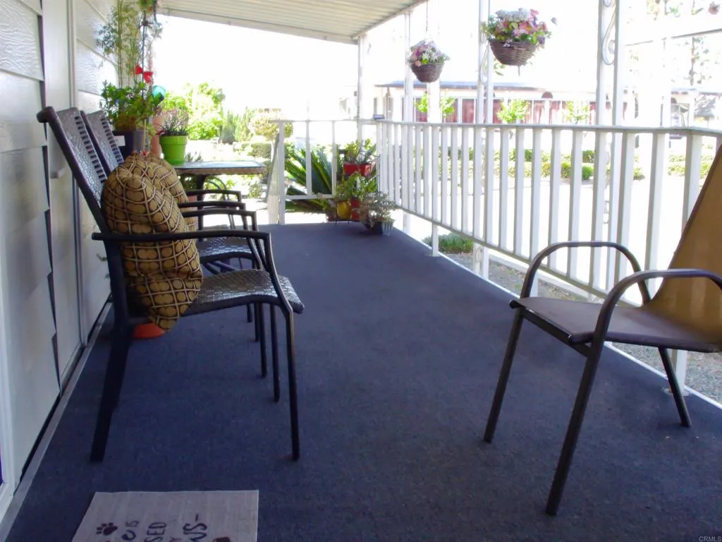 Well maintained home in a senior park. Begin your day with coffee or unwind in the evening on the sheltered, carpeted front porch—the perfect spot for enjoying the fresh air in year-round comfort. Step inside to an inviting living room bathed in natural light. The home features upgraded, neutral laminate flooring that flows through the main areas, complemented by dual-pane windows for energy efficiency. The kitchen at the heart of the home shines with a modern backsplash, a newer stainless-steel stovetop, oven, and pantry. Adjacent to the kitchen is a den/ family room. Retreat to the primary bedroom featuring newer carpet and a private rear exit. The en-suite bath has been thoughtfully remodeled with a large, modern handicap-accessible shower, updated vanity, and high-efficiency low-flush toilet. Enjoy the indoor laundry room equipped with a washer and dryer, plus a secondary guest bedroom with newer carpeting. This home is situated in a prime spot within the community. Enjoy the heated pool, relaxing spa, billiards room, library, and card room. Shopping is located directly across the street, and a bus stop is situated right outside the park entrance.